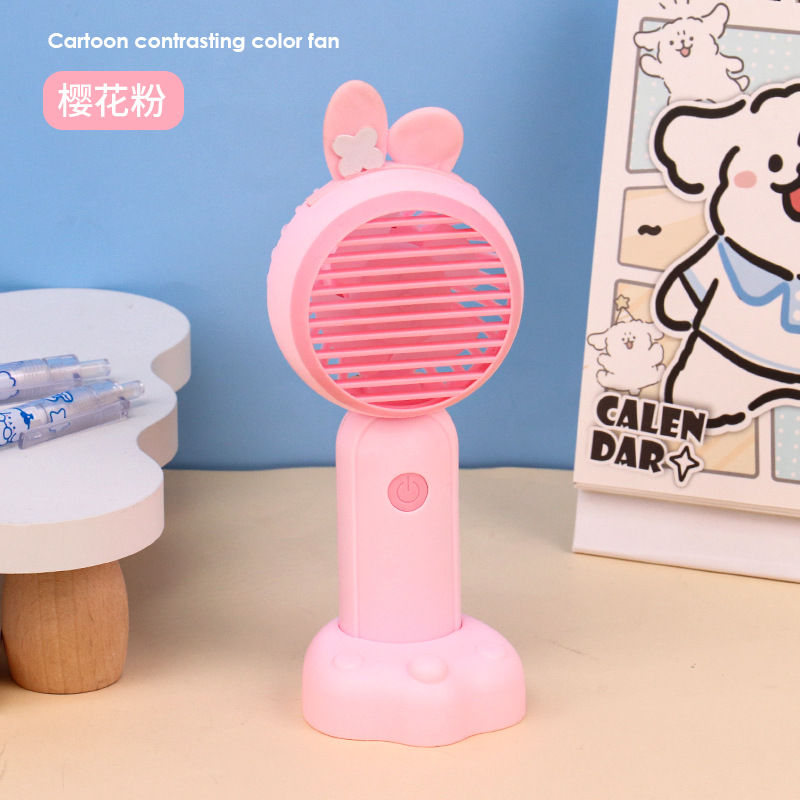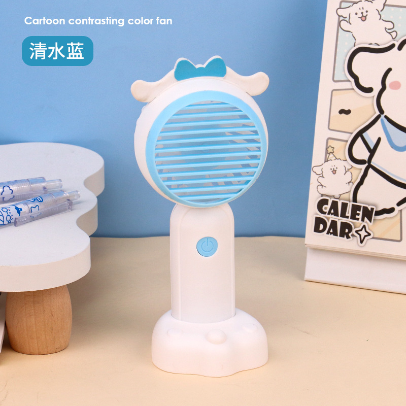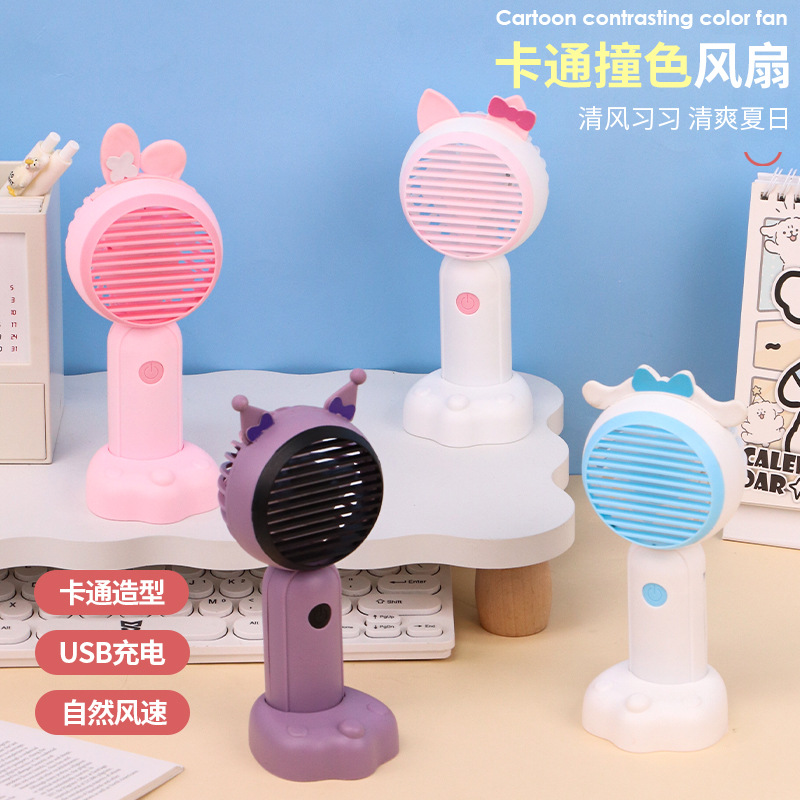 새로운 만화 미니 핸드 헬드 팬 브래킷 충전 휴대용 자동 팬 어린이 선물 인쇄 가능한 로고