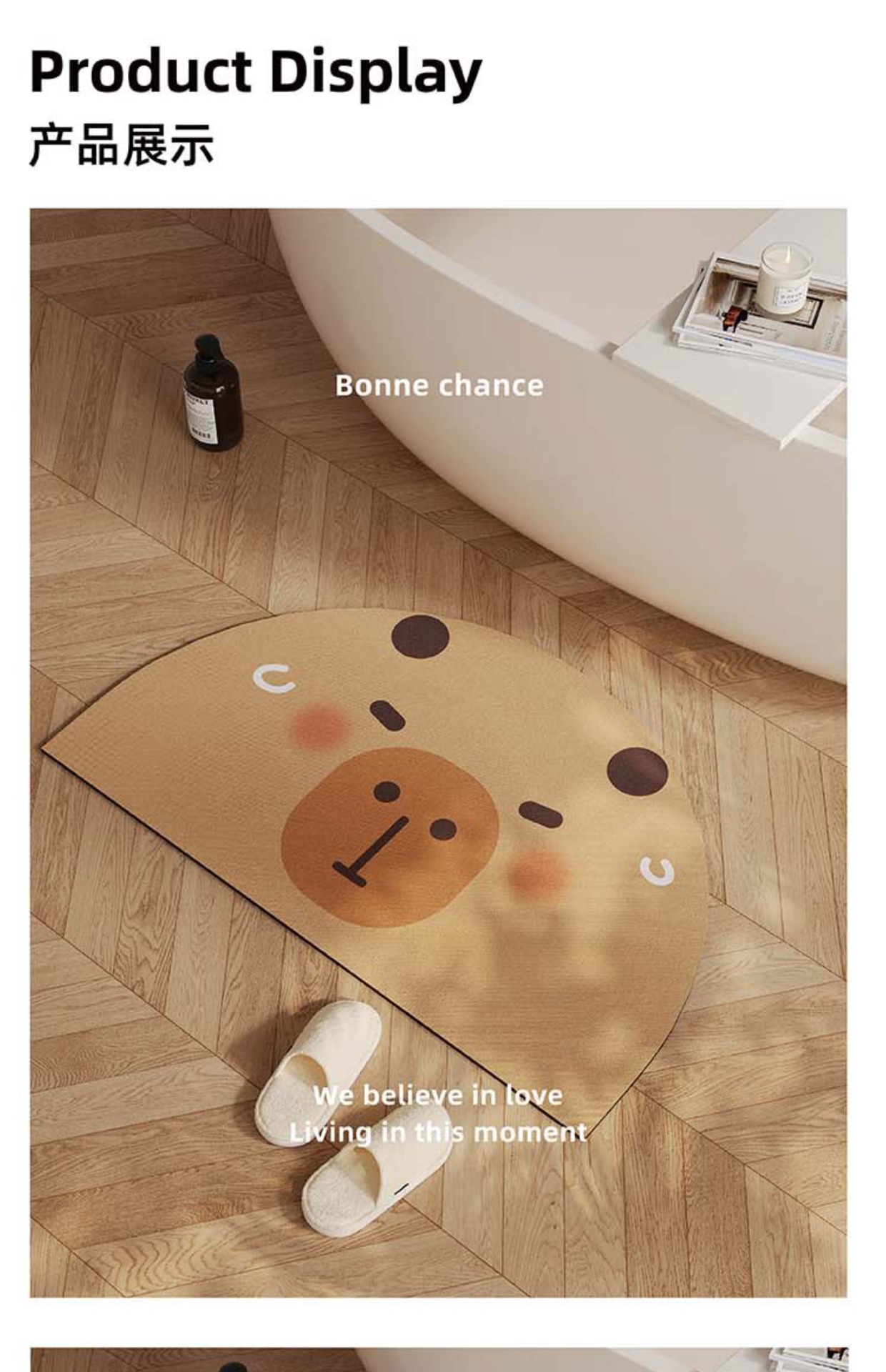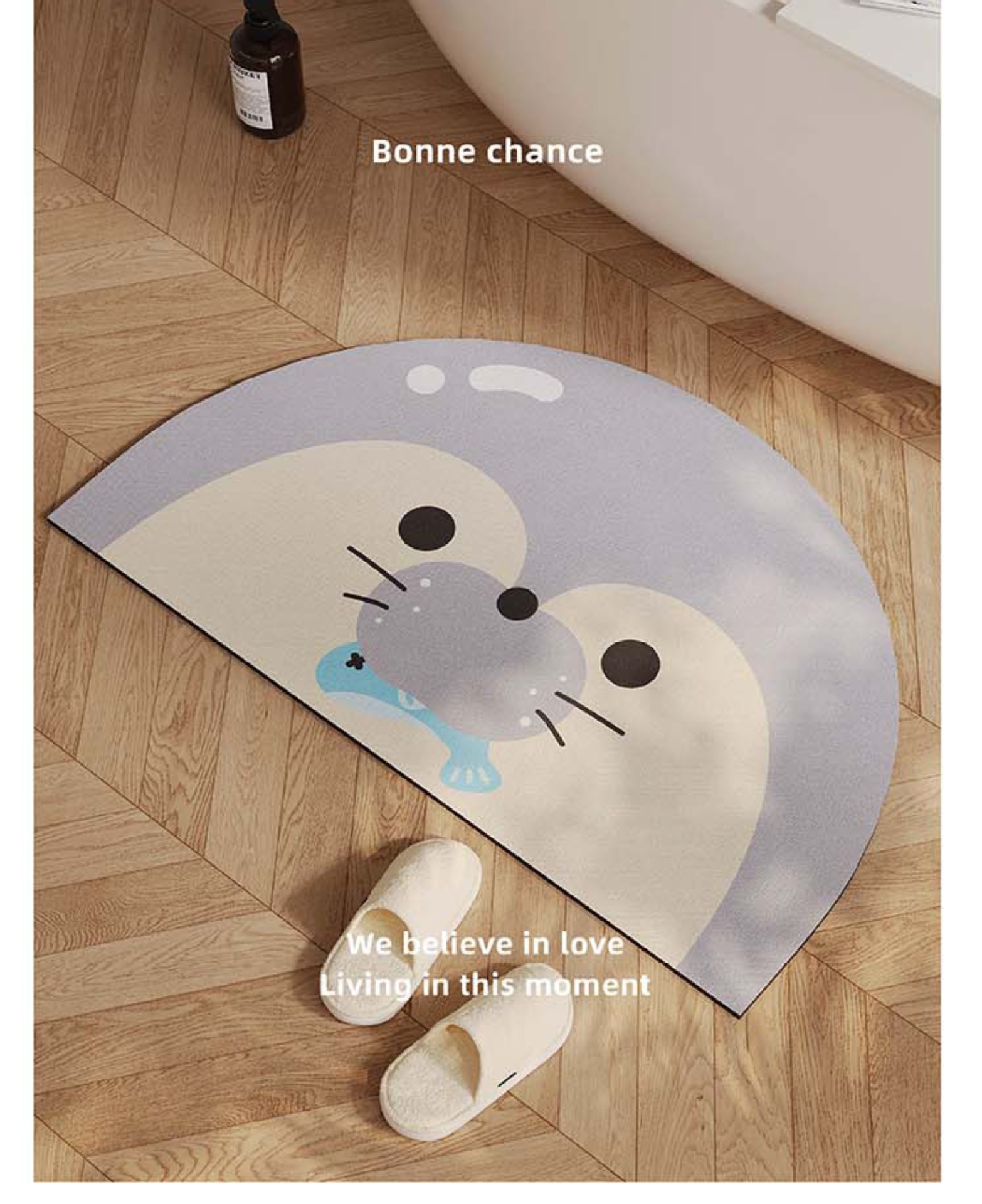 만화 동물 캐릭터 욕실 매트, 화장실 입구 흡수성 속건 미끄럼 방지 매트, 샤워실 오염 방지 규조토 매트, 귀엽고 재미있는 디자인