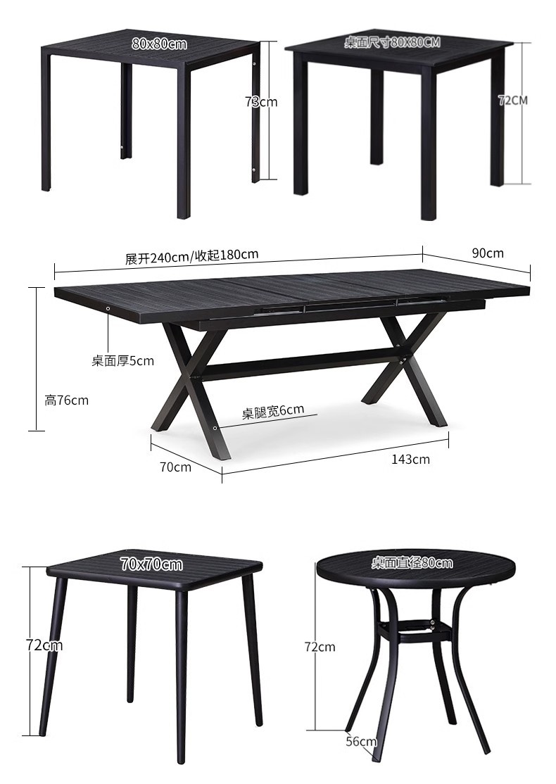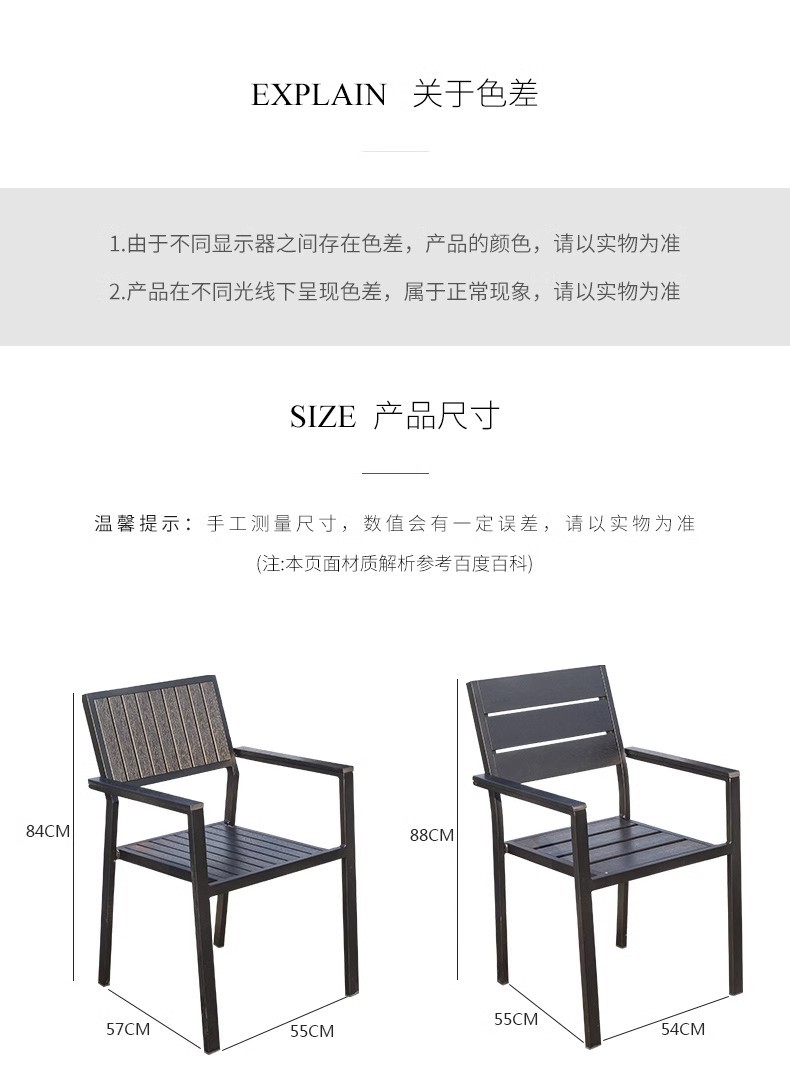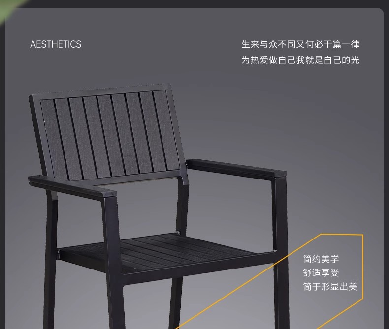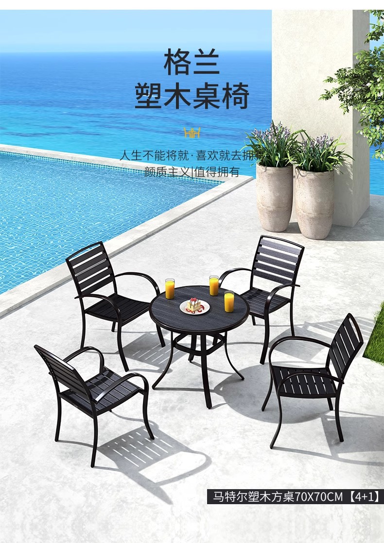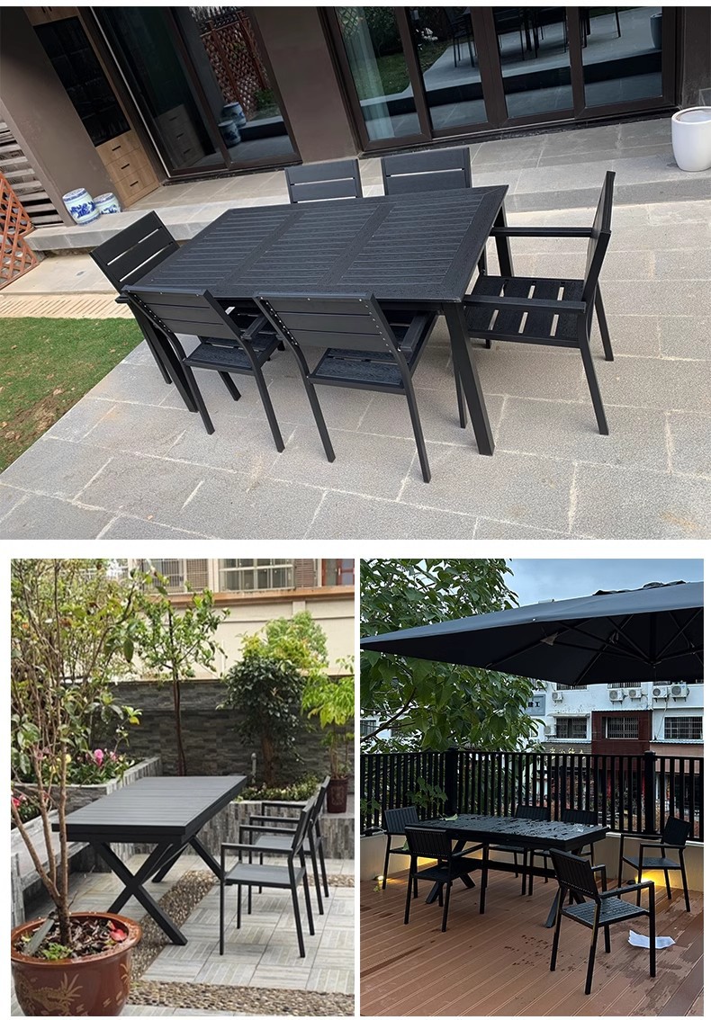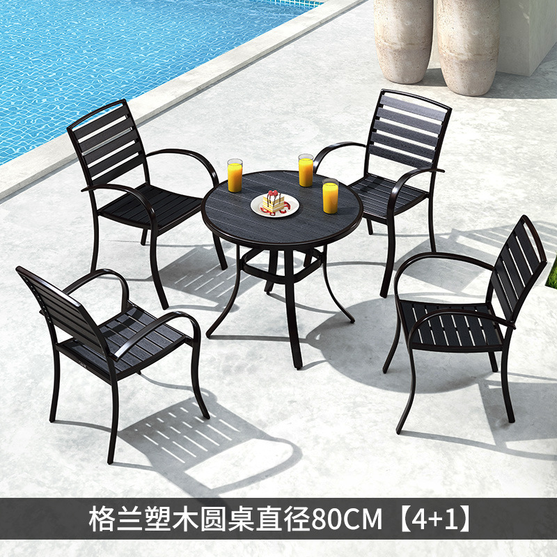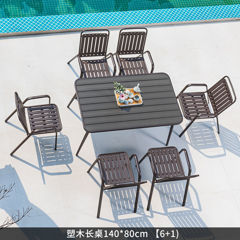 야외 플라스틱 목재 테이블과 의자 조합 야외 정원 코트야드 레저 야외 식당 테이블 테라스 탈착식 목재 외부 스윙 의자