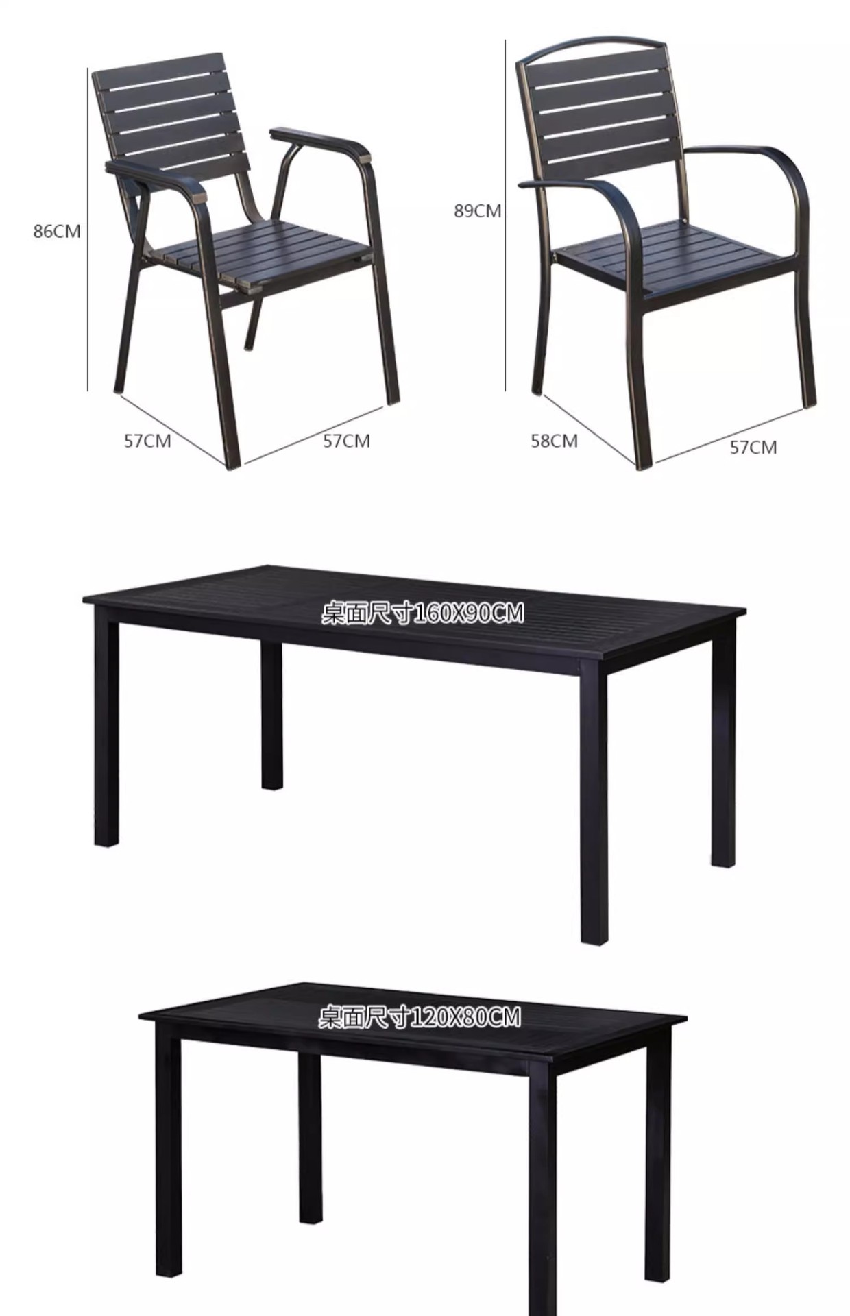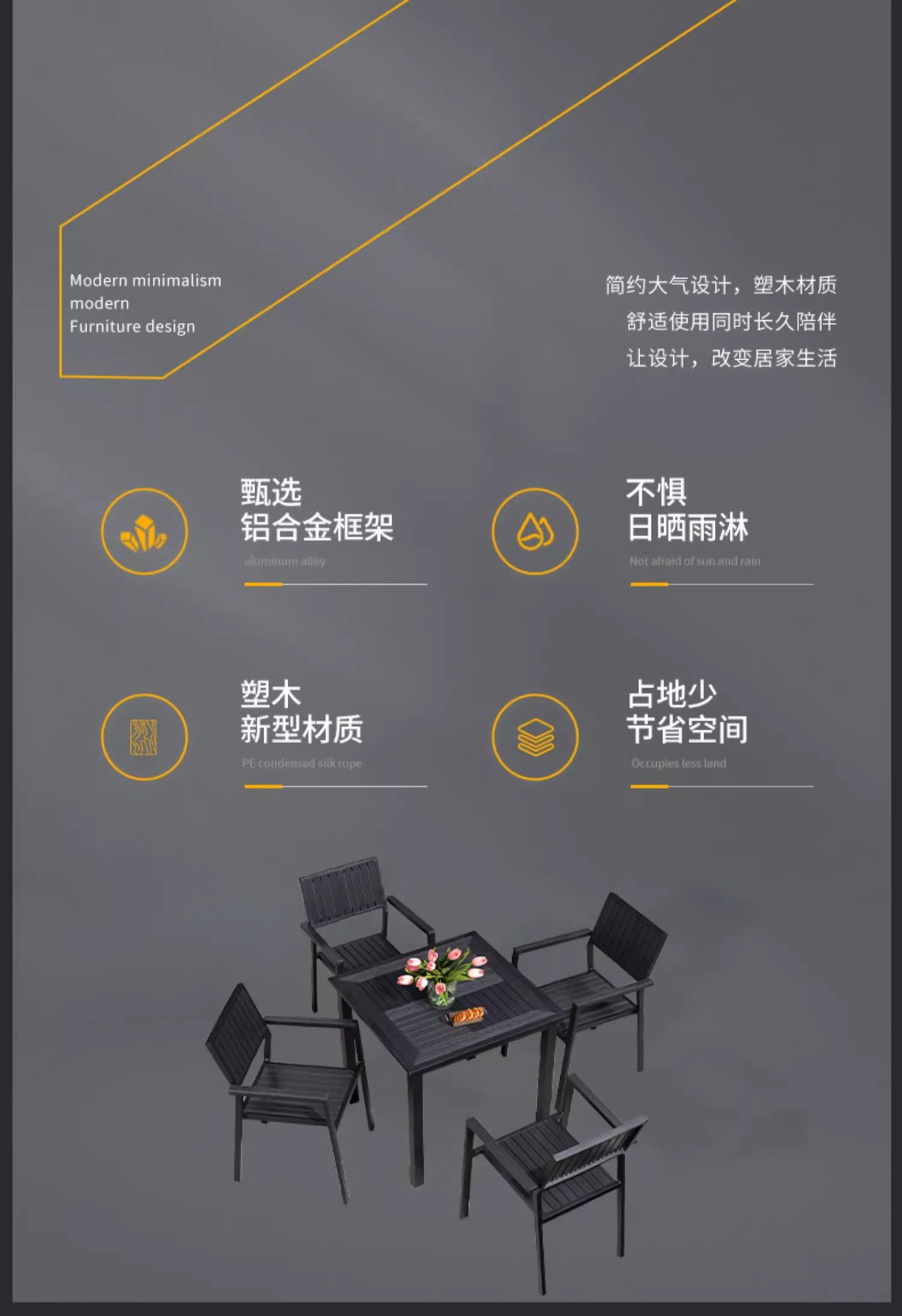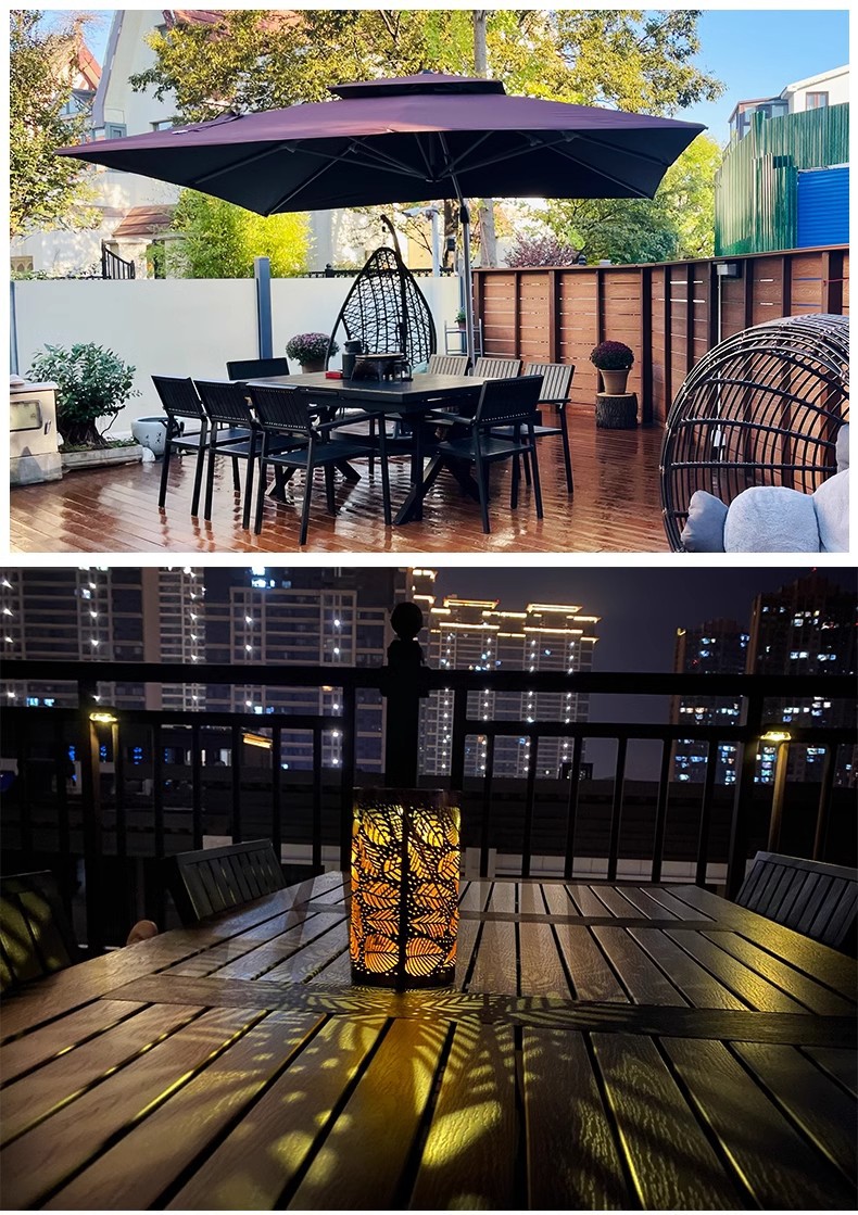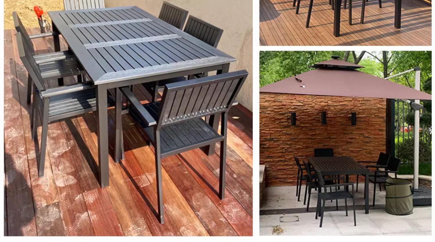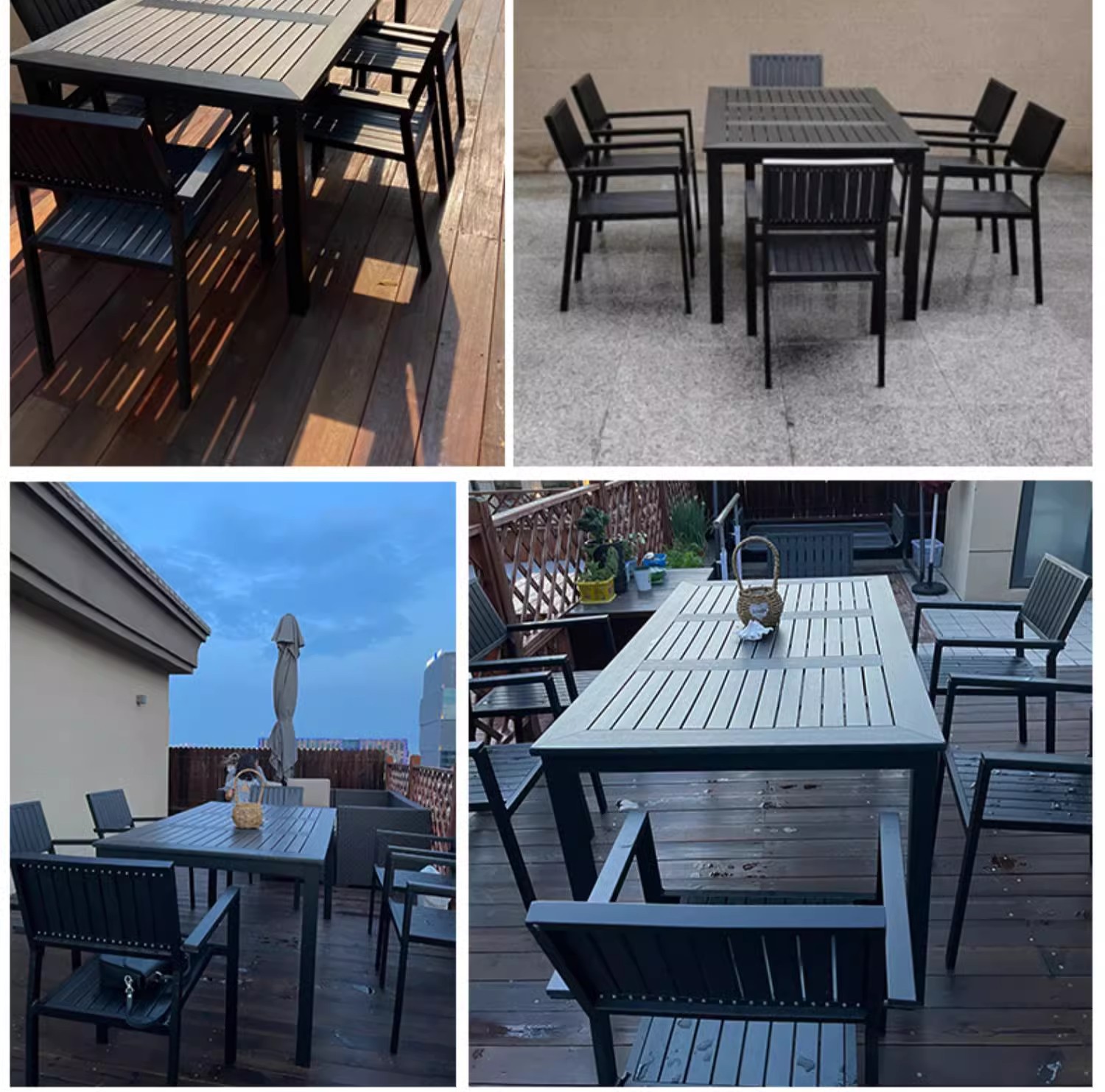 야외 플라스틱 목재 테이블과 의자 조합 야외 정원 코트야드 레저 야외 식당 테이블 테라스 탈착식 목재 외부 스윙 의자