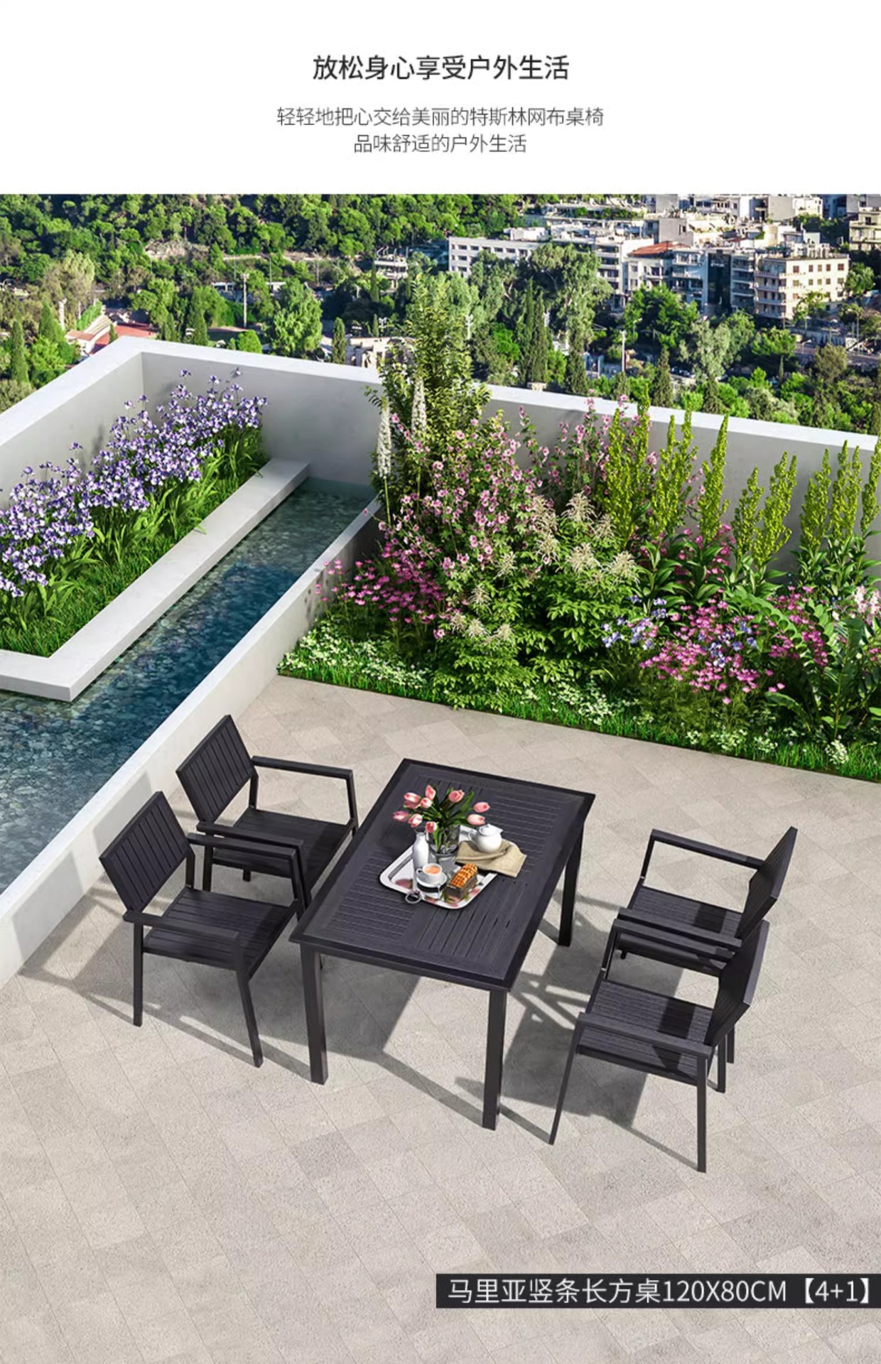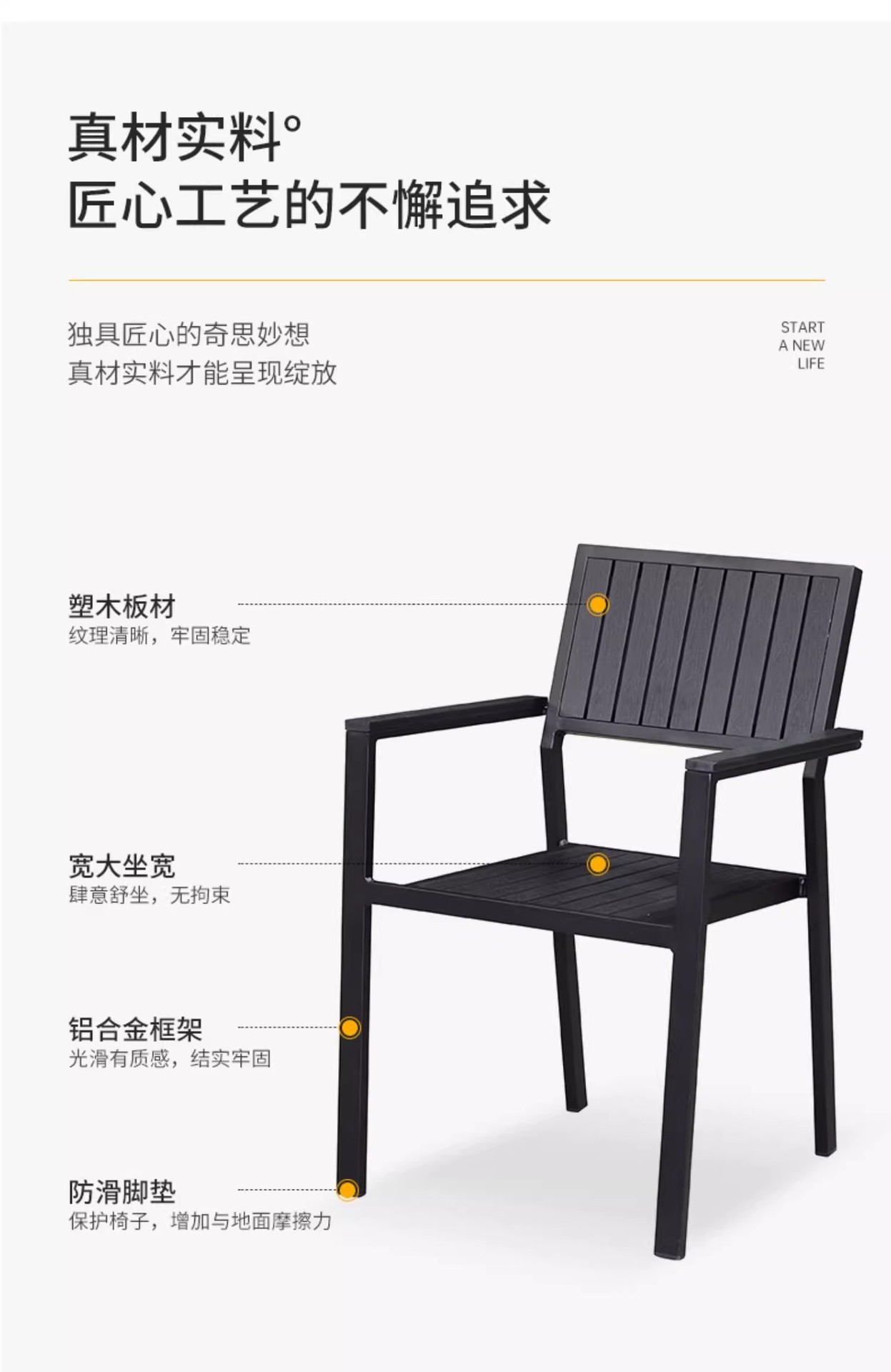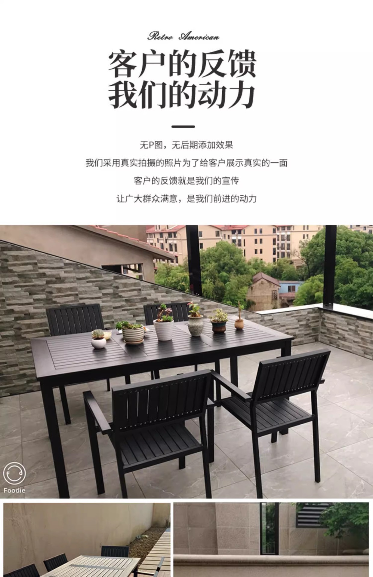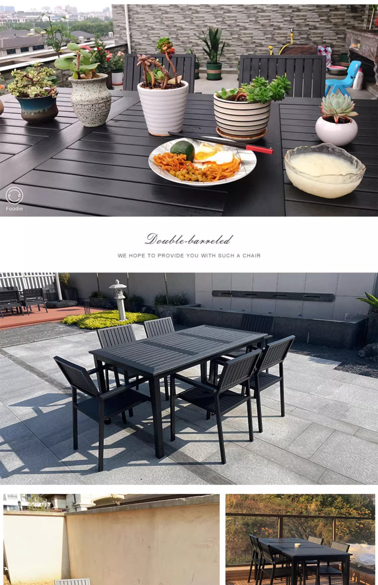 야외 플라스틱 목재 테이블과 의자 조합 야외 정원 코트야드 레저 야외 식당 테이블 테라스 탈착식 목재 외부 스윙 의자