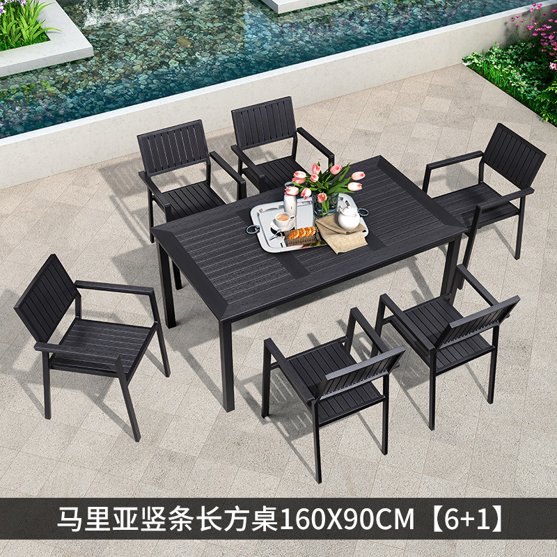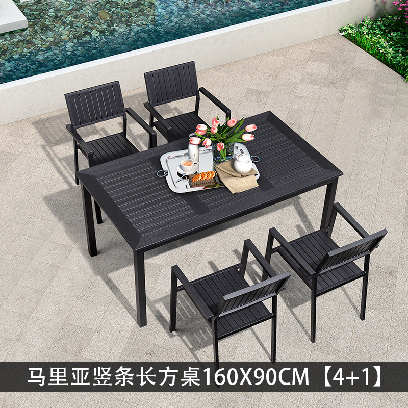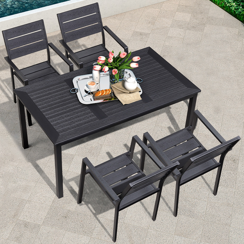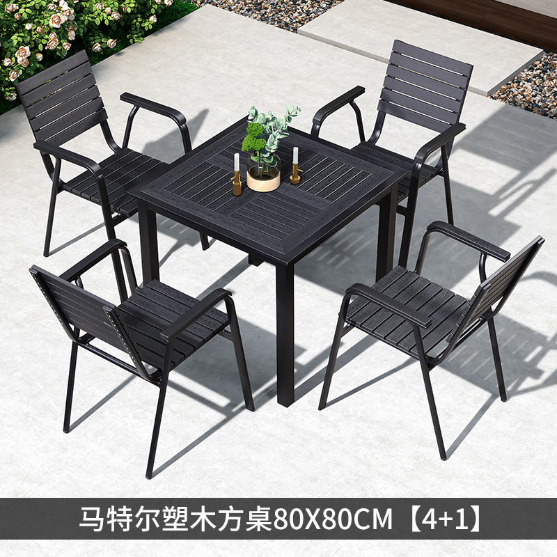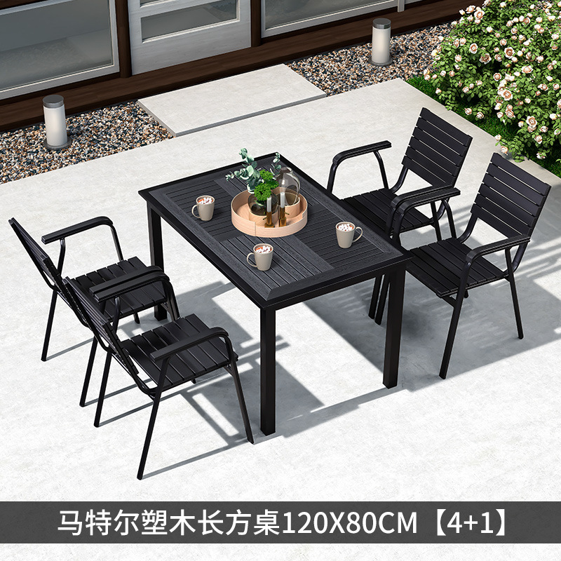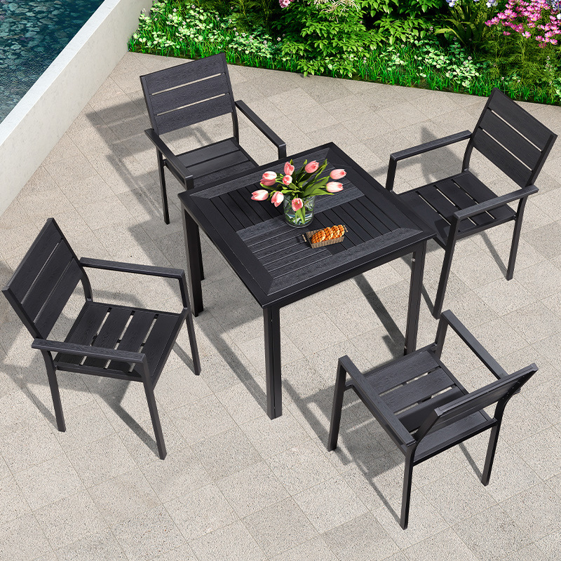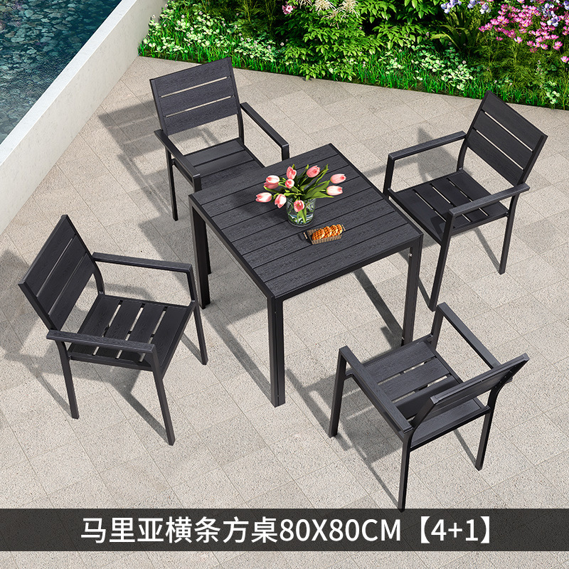 야외 플라스틱 목재 테이블과 의자 조합 야외 정원 코트야드 레저 야외 식당 테이블 테라스 탈착식 목재 외부 스윙 의자스토어 가기