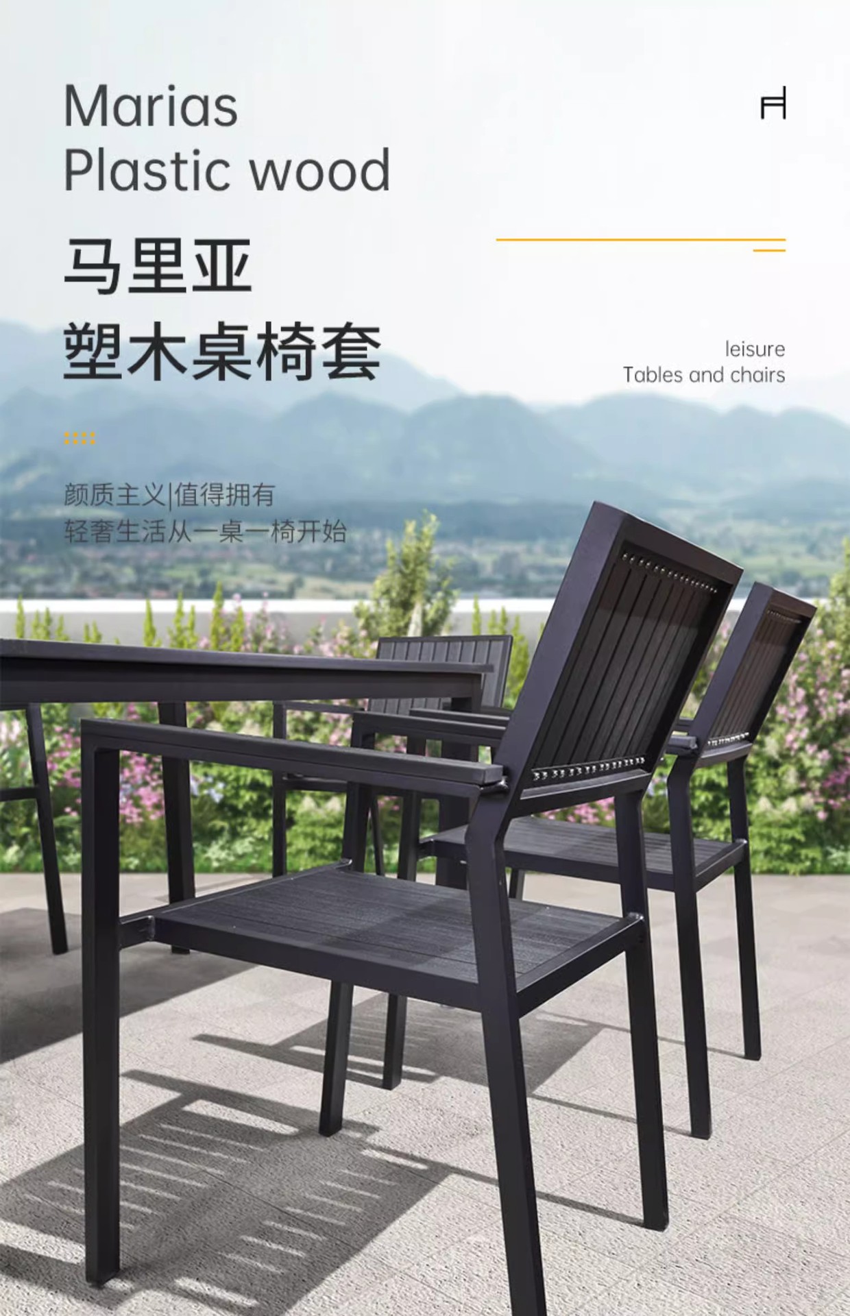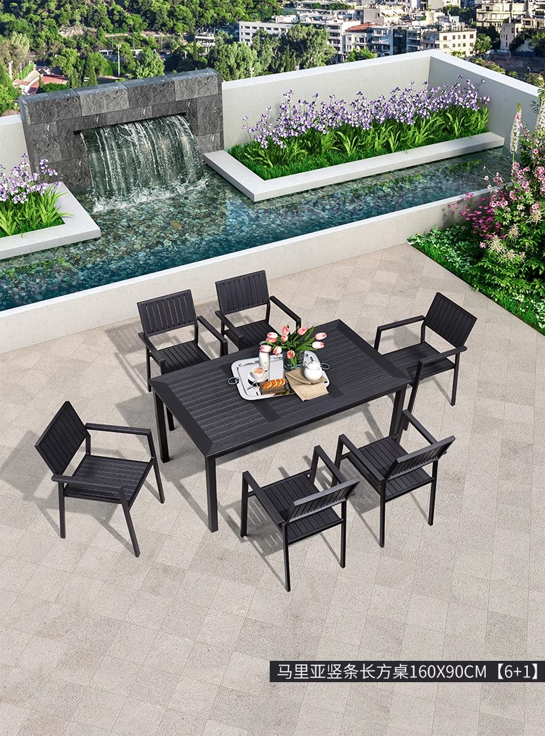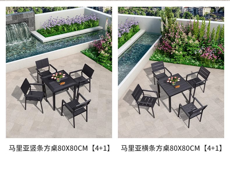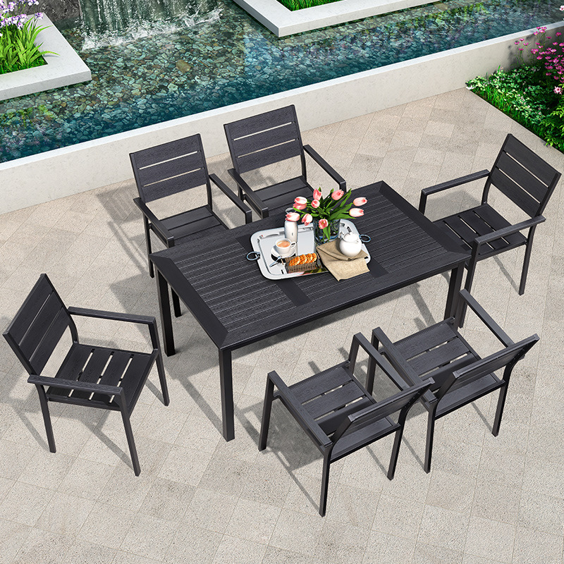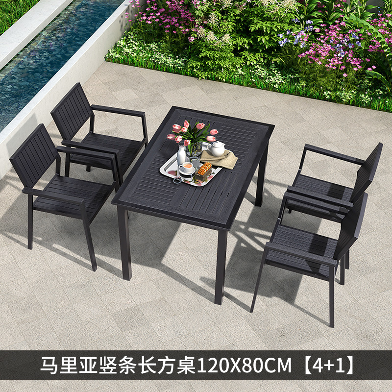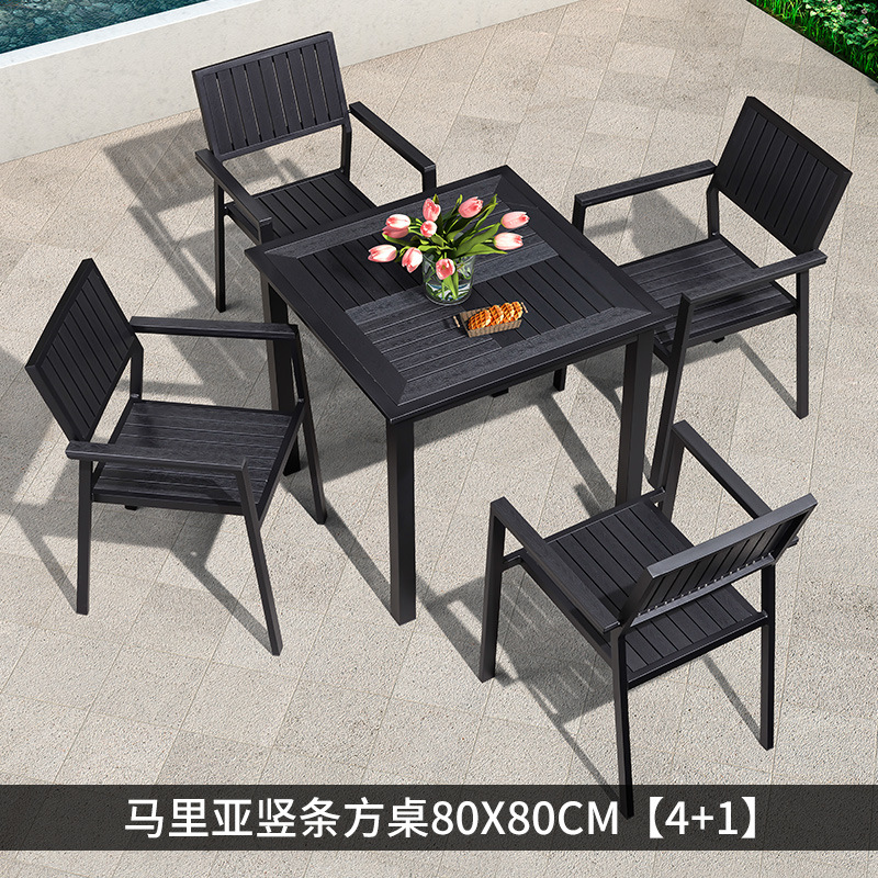 야외 플라스틱 목재 테이블과 의자 조합 야외 정원 코트야드 레저 야외 식당 테이블 테라스 탈착식 목재 외부 스윙 의자스토어 가기