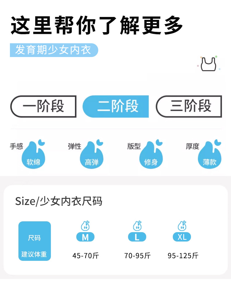 여아 속옷 발달기간 여아 브라 초등생 중학생 여중생 큰아이 12 세 11 세 어린이 조끼 여름