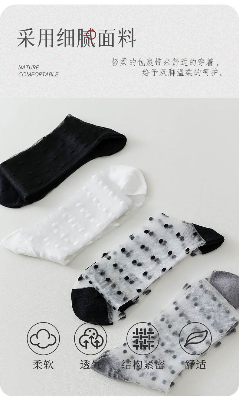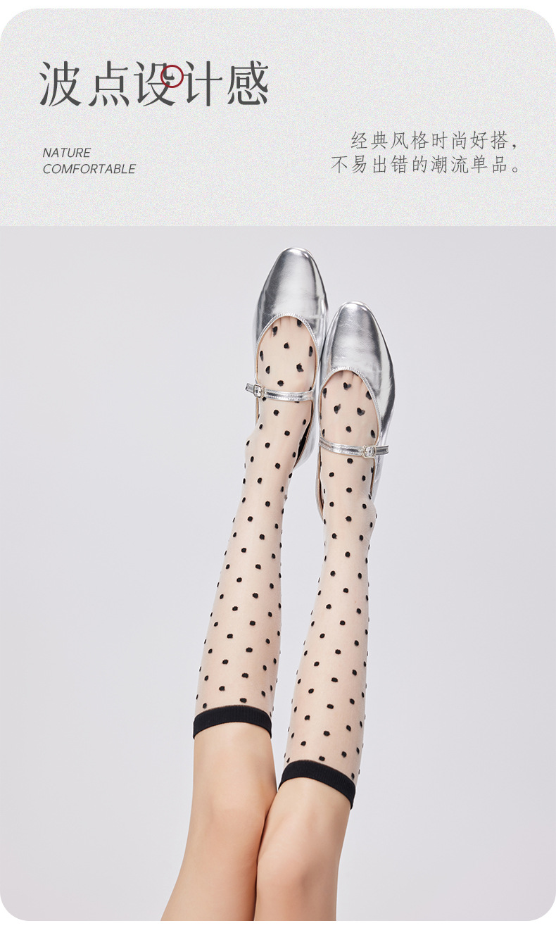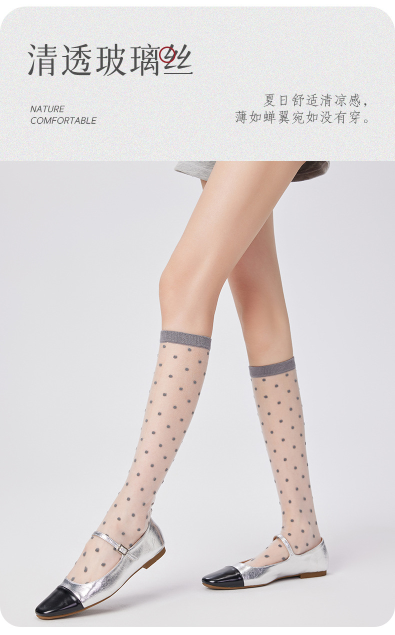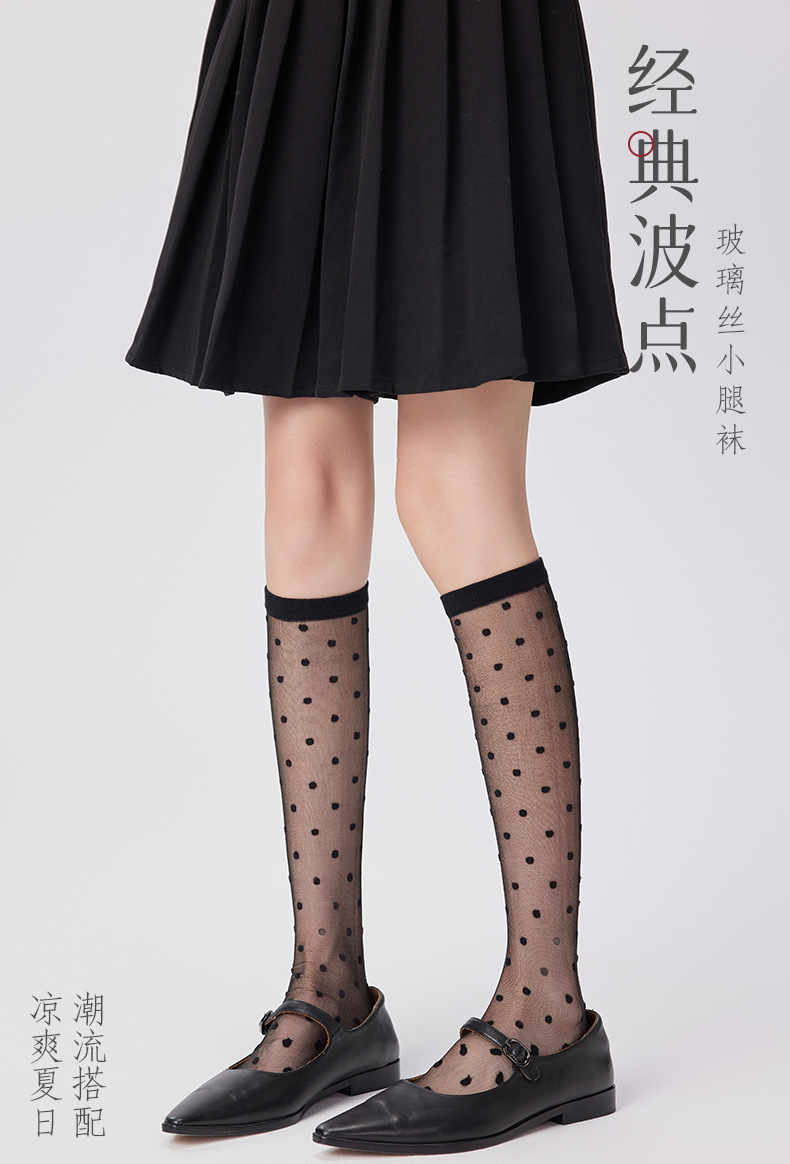 유리섬유 물방울무늬 종아리 양말 시원하고 통기성 좋은 양말 무봉제 개별 포장 물방울무늬 종아리 스타킹스토어 가기