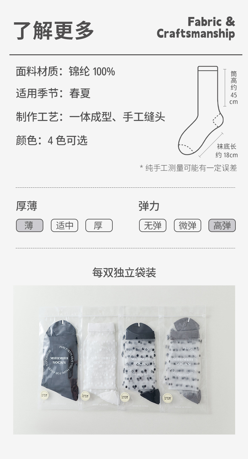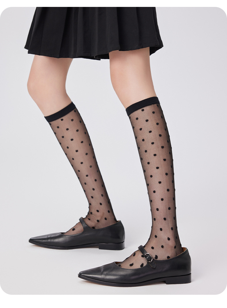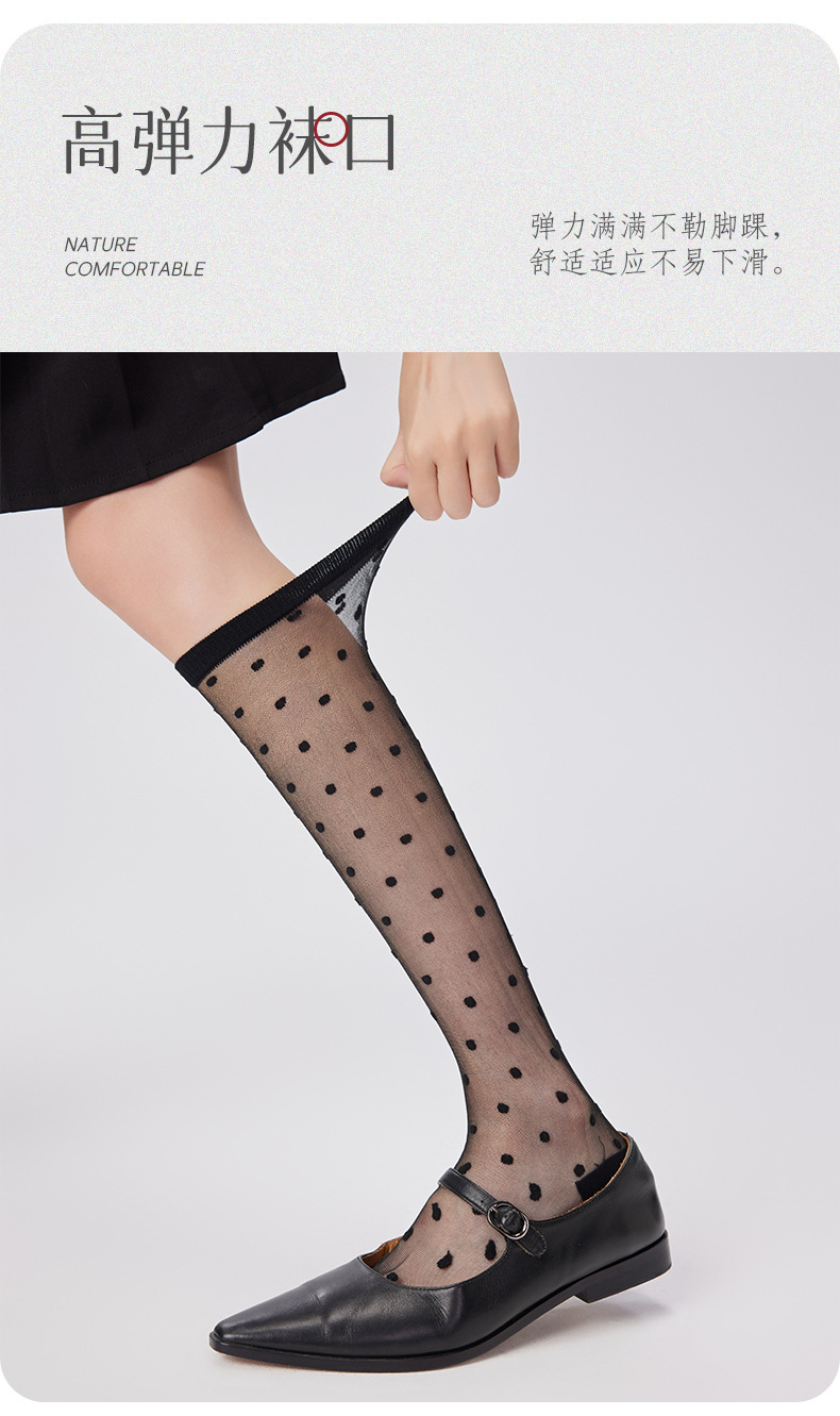 유리섬유 물방울무늬 종아리 양말 시원하고 통기성 좋은 양말 무봉제 개별 포장 물방울무늬 종아리 스타킹스토어 가기