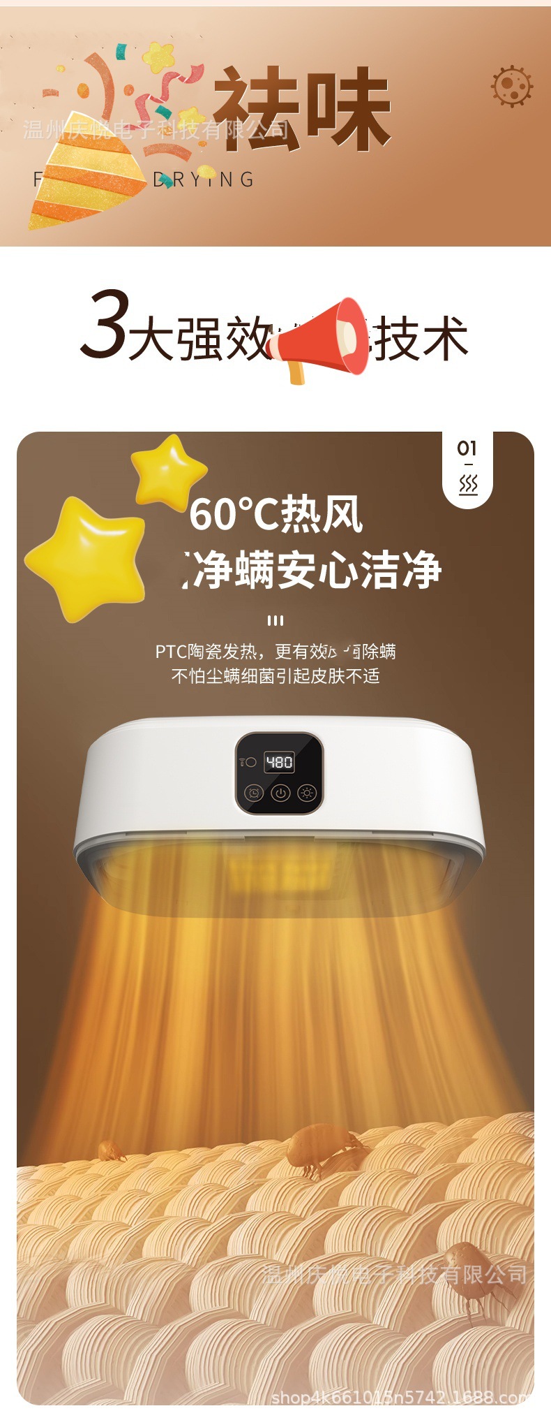 产品卖点:暖烘除味净螨、巧捷快速干衣