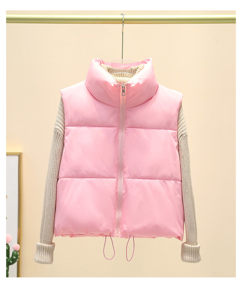 국경 간 면화 조끼 여성의 짧은 2024 년 가을과 겨울 새로운 스탠드 칼라 두꺼운 면화 패딩 재킷 조수 말 클립 코트스토어 가기