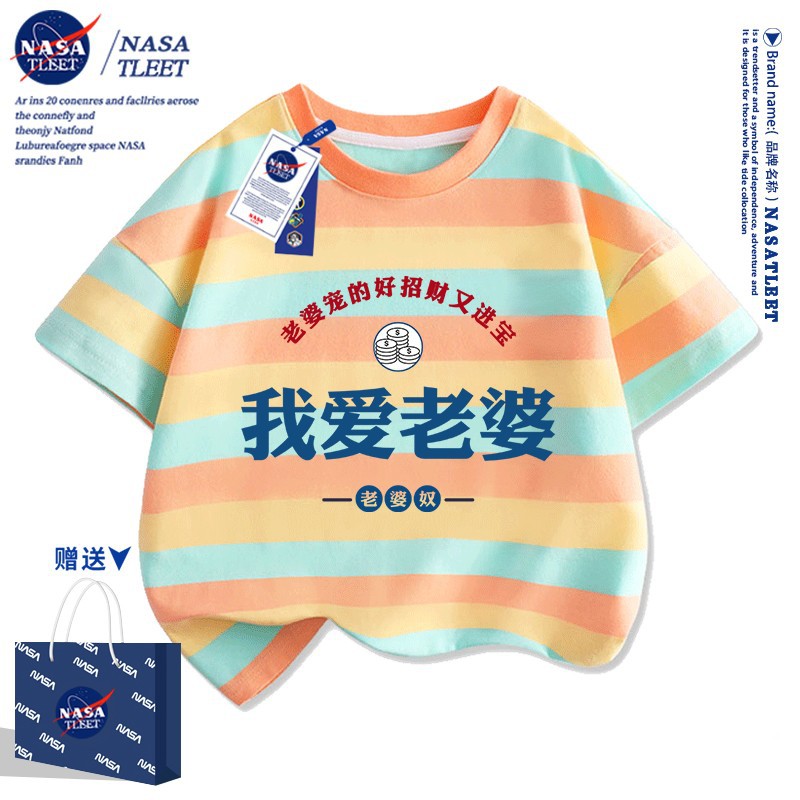 NASA 공동 브랜드 여름 남녀 아동복 올매치 반팔 유행 브랜드 텍스트 나는 내 아내가 인쇄 된 크루 넥 Bottoming 셔츠 쿨