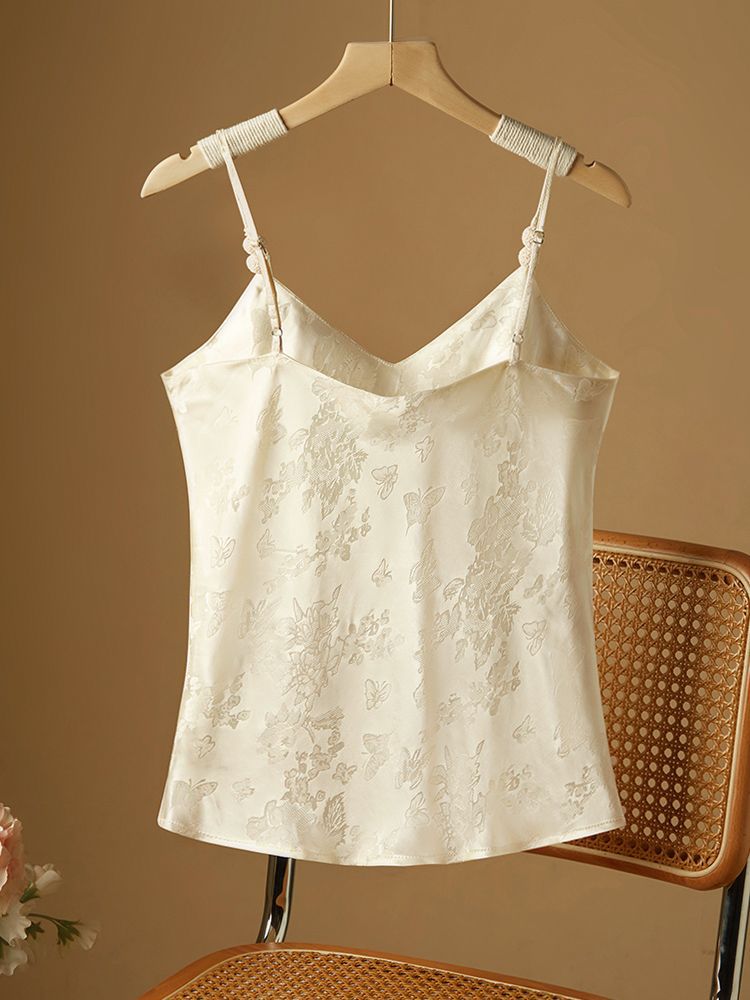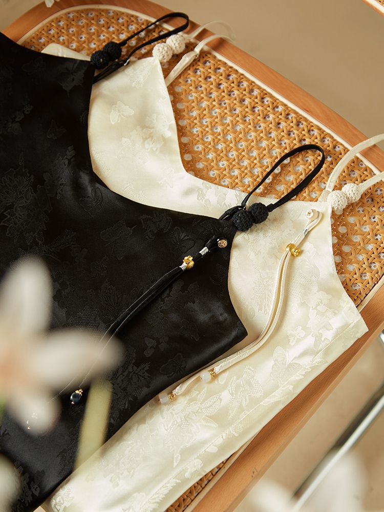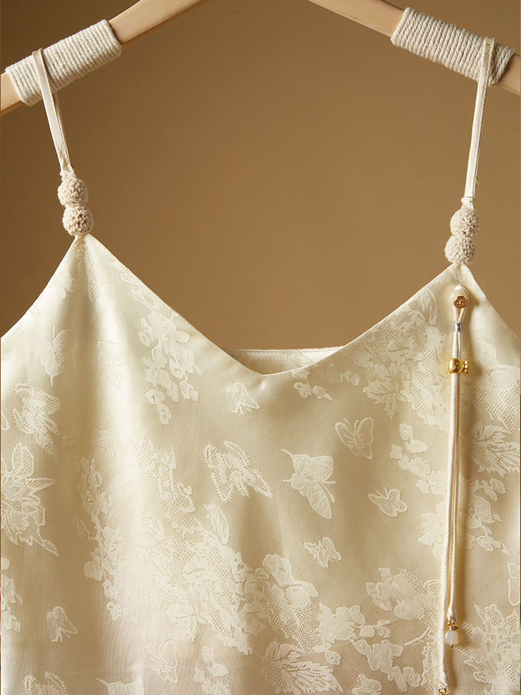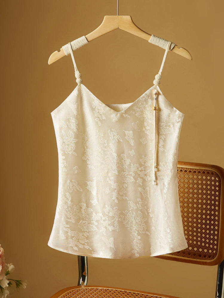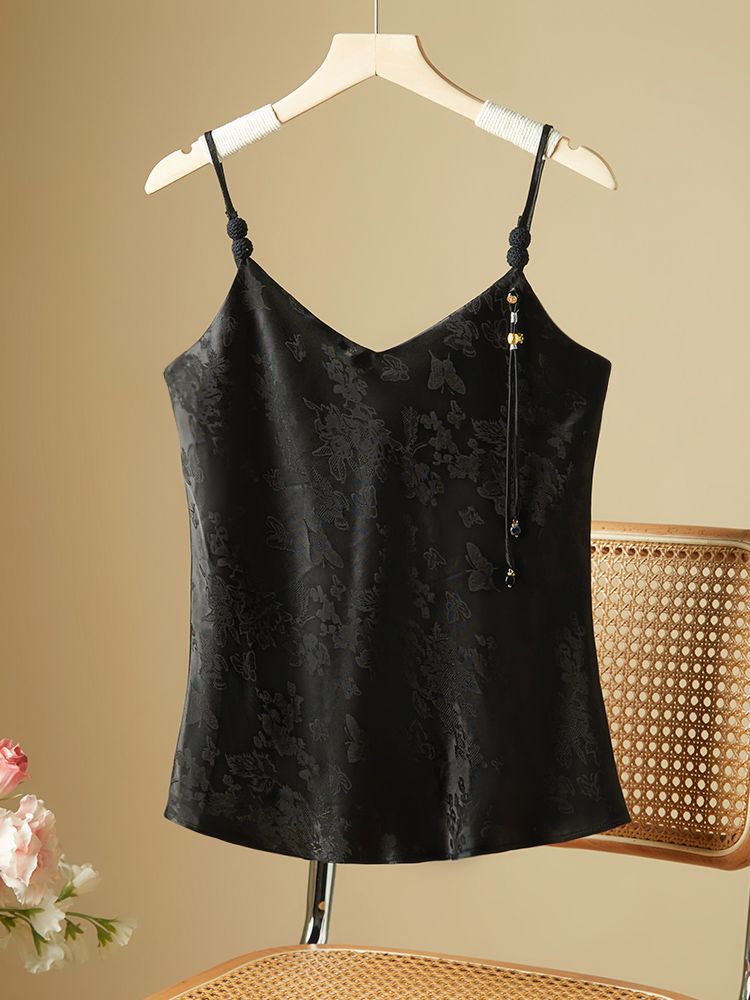 새로운 중국 스타일 V 넥 카미 솔 여성의 2024 새로운 여름 국가 스타일 자카드 세련된 아름다운 민소매 탑스토어 가기