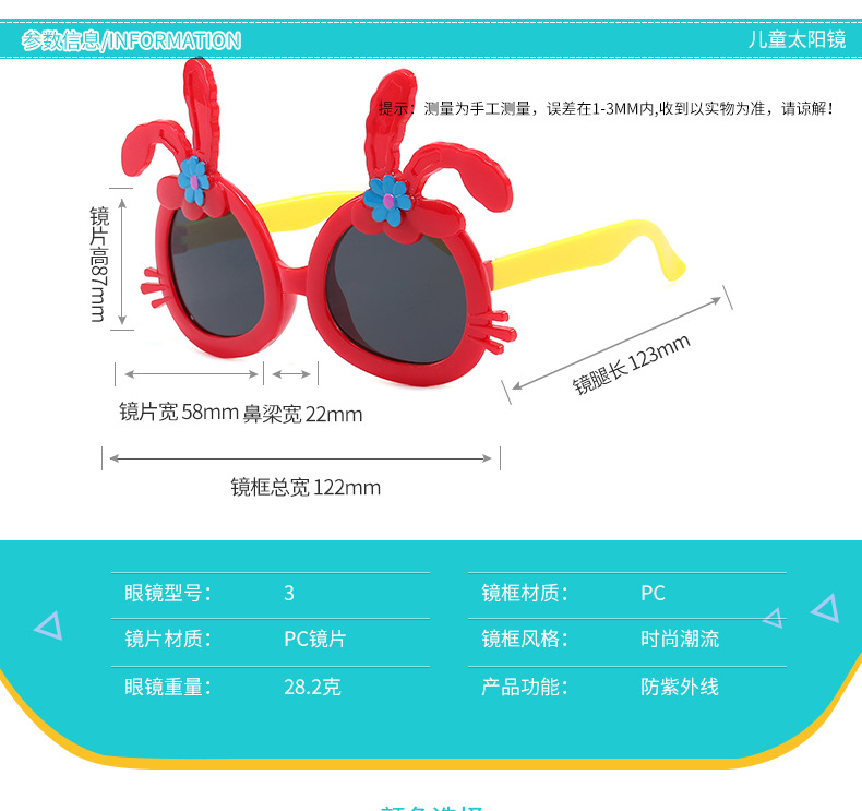어린이 안경 선글라스 어린 소녀 안티 자외선 만화 토끼 선글라스 소녀 아기 패션 차양 선 스크린