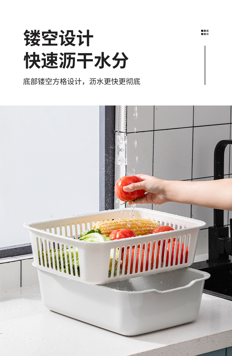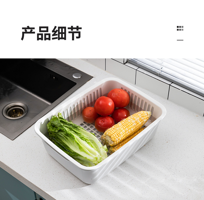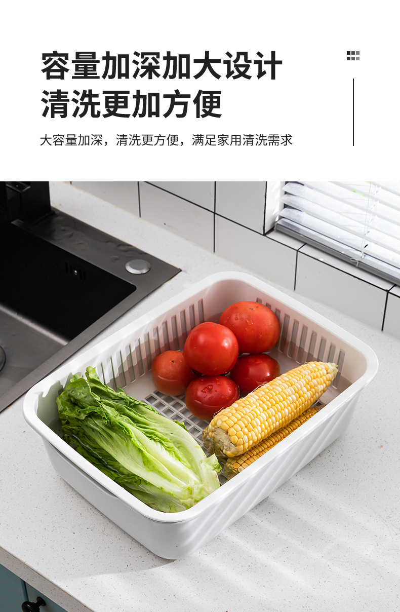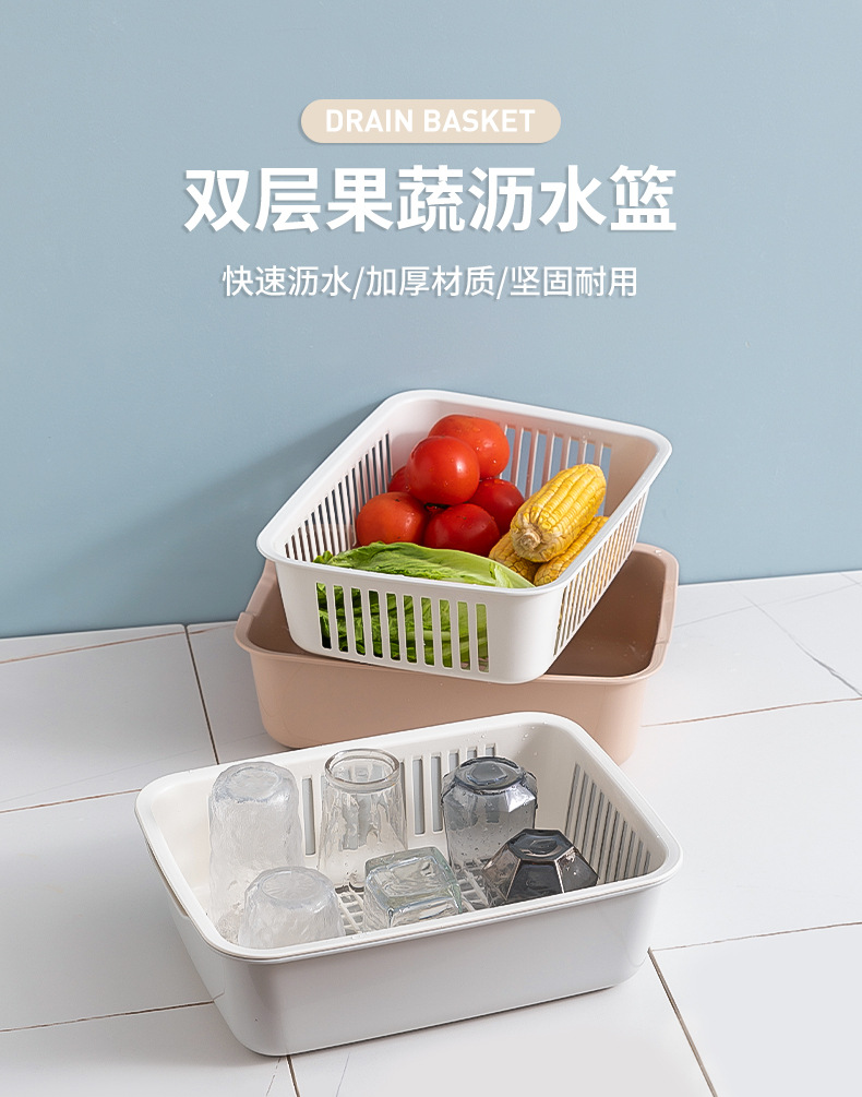 가정용 더블 레이어 주방 야채 세척 파란색 대형 사각형 다기능 과일 및 야채 보관 바구니 과일 청소 배수 바구니 야채 바구니스토어 가기
