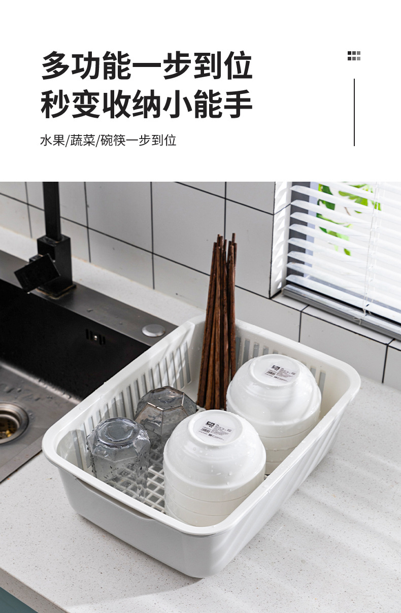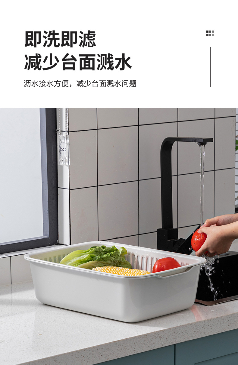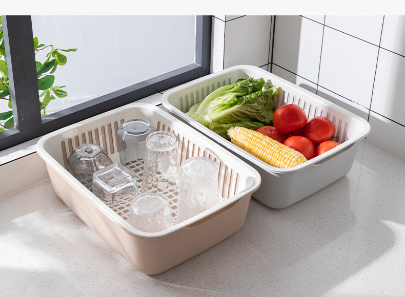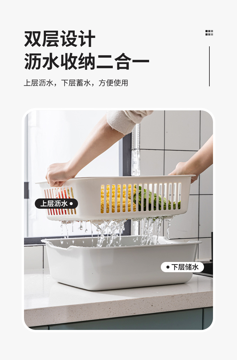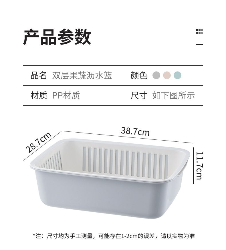 가정용 더블 레이어 주방 야채 세척 파란색 대형 사각형 다기능 과일 및 야채 보관 바구니 과일 청소 배수 바구니 야채 바구니스토어 가기
