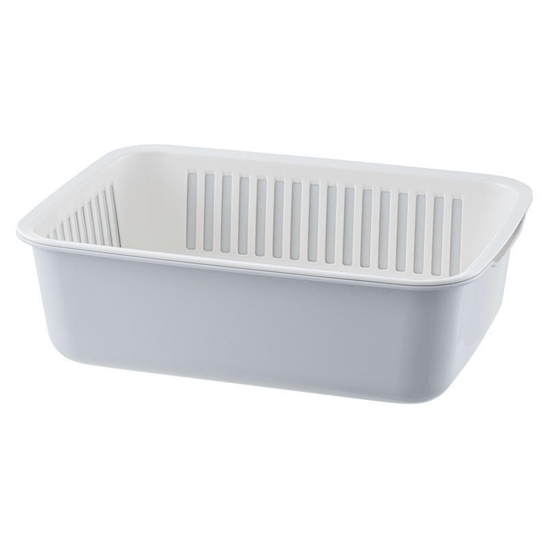 가정용 더블 레이어 주방 야채 세척 파란색 대형 사각형 다기능 과일 및 야채 보관 바구니 과일 청소 배수 바구니 야채 바구니