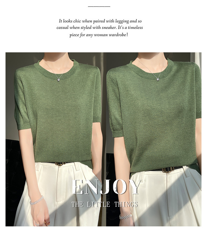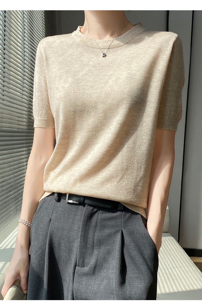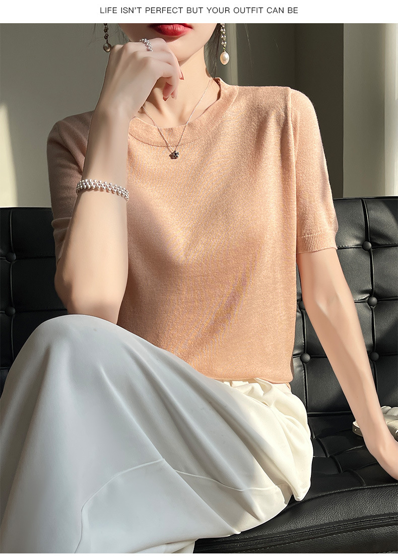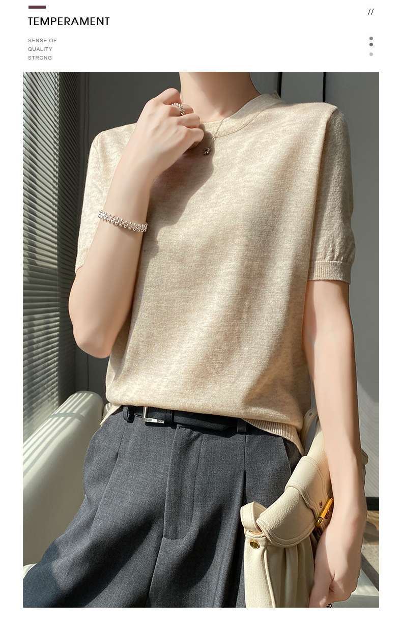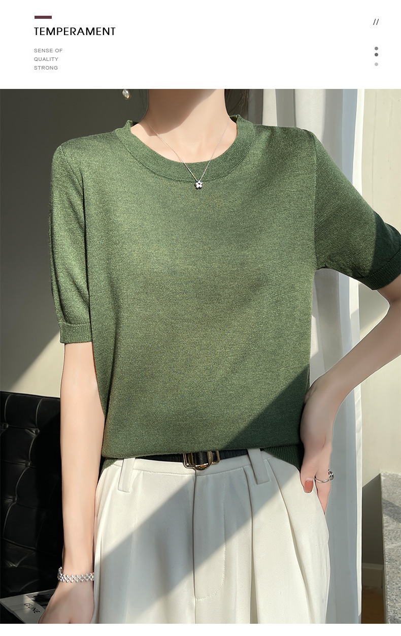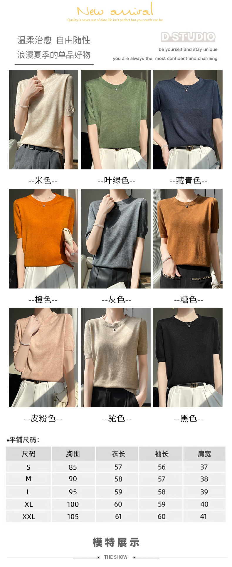 2024 년 봄과 여름 최악의 얇은 텐셀 울 반팔 여성용 루즈 라운드 넥 티셔츠 솔리드 컬러 플러스 사이즈 니트 스웨터 반팔스토어 가기