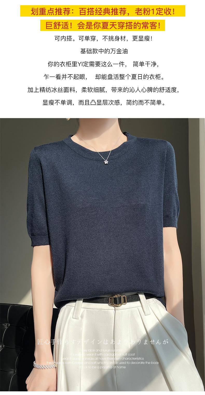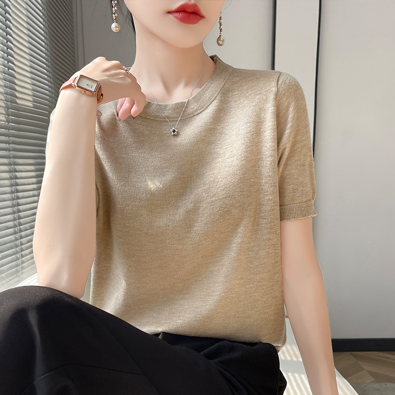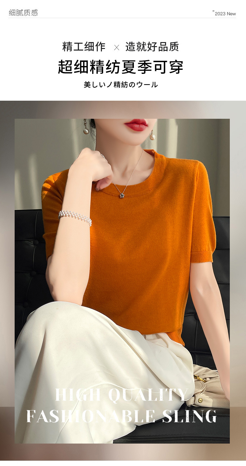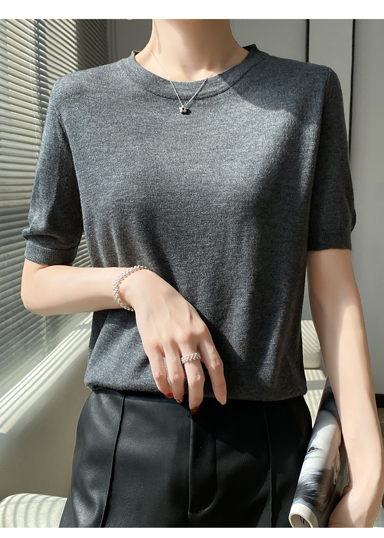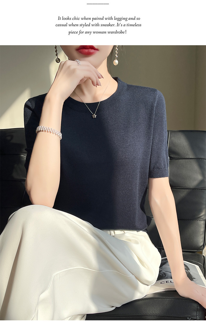 2024 년 봄과 여름 최악의 얇은 텐셀 울 반팔 여성용 루즈 라운드 넥 티셔츠 솔리드 컬러 플러스 사이즈 니트 스웨터 반팔스토어 가기