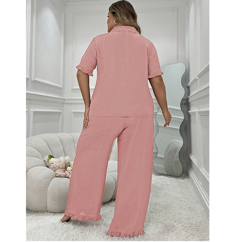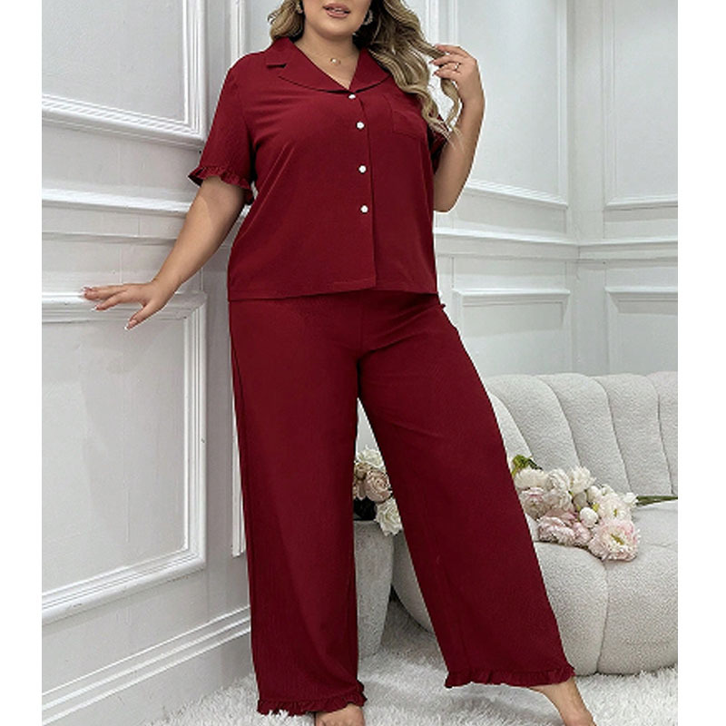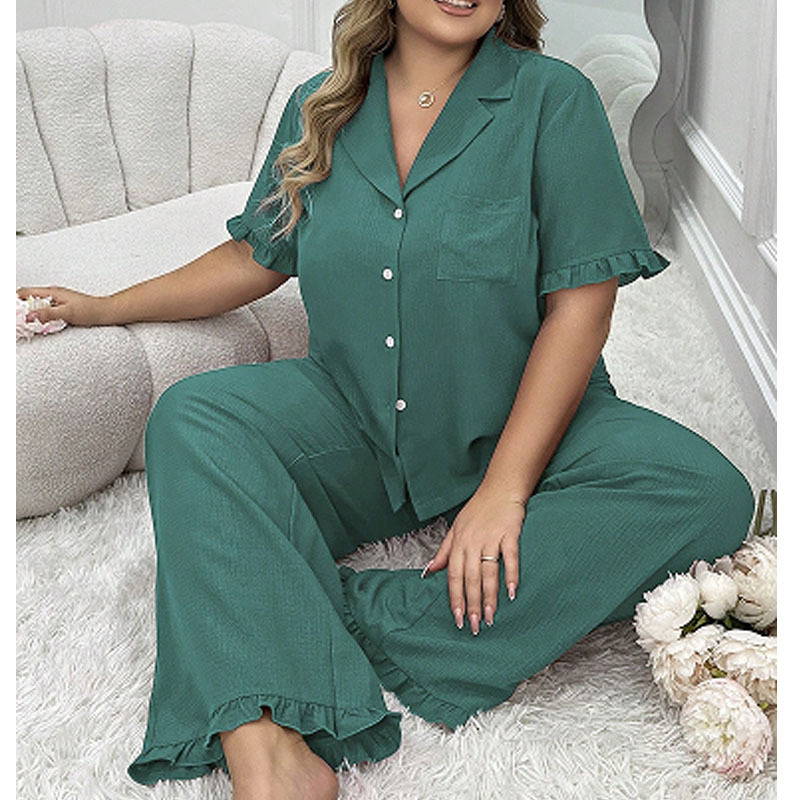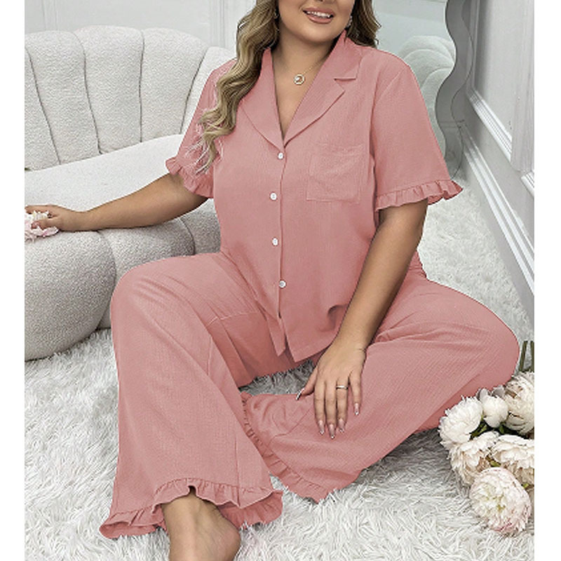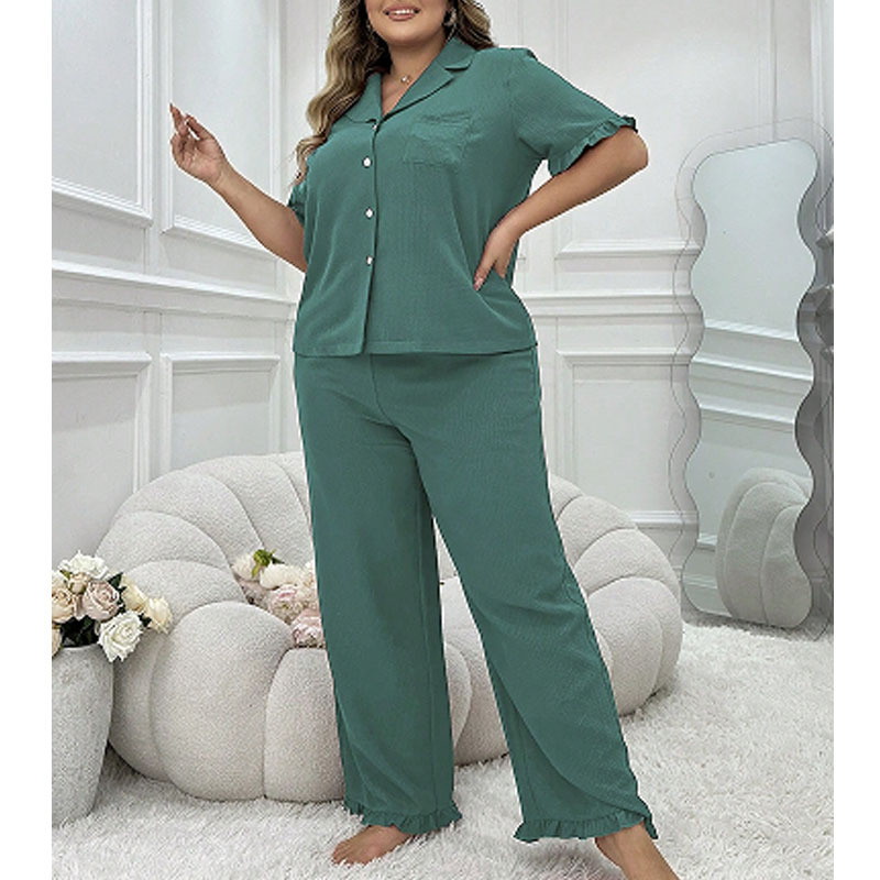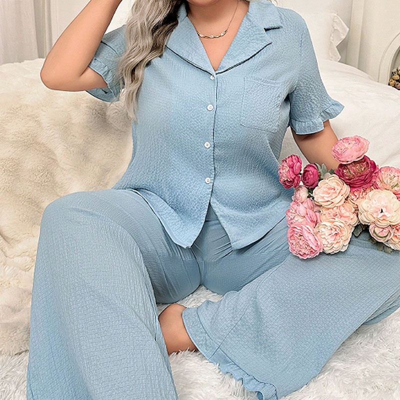 대형 파자마 여성 세트 여름 새로운 반팔 바지 투피스 얇은 느슨한 편안한 캐주얼 홈 옷
