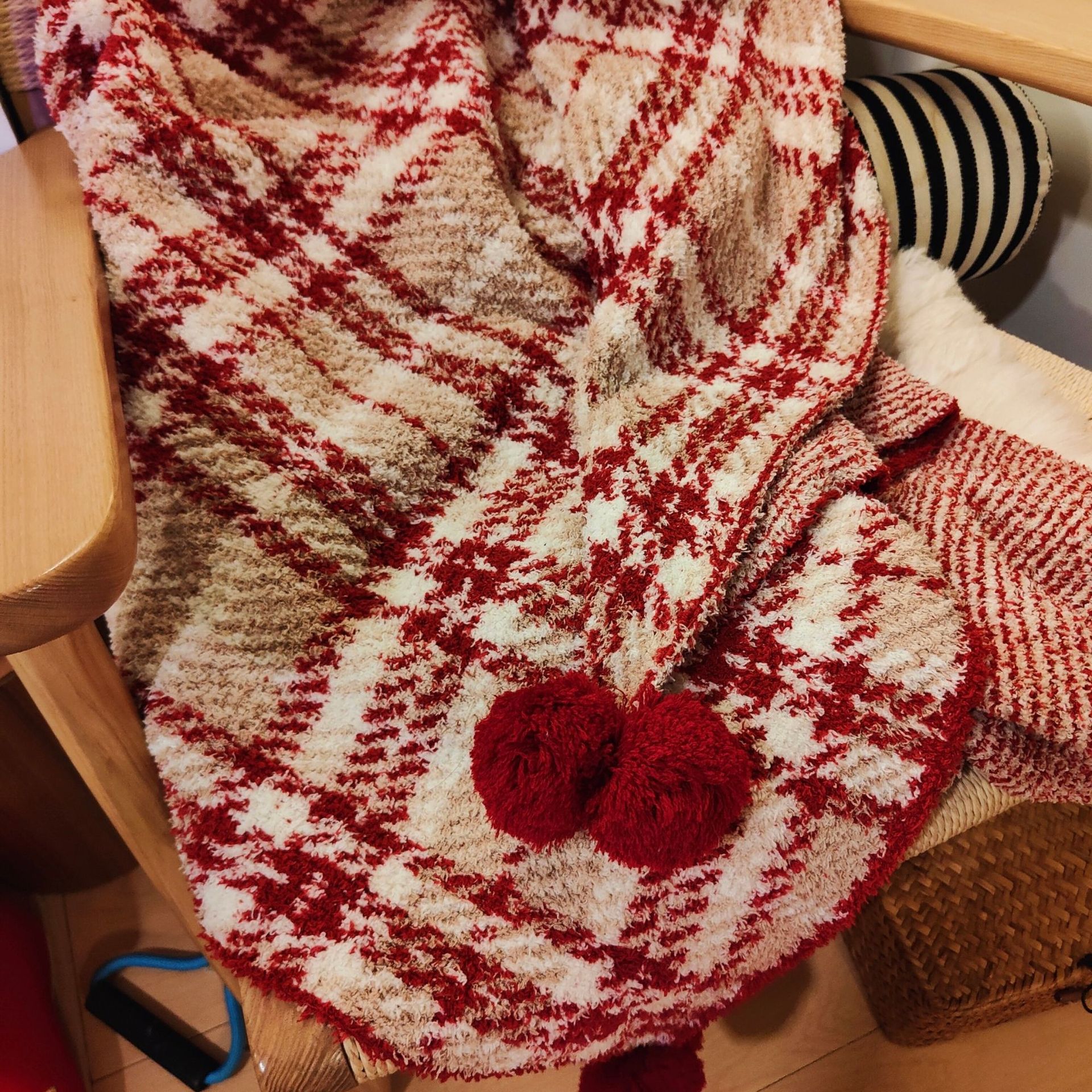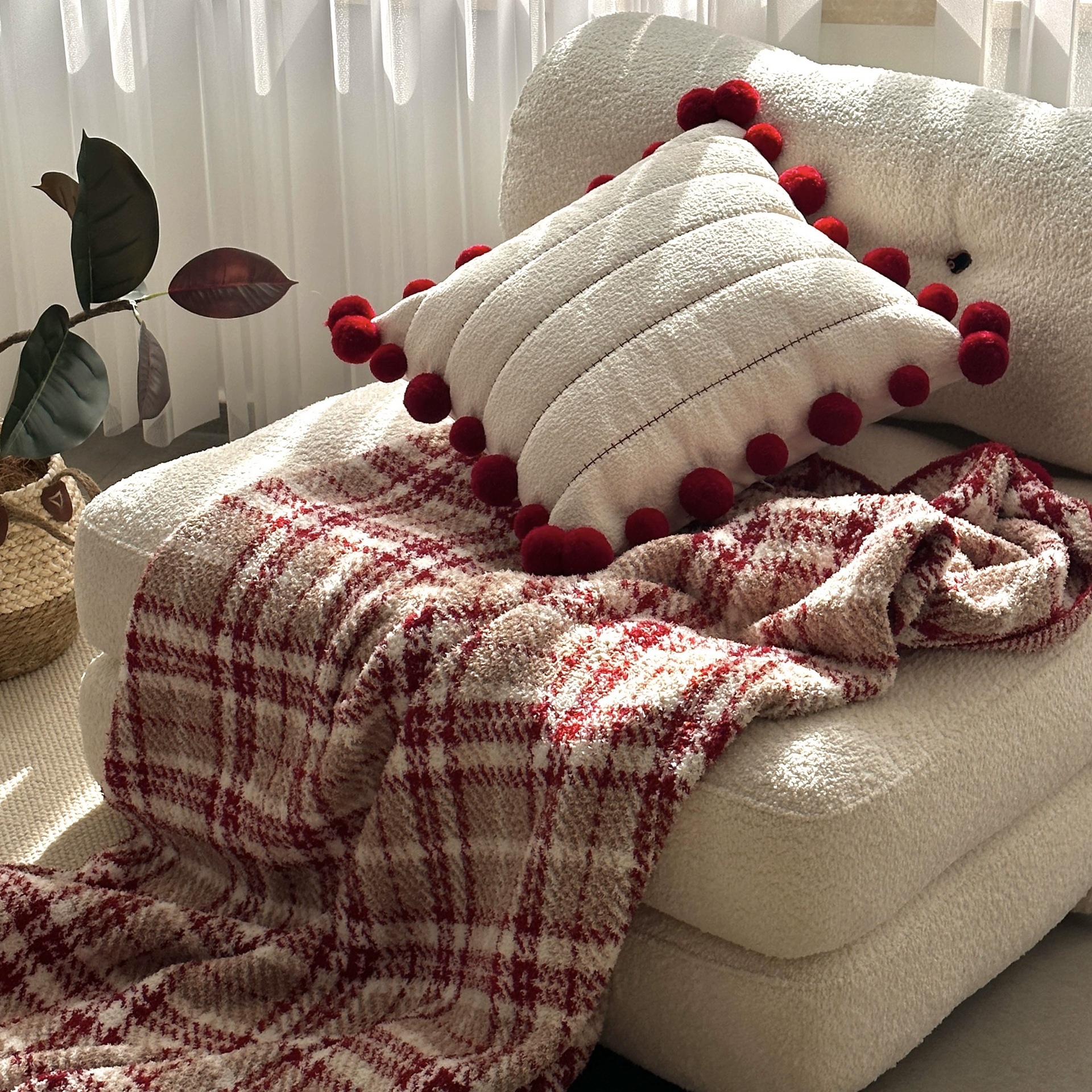 레트로 스타일 북유럽 스타일 하프 벨벳 격자 무늬 담요 레드 사계절 담요 침대 옆 담요 소파 담요 두꺼운