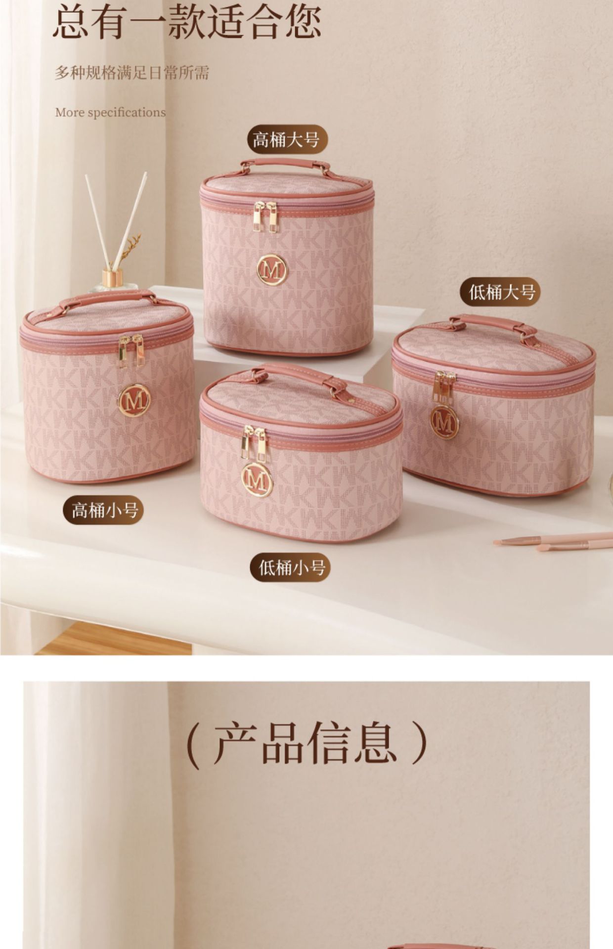 • 로우 배럴 핑크 싱글 대형 화장품 가방
