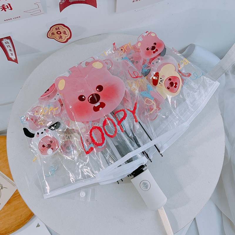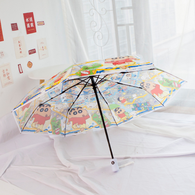 완전 자동 투명 접는 우산 인터넷 삼중 자체 개방 우산 여성 학생 작은 신선한 플라스틱 우산 두껍게스토어 가기