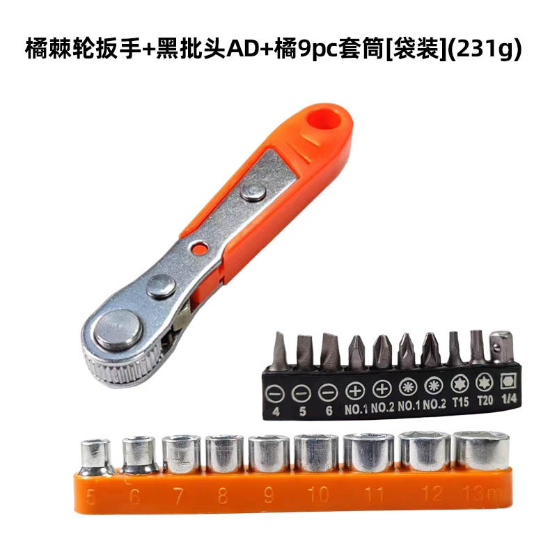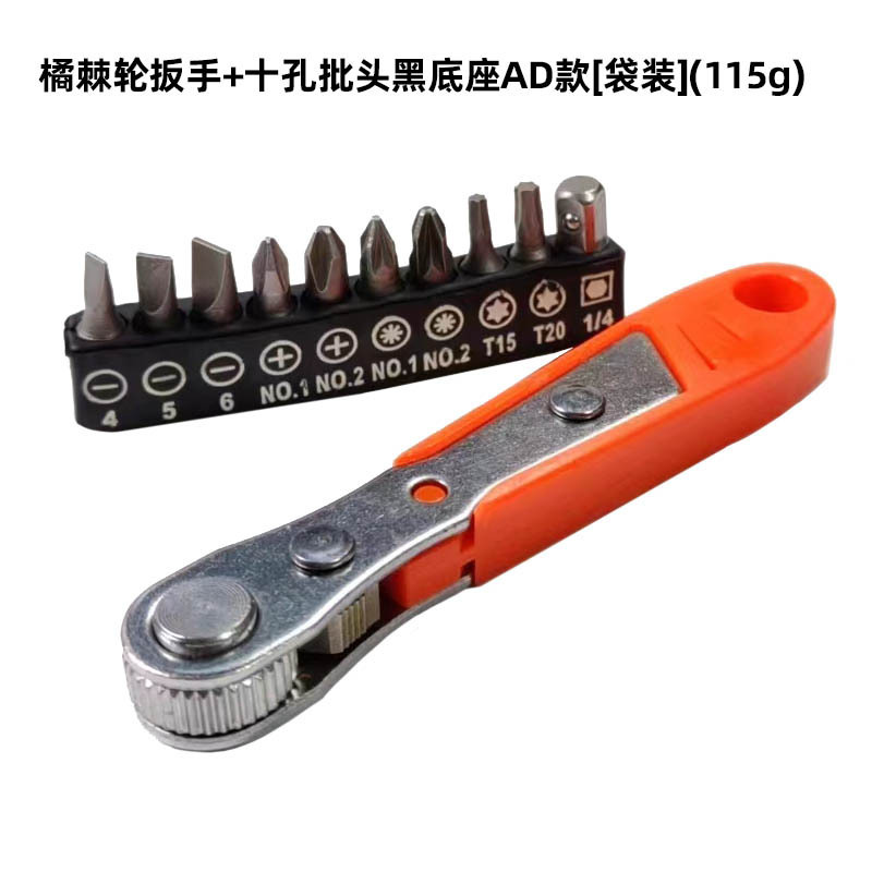 • A형 - 수평 주황색 빨간색 래칫 드라이버 + AD 10홀 비트가 있는 검정색 베이스 + 주황색 9개 소켓 [가방] 225.5g