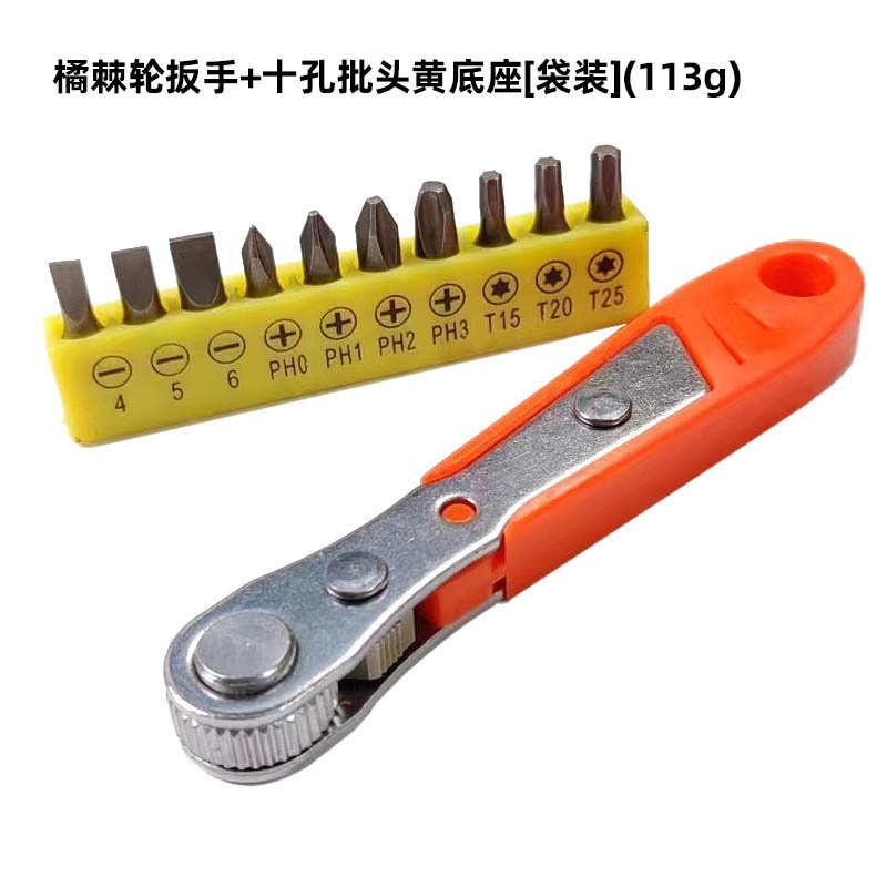 • 오렌지 래칫 렌치 10 홀 배치 헤드 블랙베이스 [가방](113g)