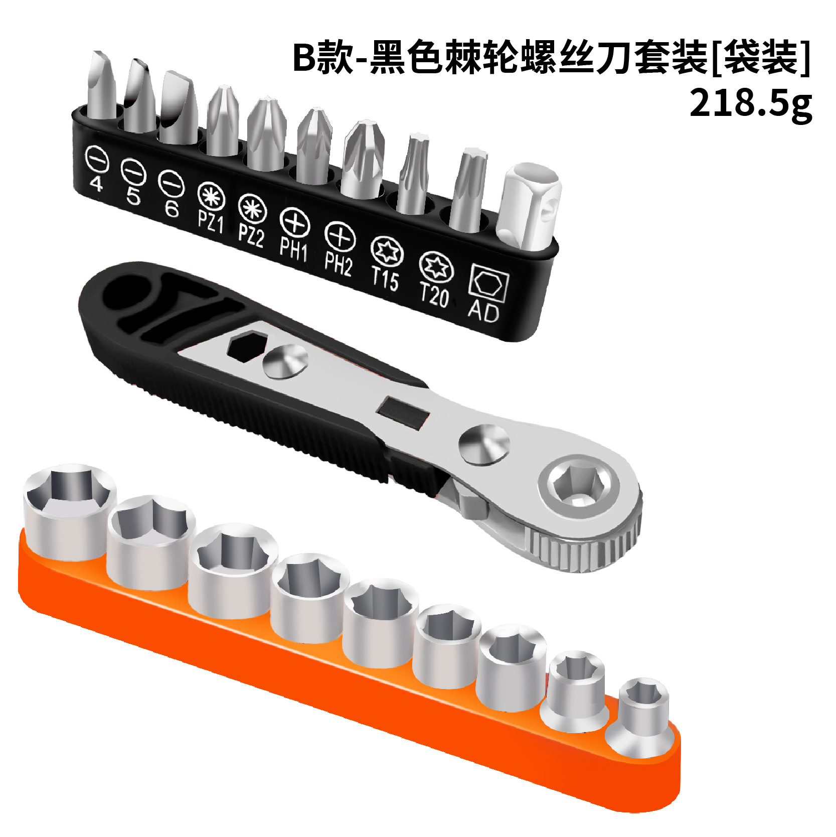 • B형 - 가로 줄무늬 검정색 래칫 드라이버 + AD 10홀 비트가 있는 검정색 베이스 + 주황색 9개 소켓 [가방] 218.5g