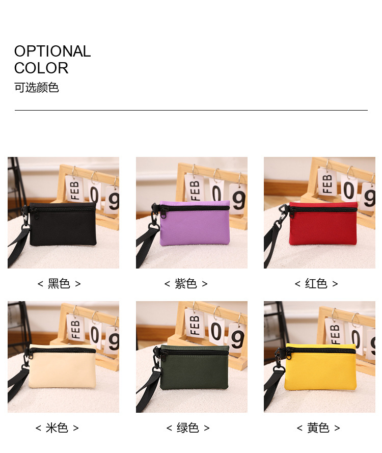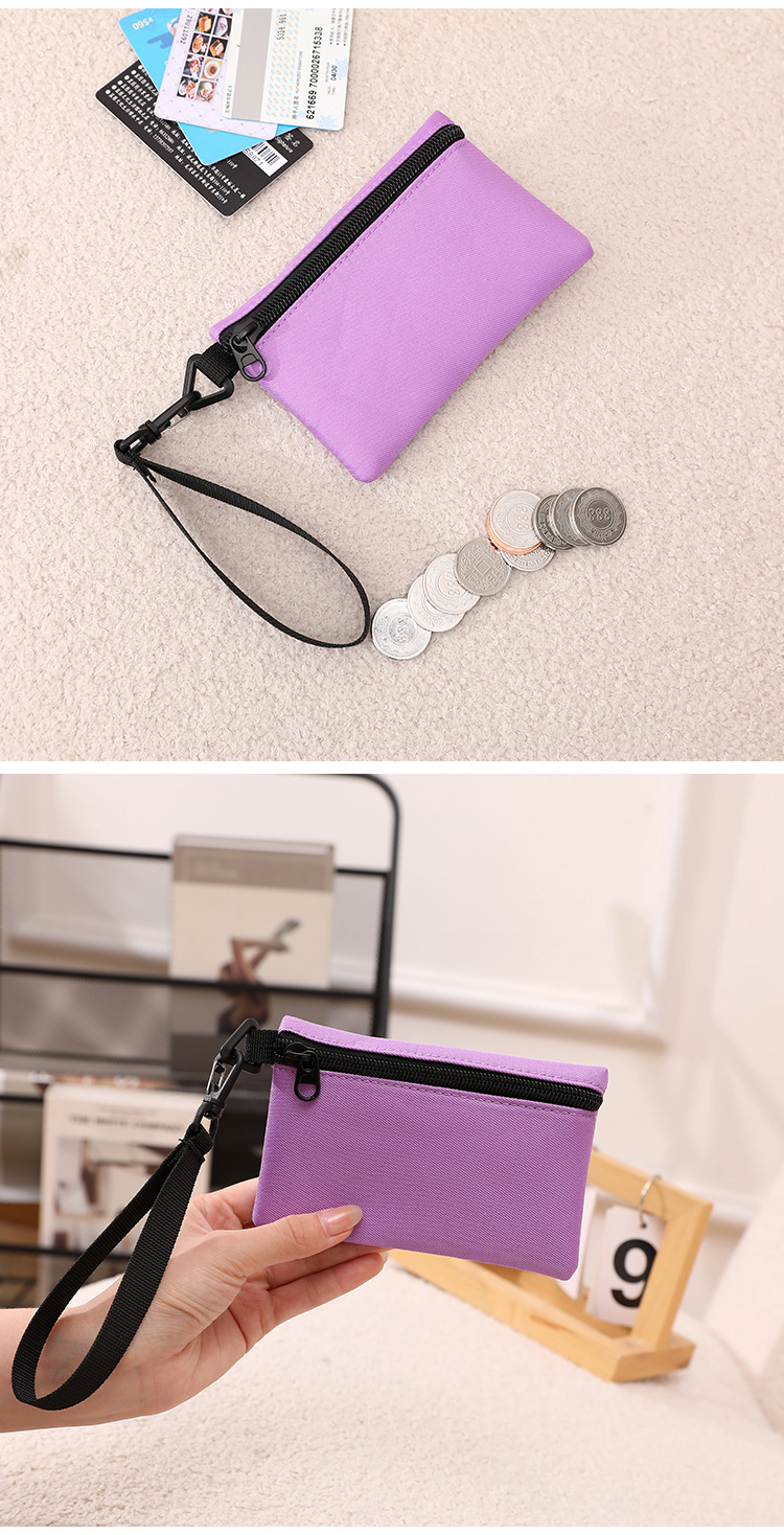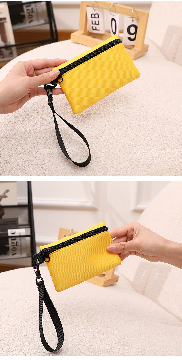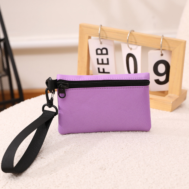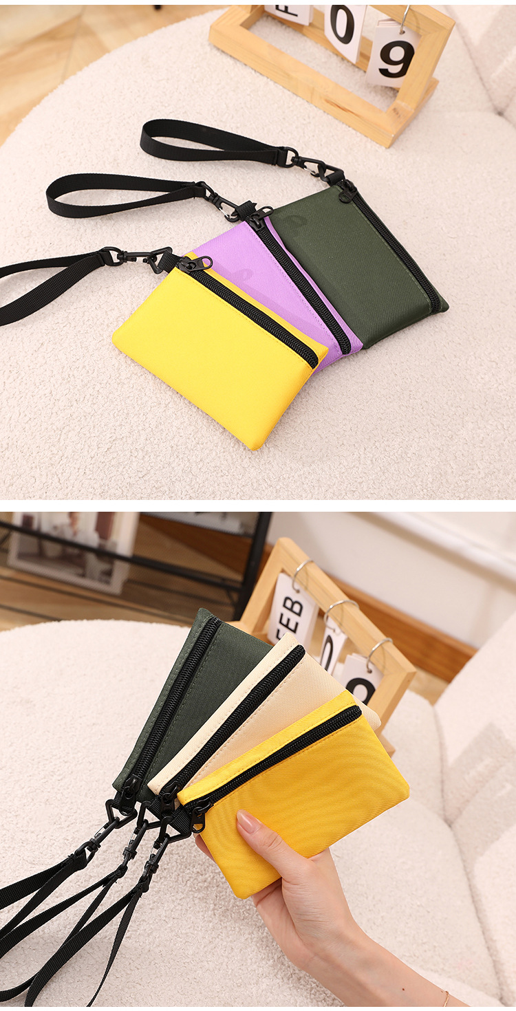 동전 지갑 여성의 2024 새로운 단색 폴리 에스테르 천 가방 손목 가방 동전 종이 머니 가방 카드 저장 가방 도매스토어 가기