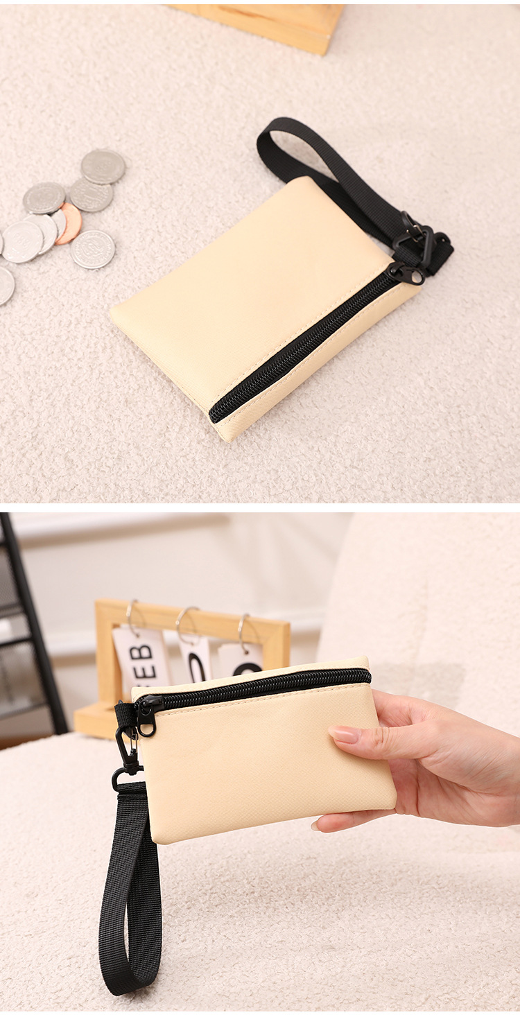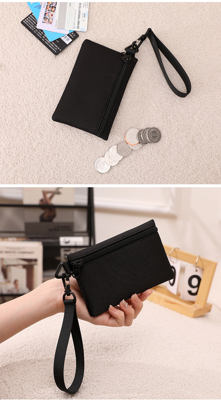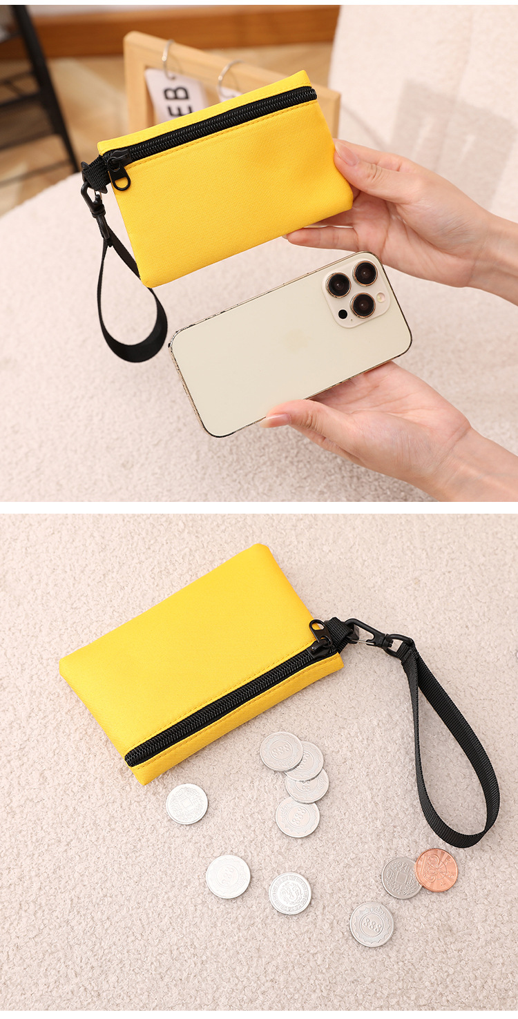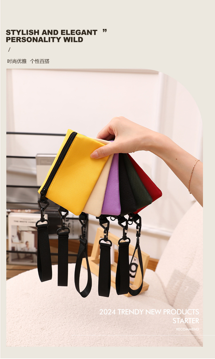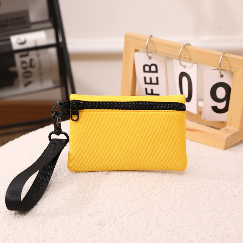 동전 지갑 여성의 2024 새로운 단색 폴리 에스테르 천 가방 손목 가방 동전 종이 머니 가방 카드 저장 가방 도매스토어 가기
