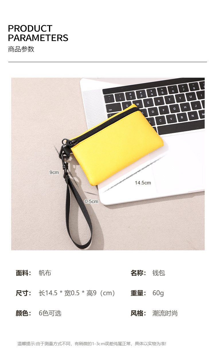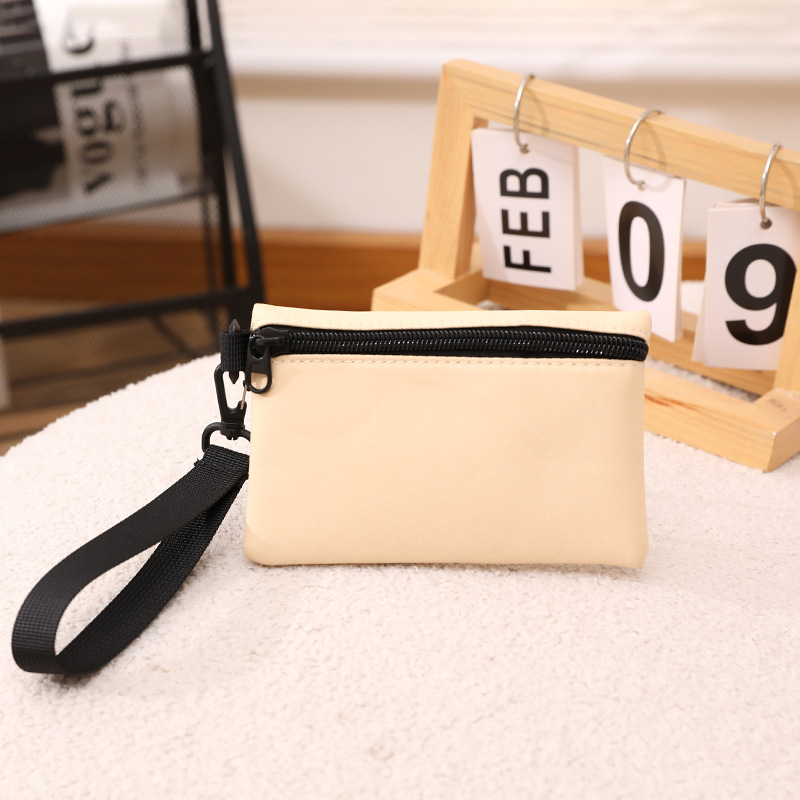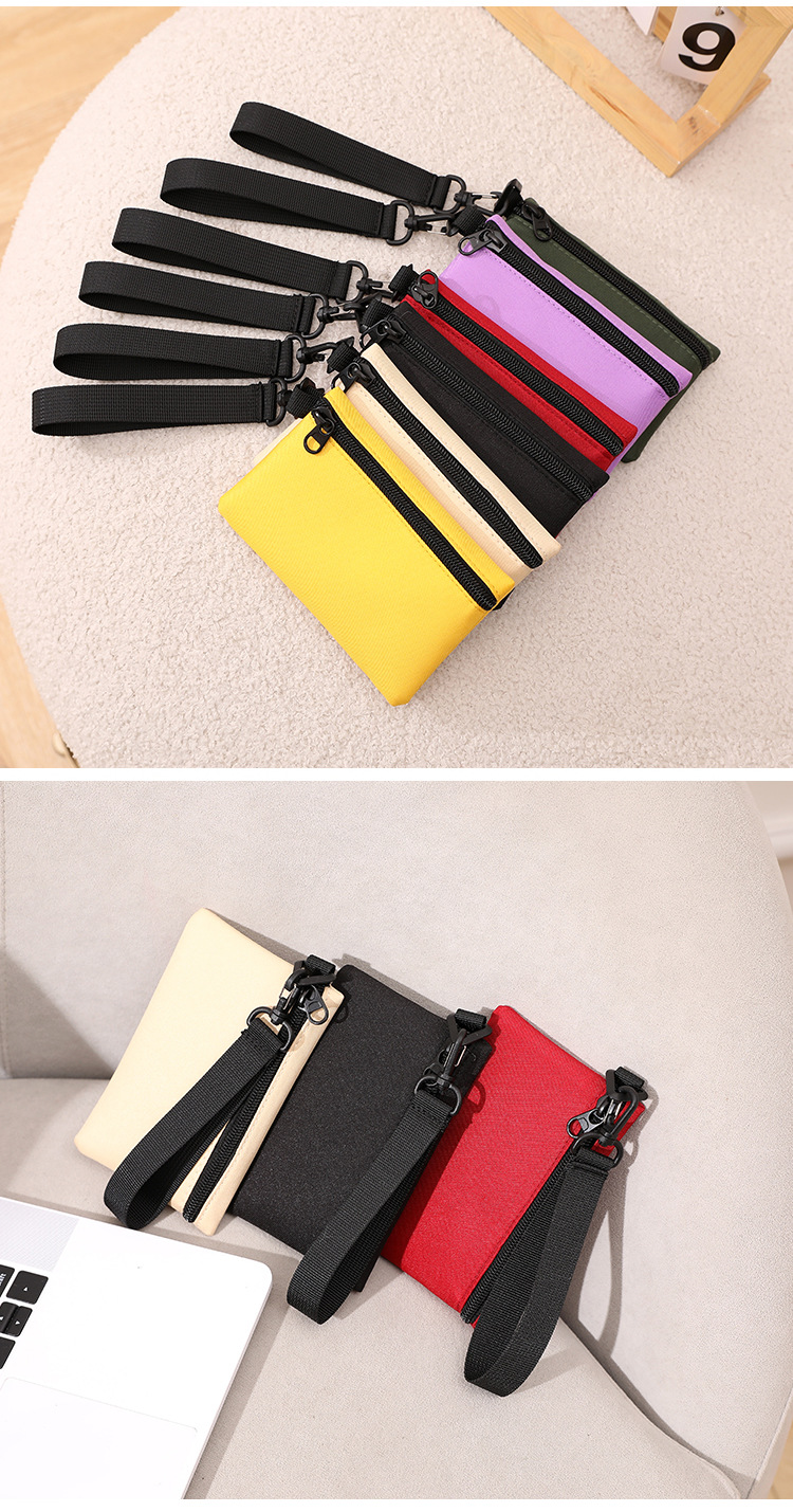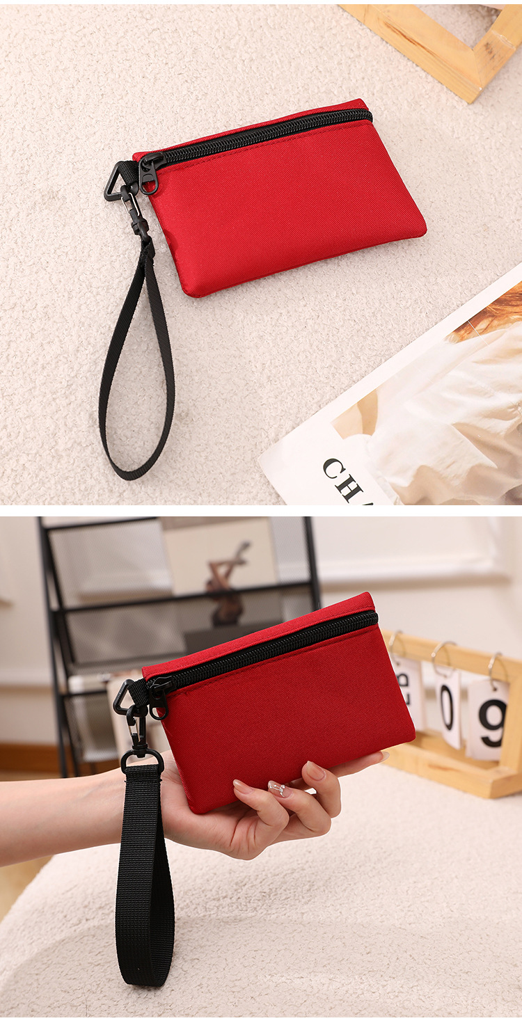 동전 지갑 여성의 2024 새로운 단색 폴리 에스테르 천 가방 손목 가방 동전 종이 머니 가방 카드 저장 가방 도매