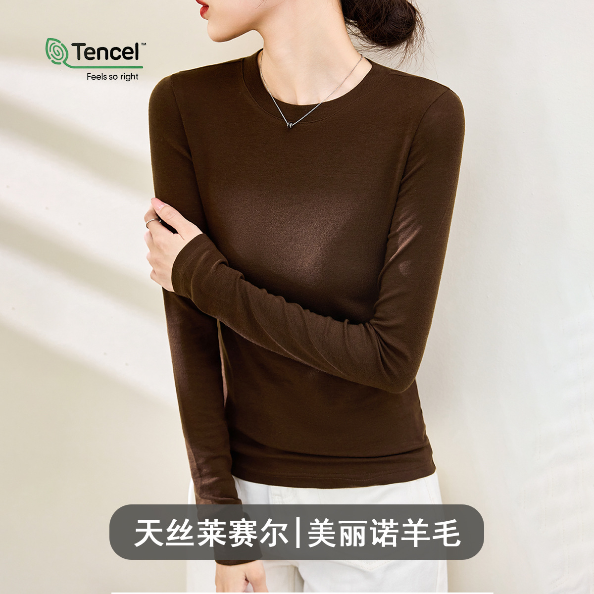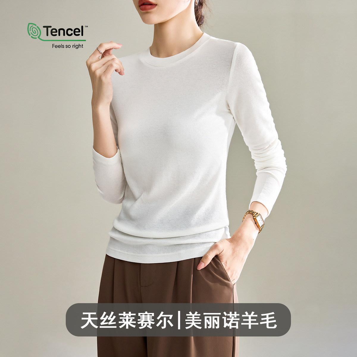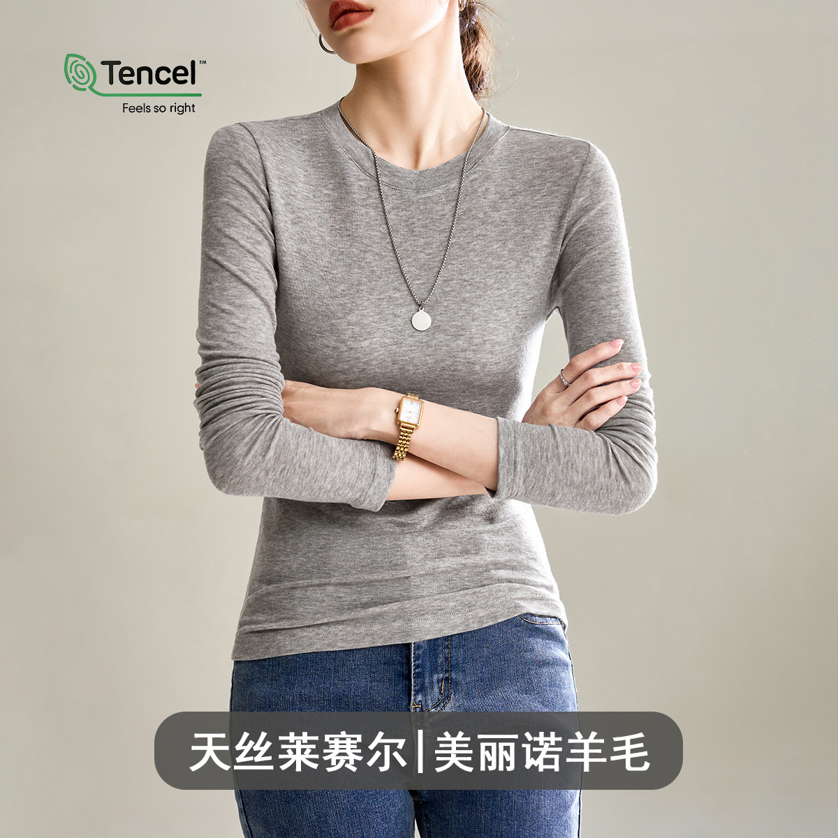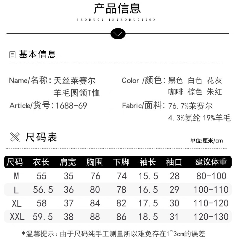 Wool Tencel Lyocell Crewneck Shoulder 티셔츠 여성 하이 퀄리티 여름 새로운 슬림 핏 부드러운 분위기 탑스토어 가기