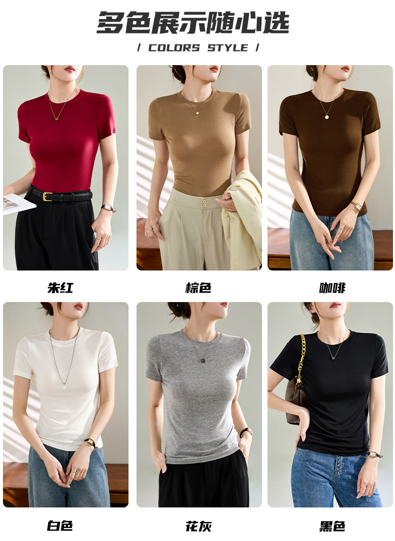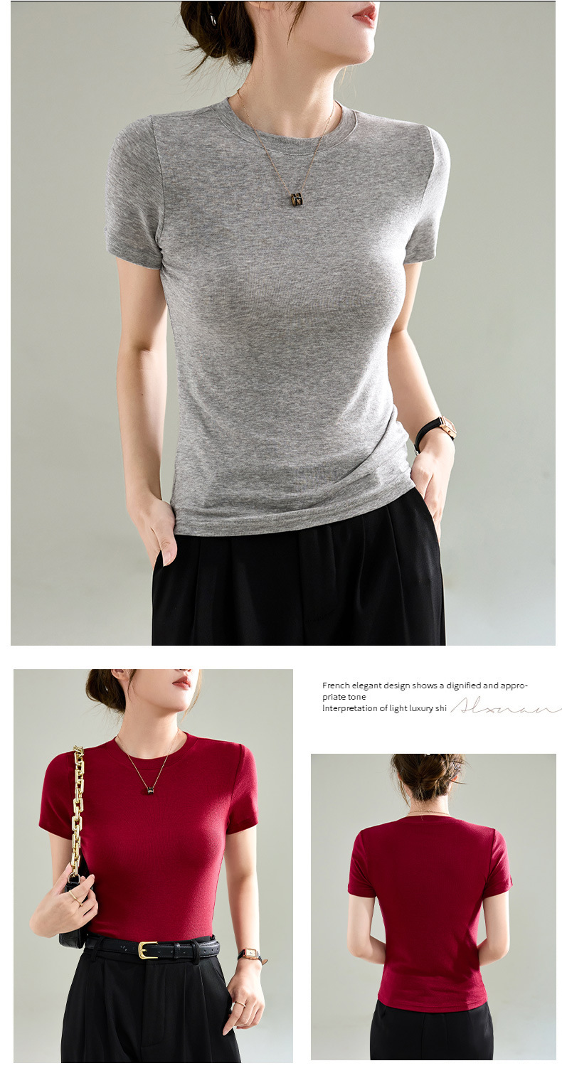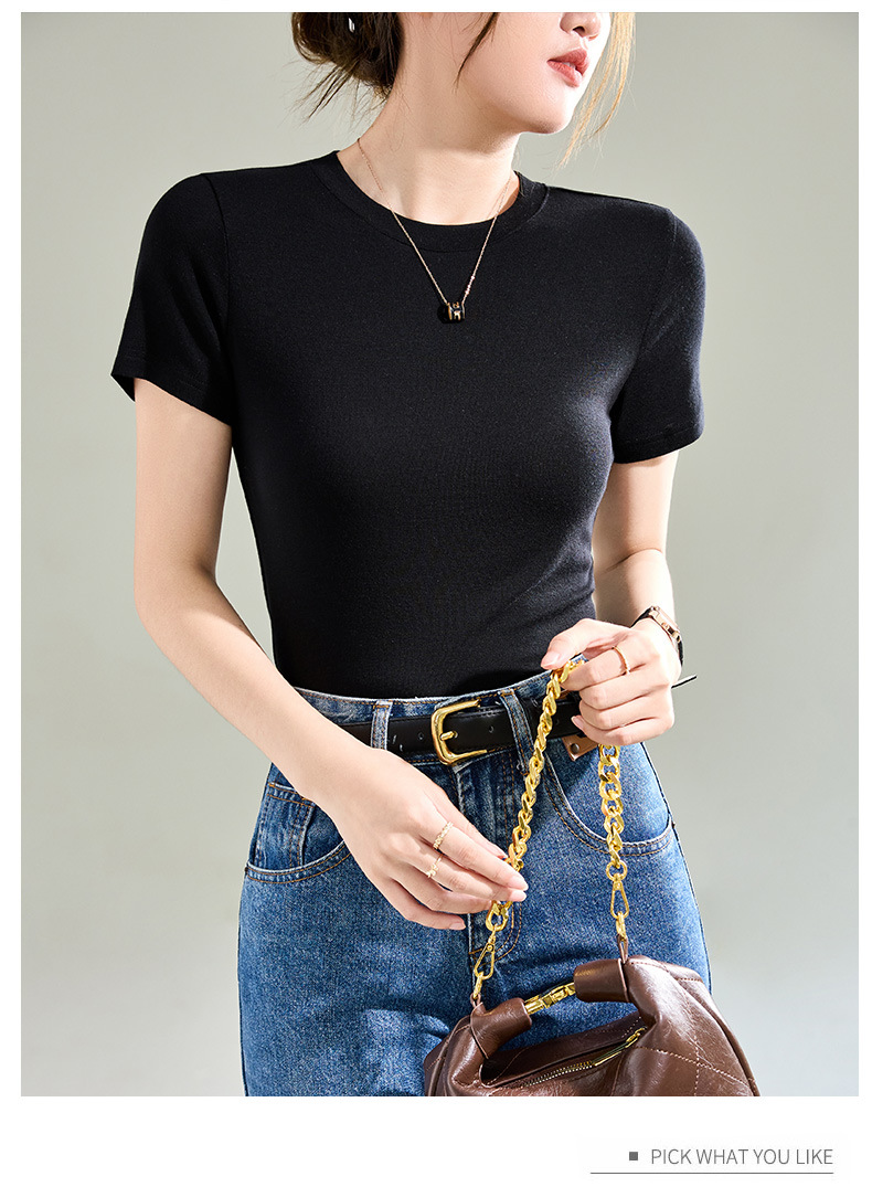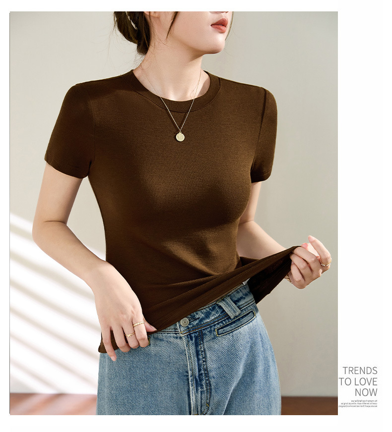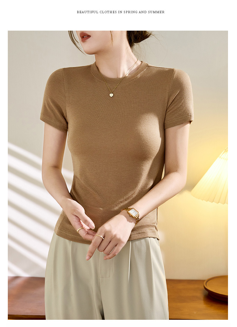 Wool Tencel Lyocell Crewneck Shoulder 티셔츠 여성 하이 퀄리티 여름 새로운 슬림 핏 부드러운 분위기 탑