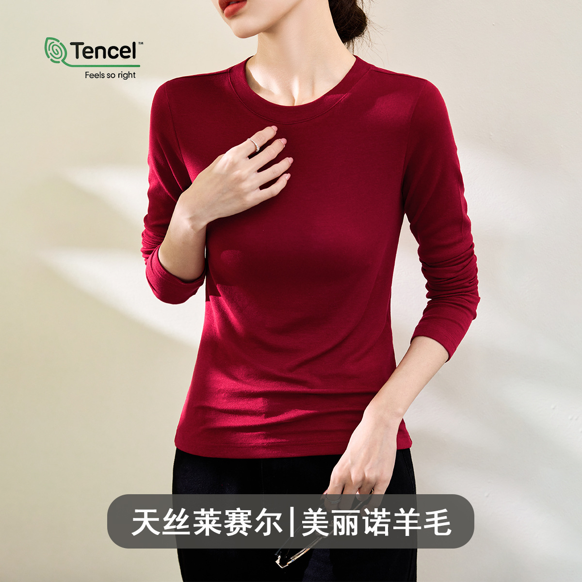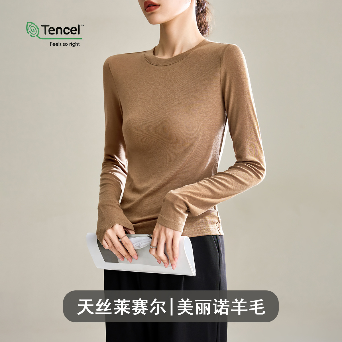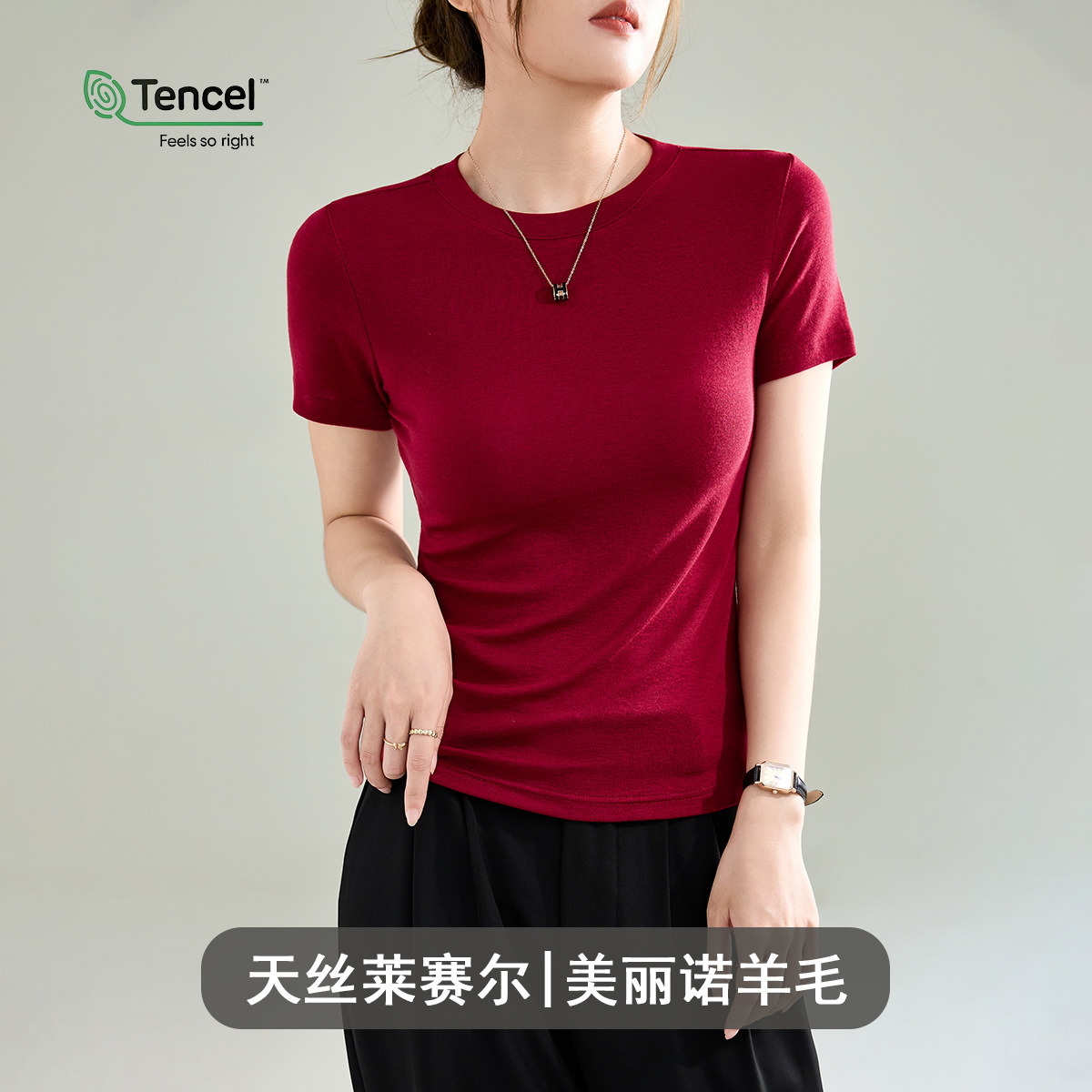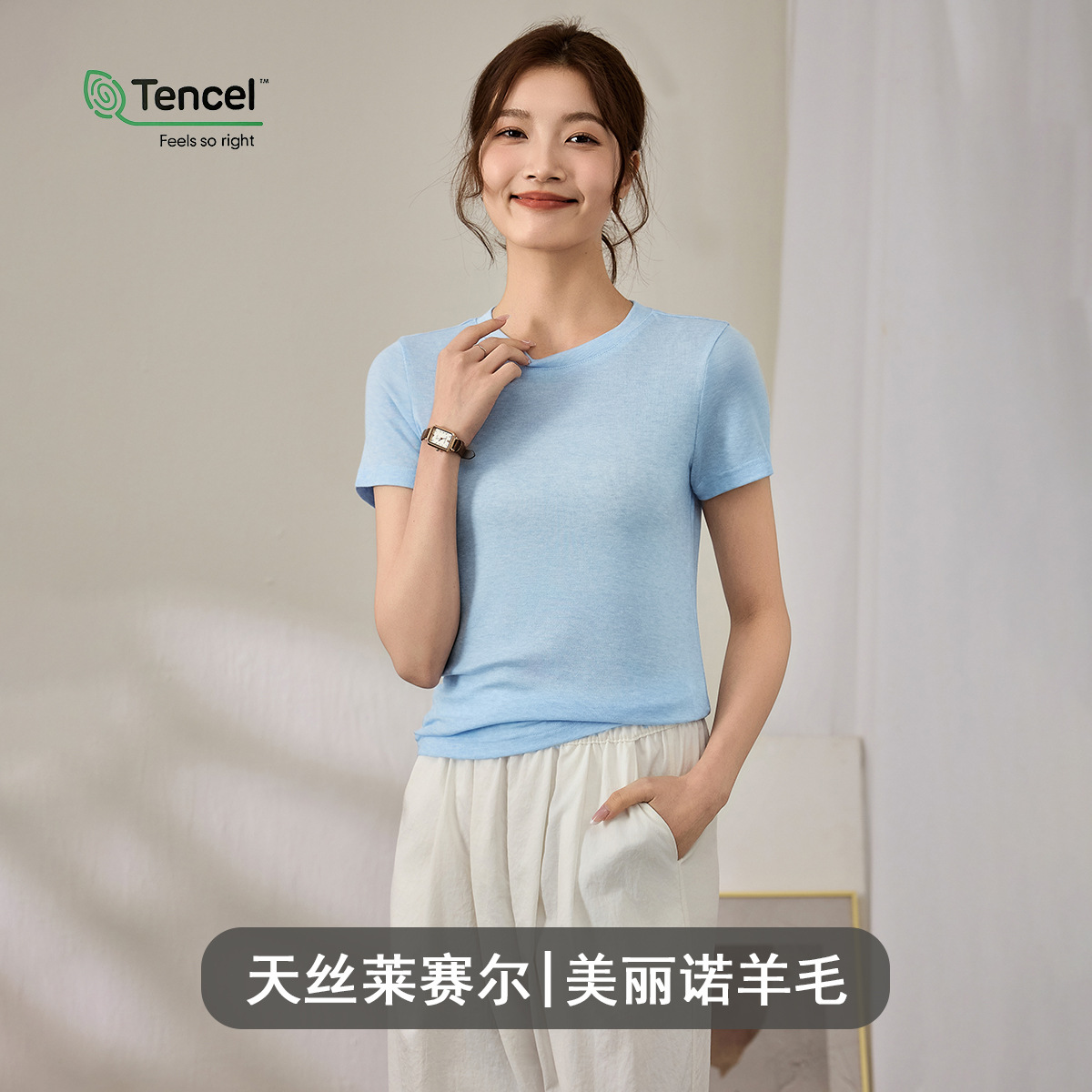 Wool Tencel Lyocell Crewneck Shoulder 티셔츠 여성 하이 퀄리티 여름 새로운 슬림 핏 부드러운 분위기 탑