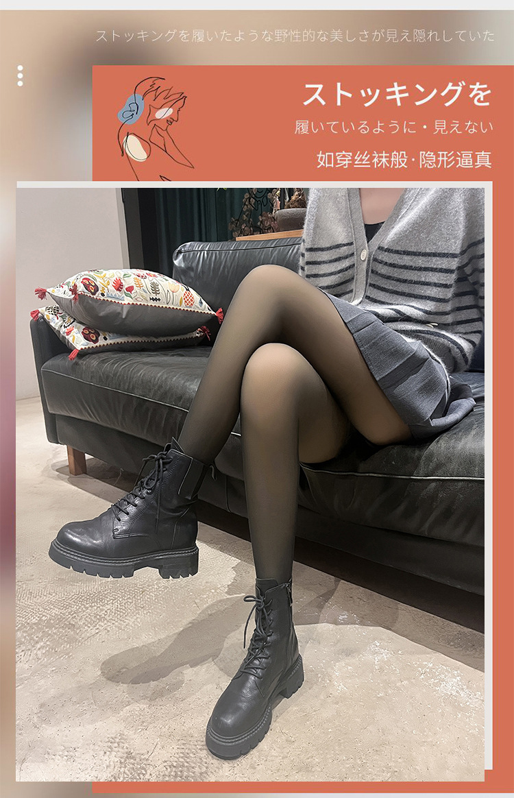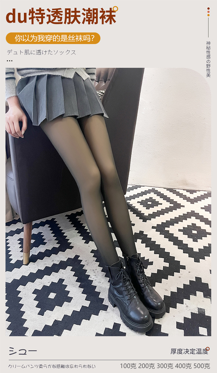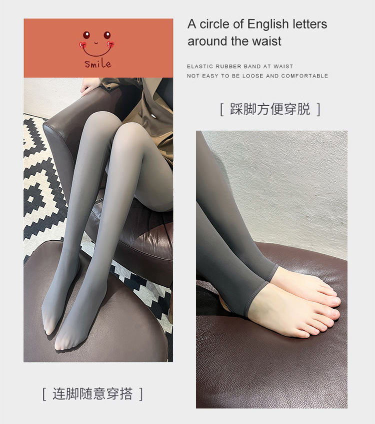 가을과 겨울 새로운 기모 두꺼운 피부 투명 레깅스 여성 플러스 사이즈 스튜어디스 그레이 가짜 고기 따뜻한 외부 착용 국경 간 통합스토어 가기