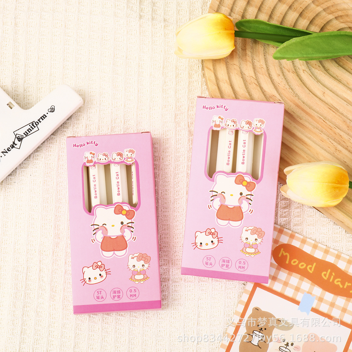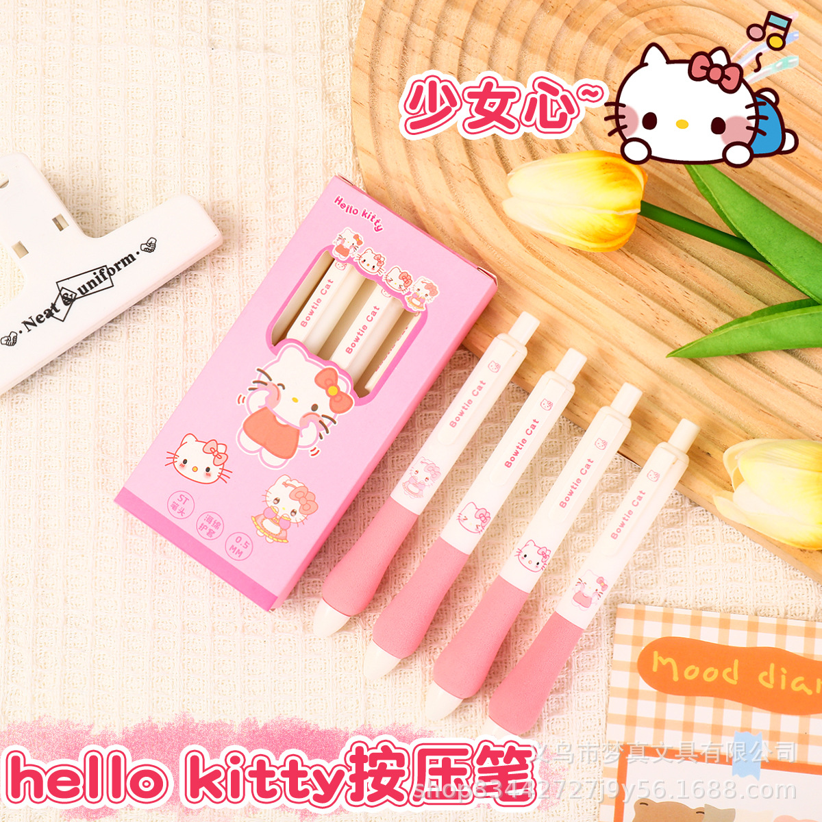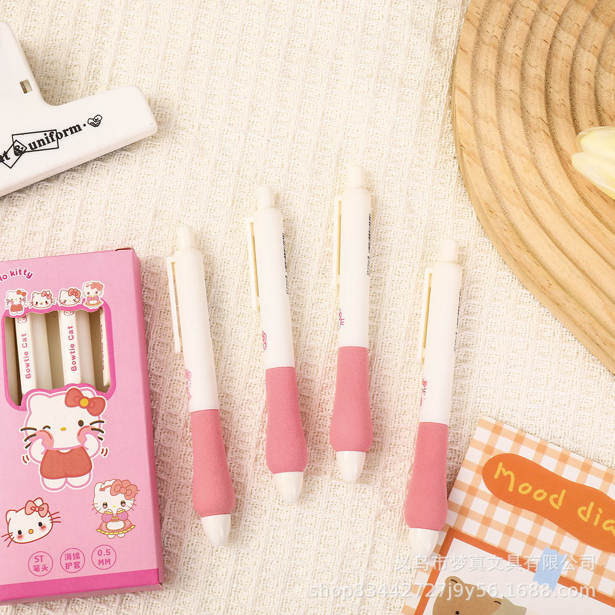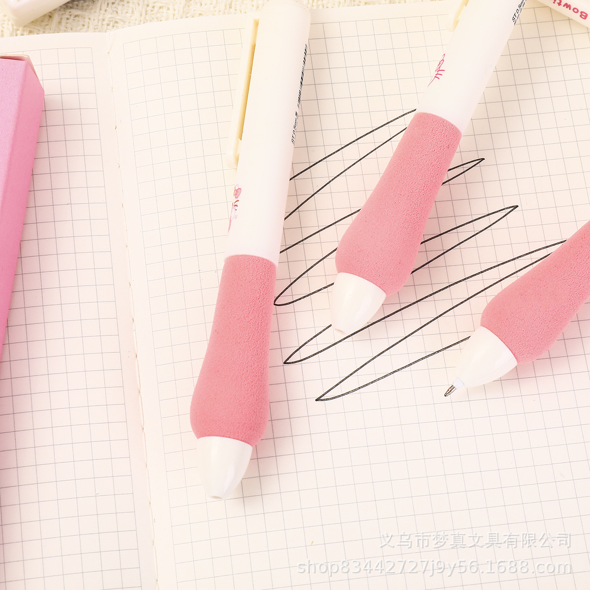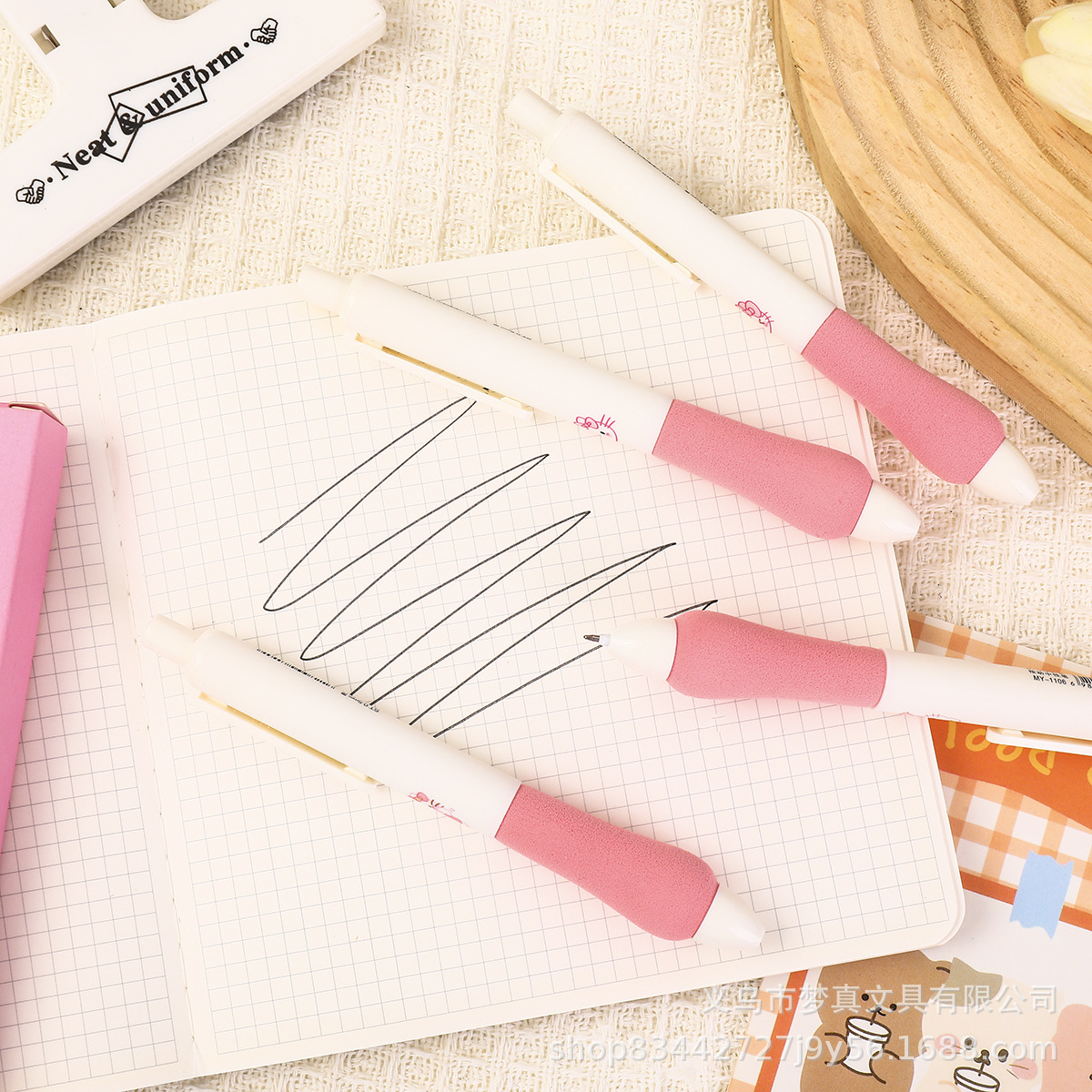 KT 고양이 팻팻 클라우드 그립펜, 예쁜 스펀지 보호대가 있는 연습용 펜, 학생용 초소프트 부담감소 펜, ST 속건성 푸쉬버튼 펜