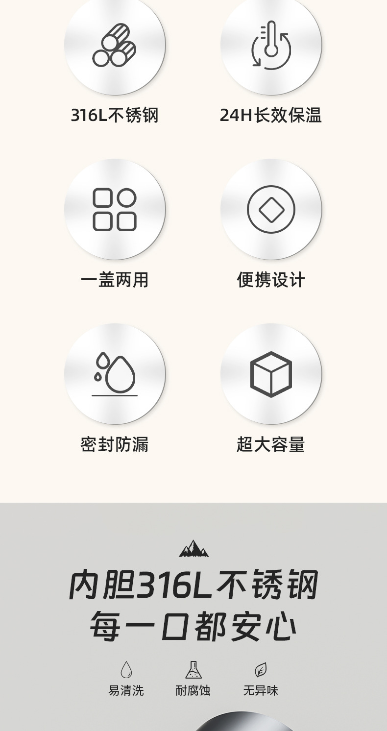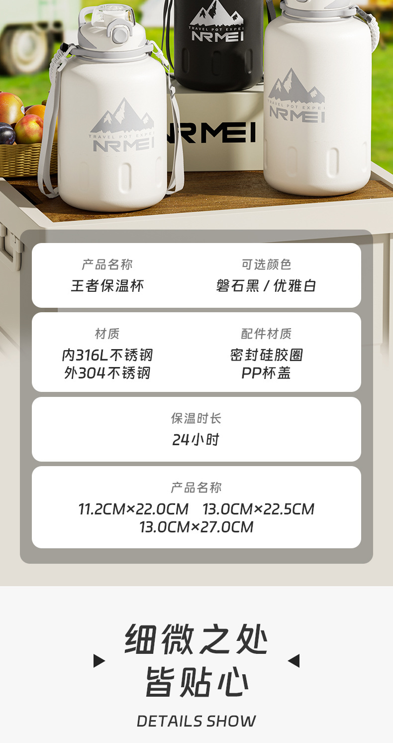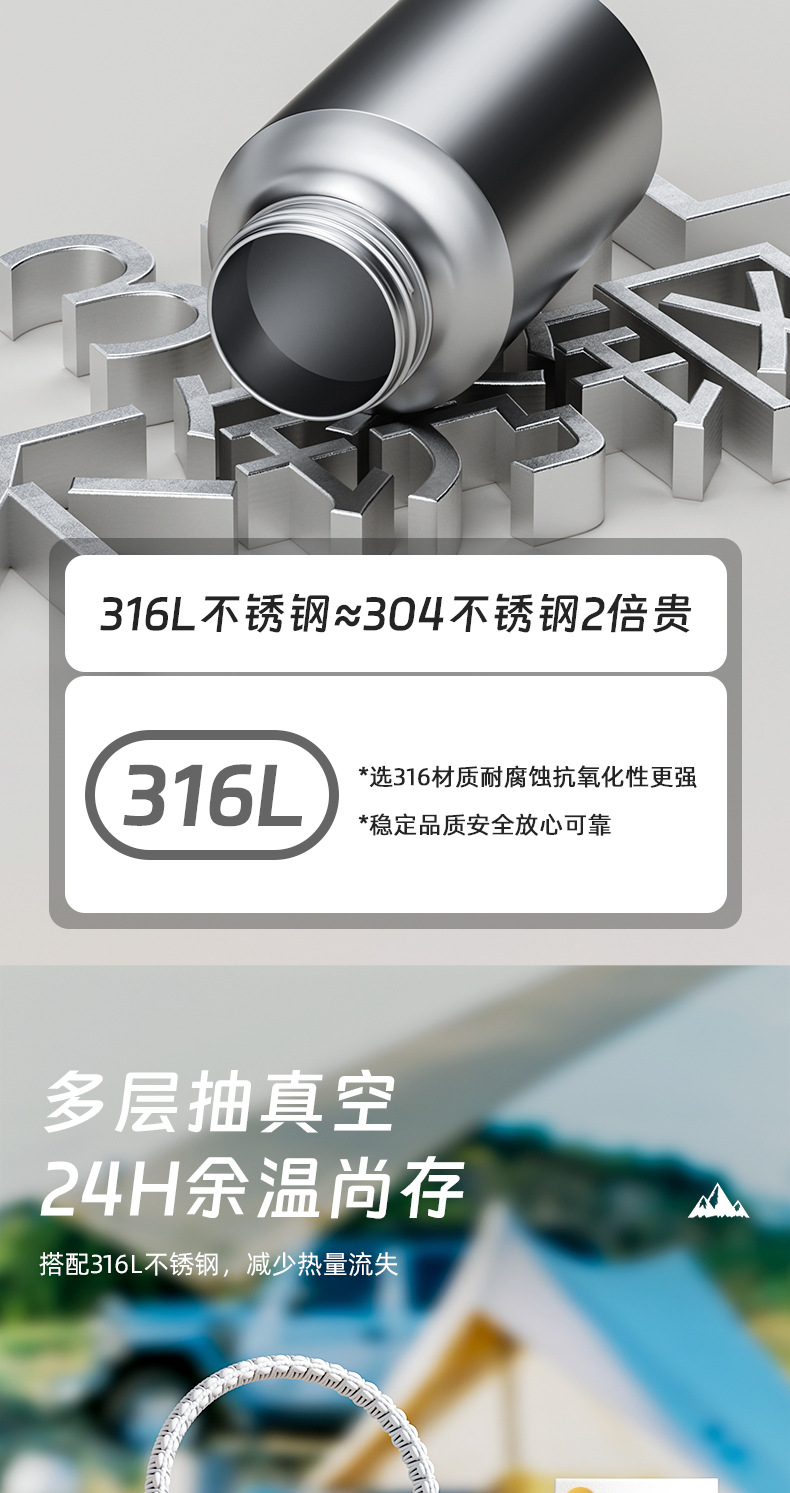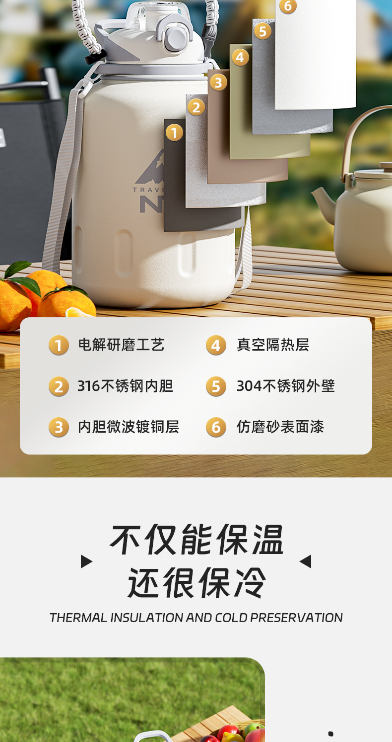 316L 스테인레스 스틸 보온병 컵 대용량 콜드 컵 남자 2024 신톤 배럴 톤 배꼽 스포츠 주전자스토어 가기