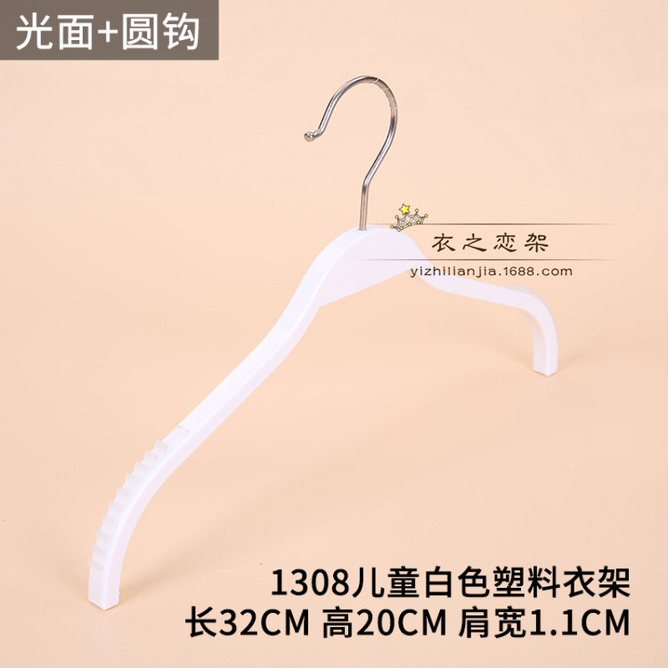 • 1308 어린이 흰색 부드러운 플라스틱 옷걸이 실버 둥근 고리