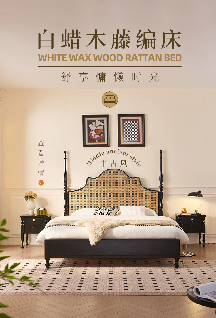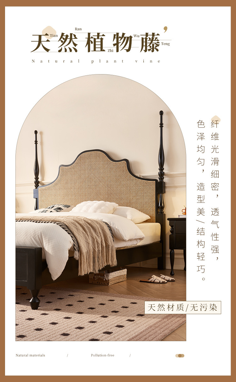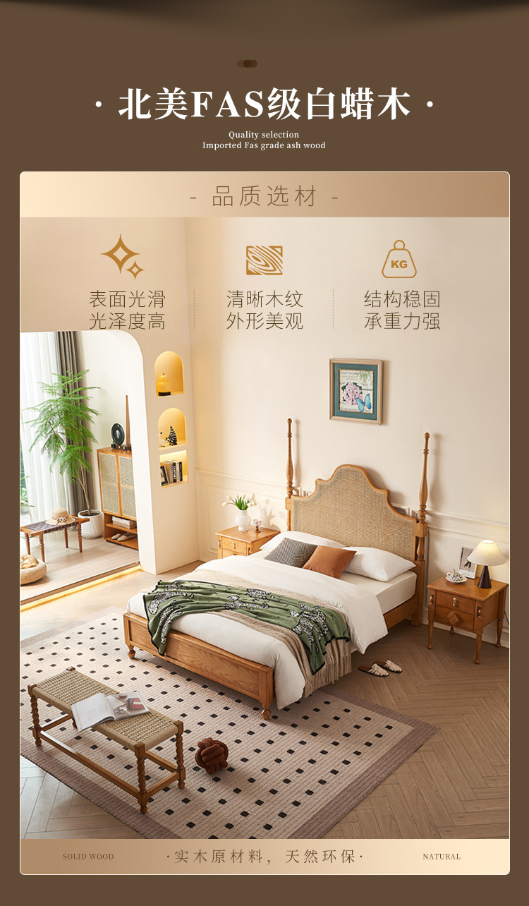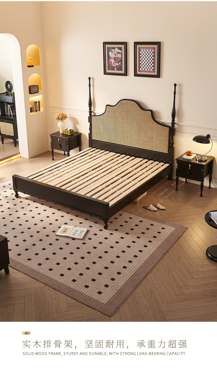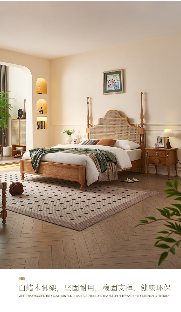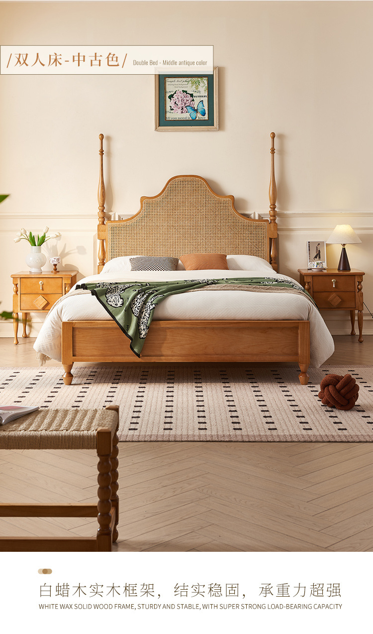 미국 마스터 침실 침대 등나무 침대 북유럽 디자이너 크리에이티브 솔리드 우드 침대 하이 엔드 홈스테이 호텔 앤티크 더블 침대스토어 가기