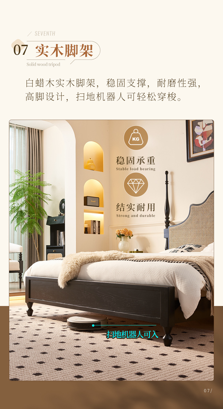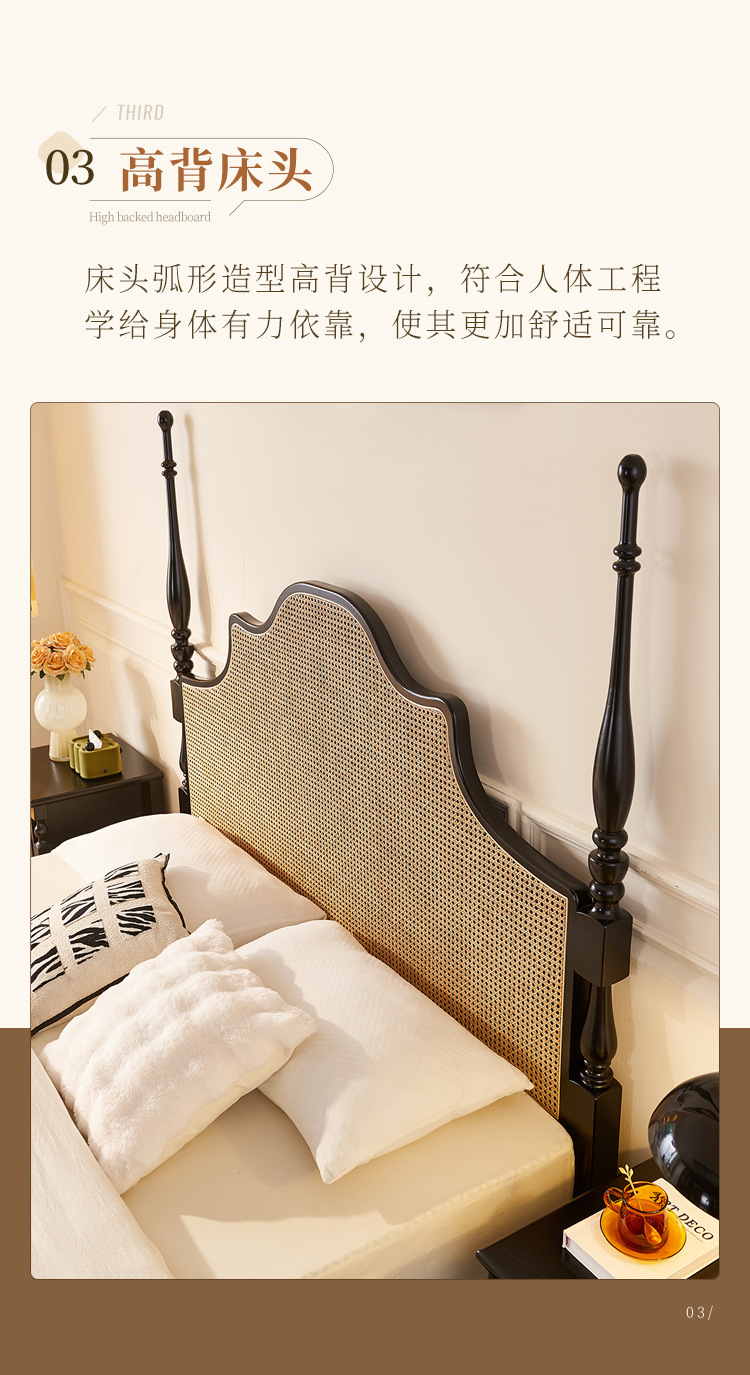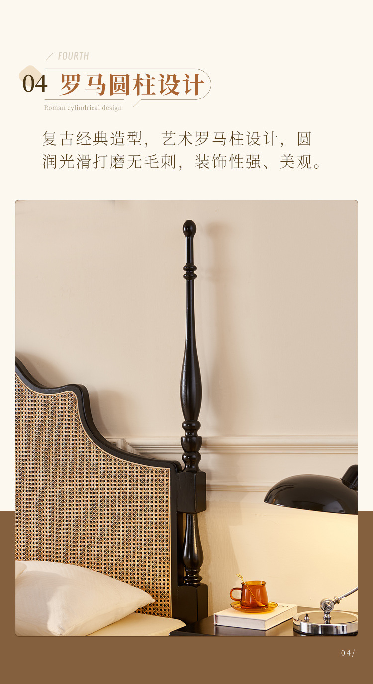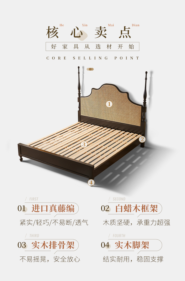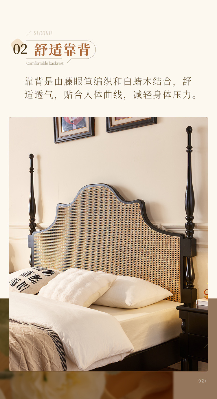 미국 마스터 침실 침대 등나무 침대 북유럽 디자이너 크리에이티브 솔리드 우드 침대 하이 엔드 홈스테이 호텔 앤티크 더블 침대스토어 가기