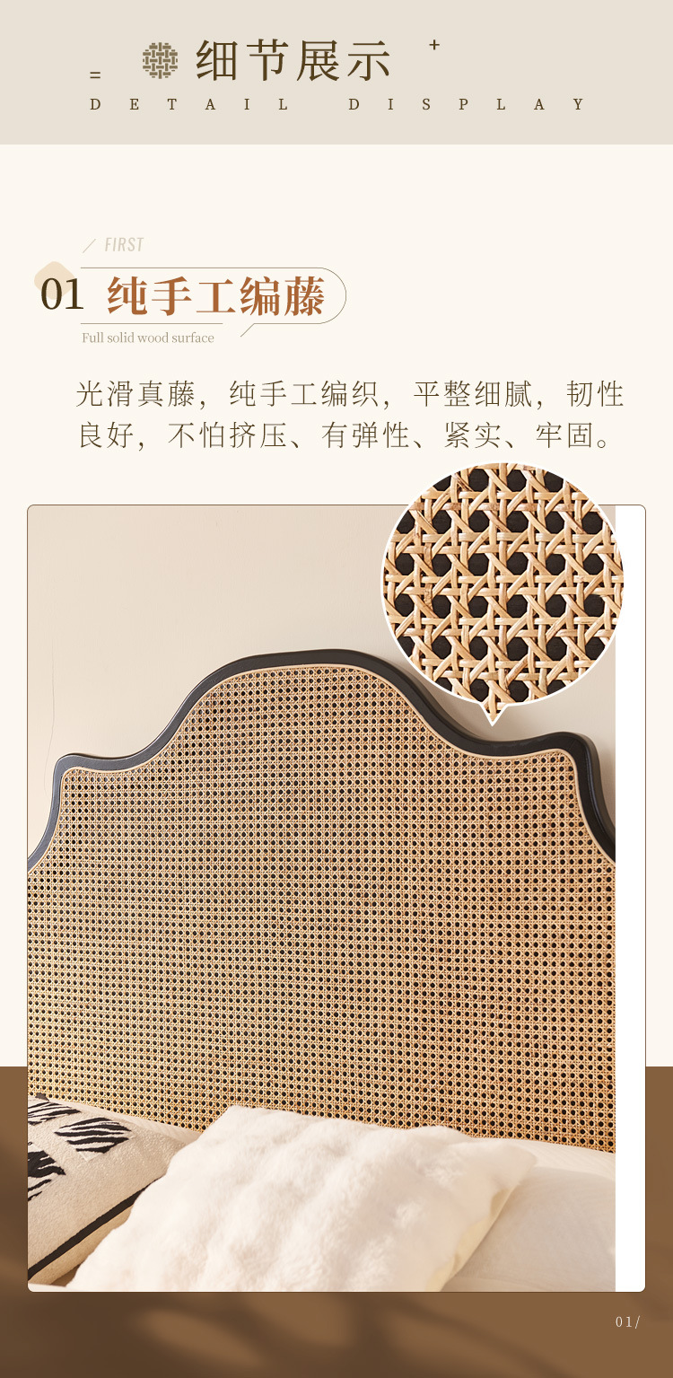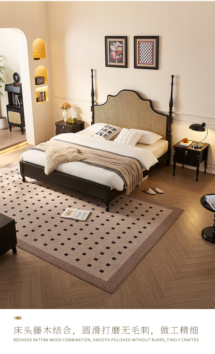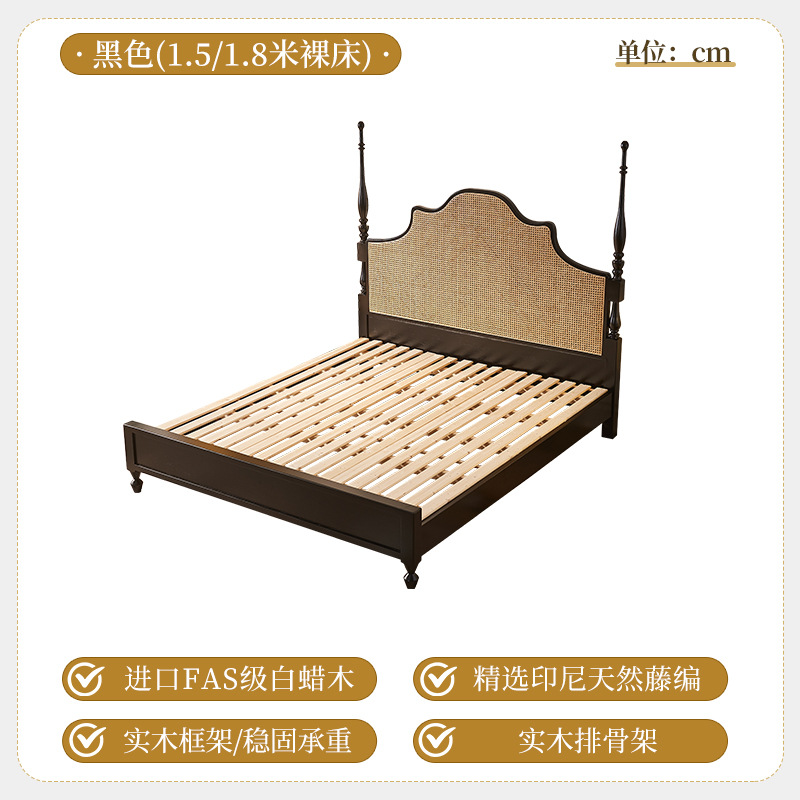 미국 마스터 침실 침대 등나무 침대 북유럽 디자이너 크리에이티브 솔리드 우드 침대 하이 엔드 홈스테이 호텔 앤티크 더블 침대