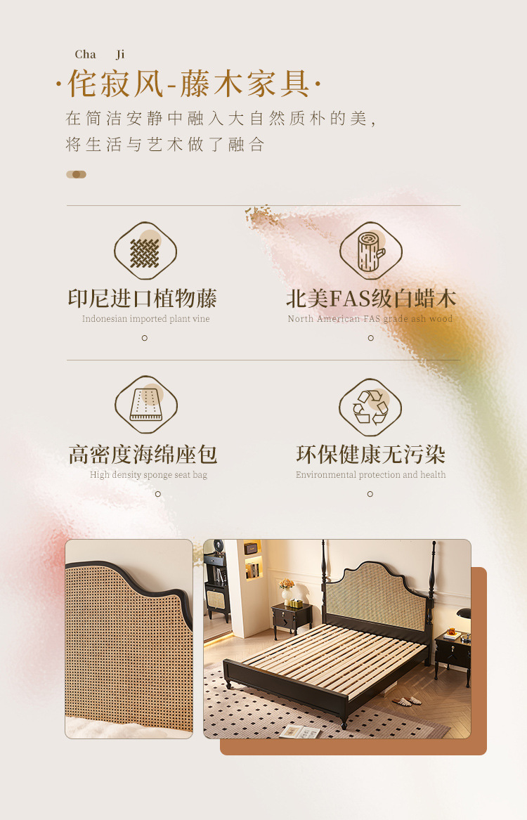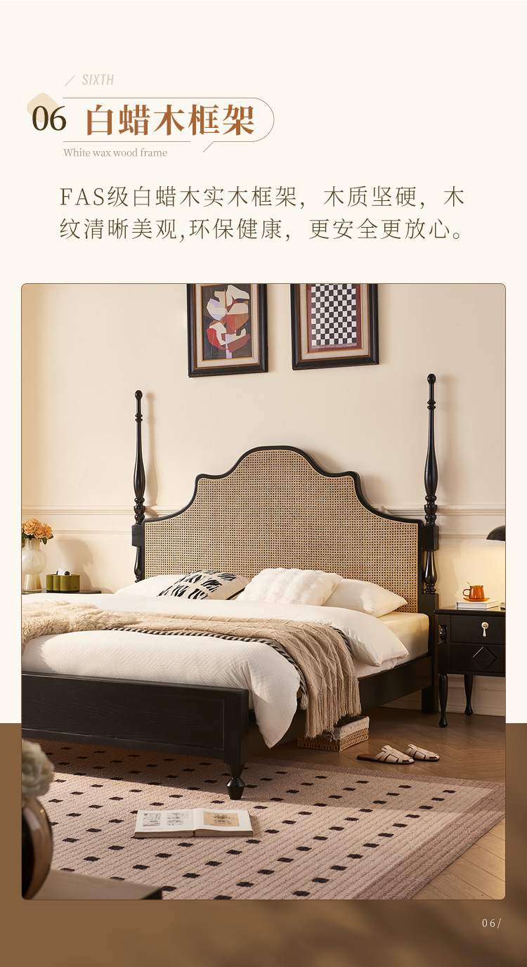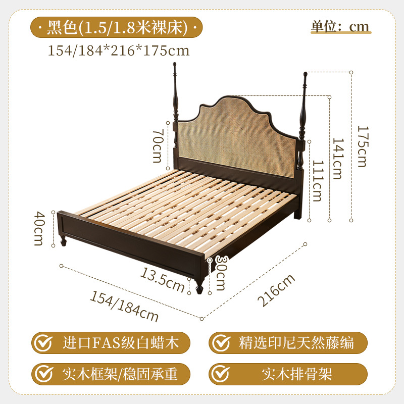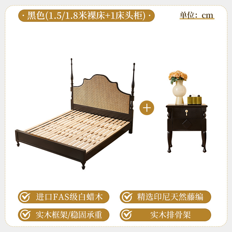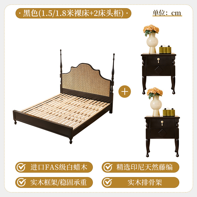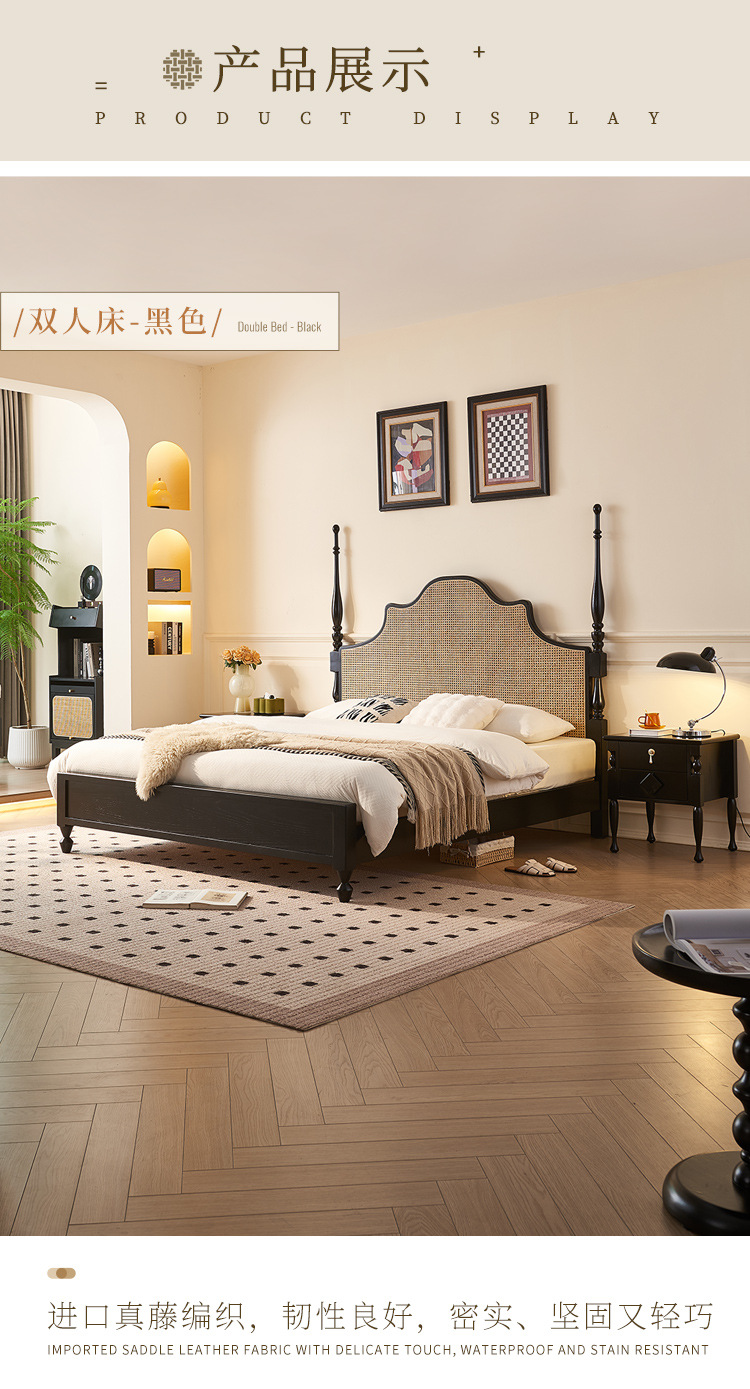 • 블랙 1.8 m 침대 [단단한 나무 등나무]]
