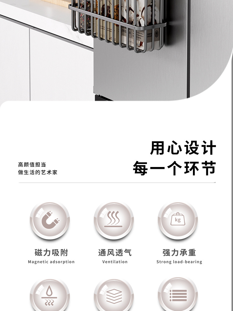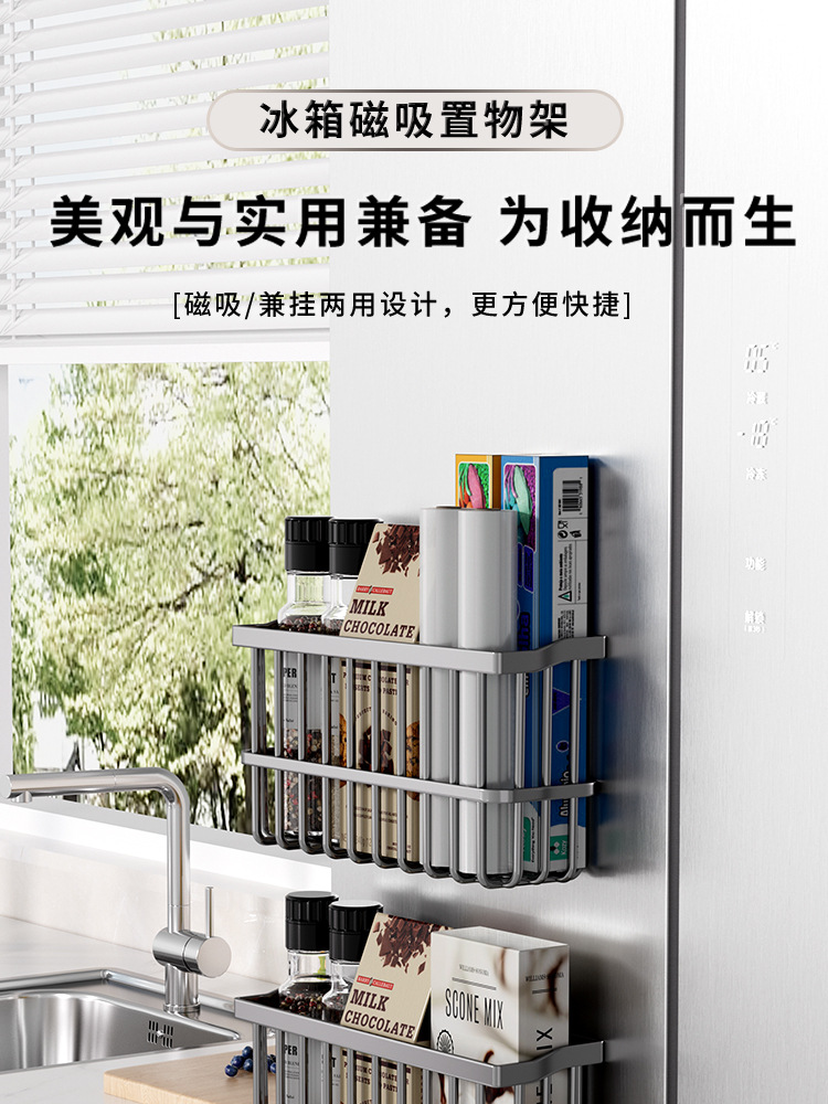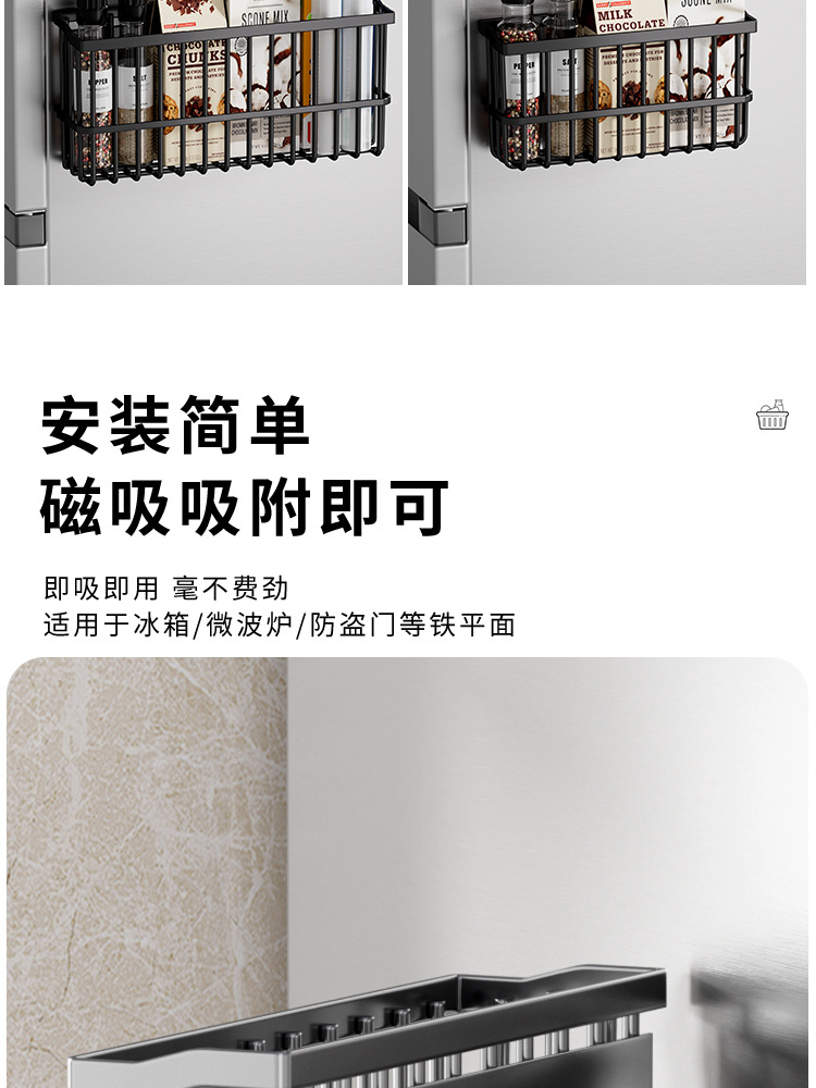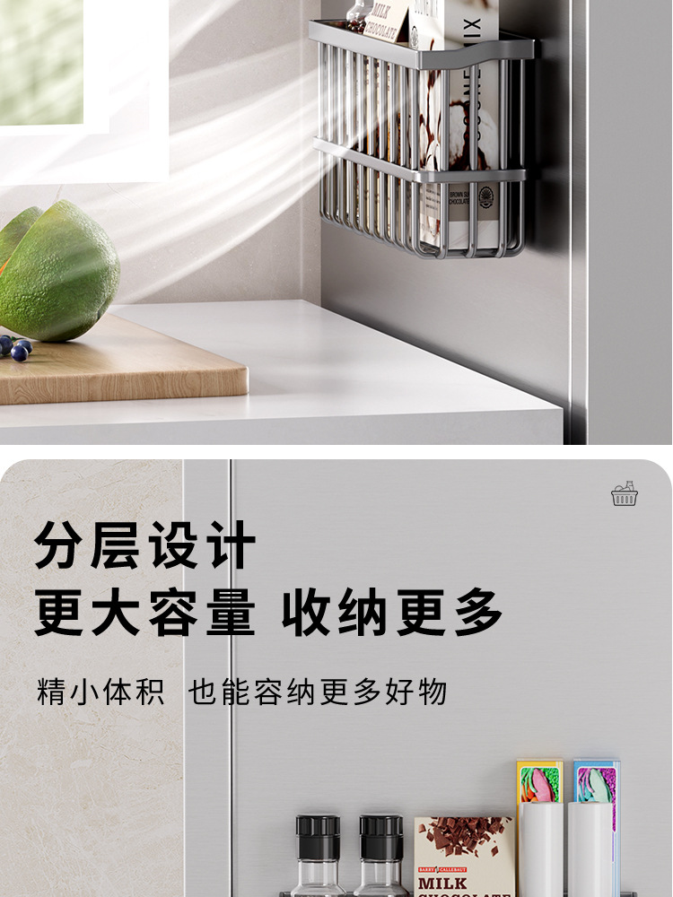 다기능 저장 바구니 비 천공 마킹 자기 흡수 냉장고 바구니 조미료 보존 백 저장 저장 선반 보관 바구니스토어 가기