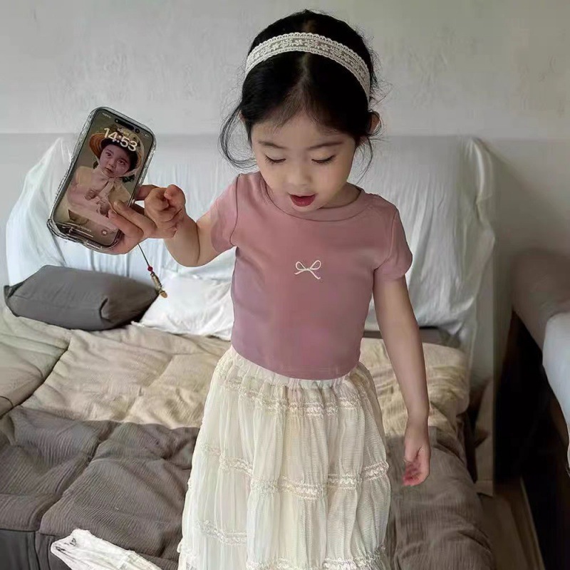 소녀 활 백리스 티셔츠 여름 새로운 어린이 활 반팔 아기 스타일 캐주얼 탑스토어 가기