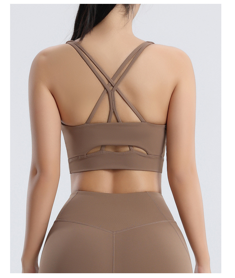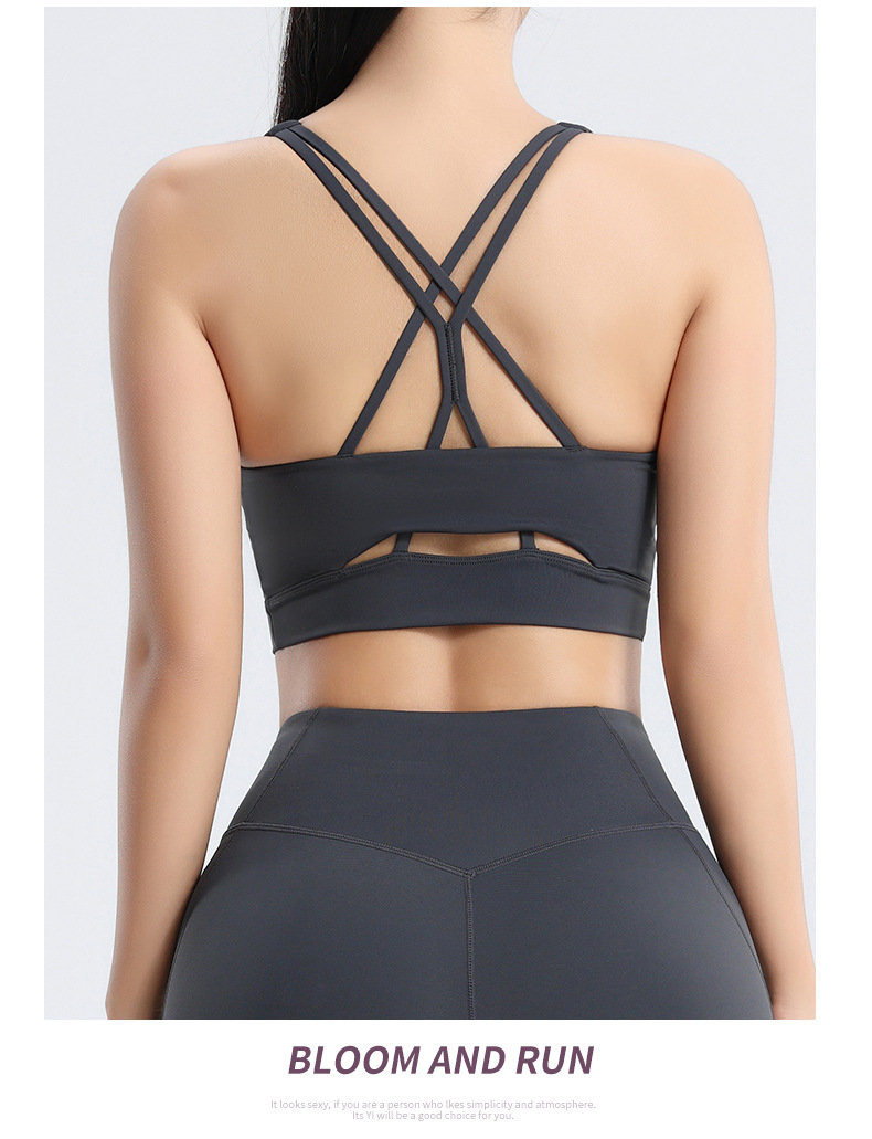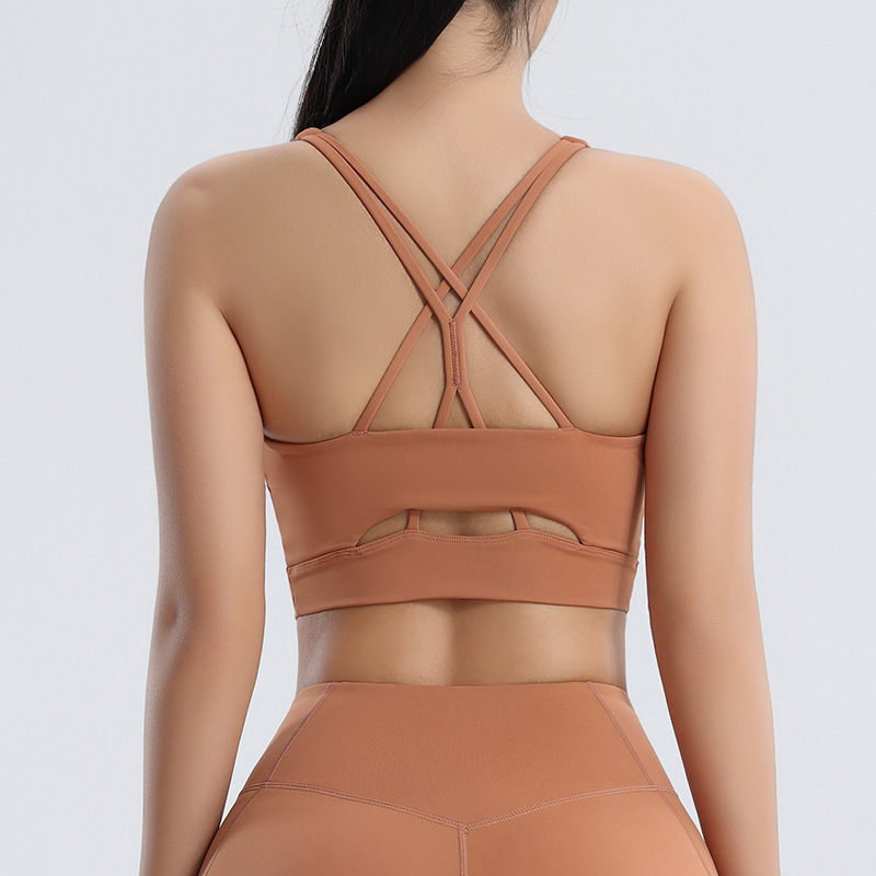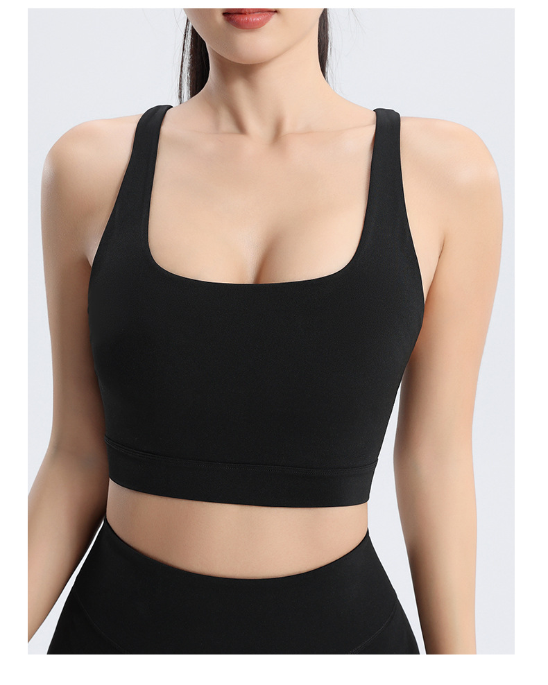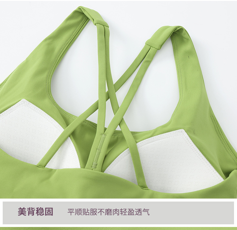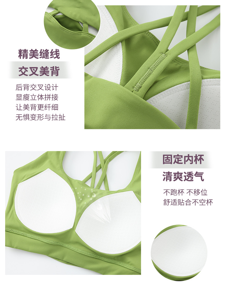 가슴 패드가 있는 여성용 스포츠 브라, 피트니스 런닝 충격방지 속옷 조끼, 무봉제 통기성 고탄력 지지 요가복