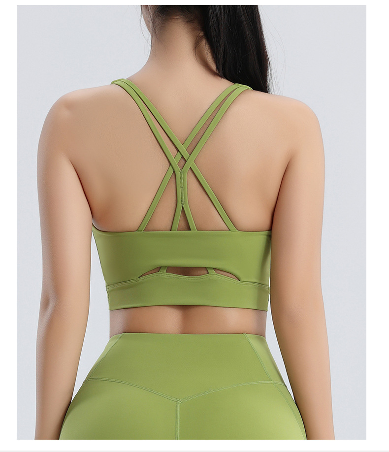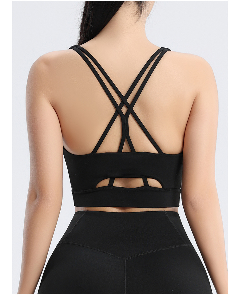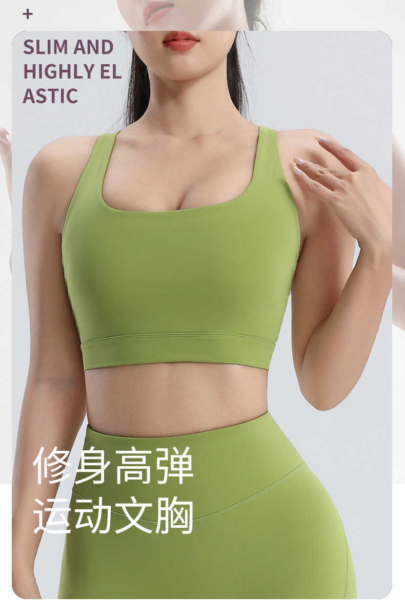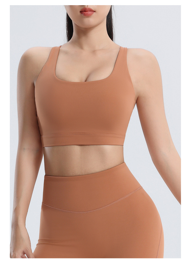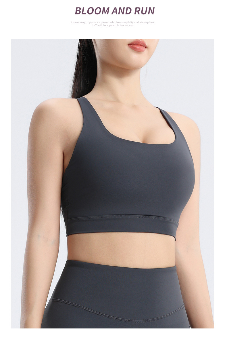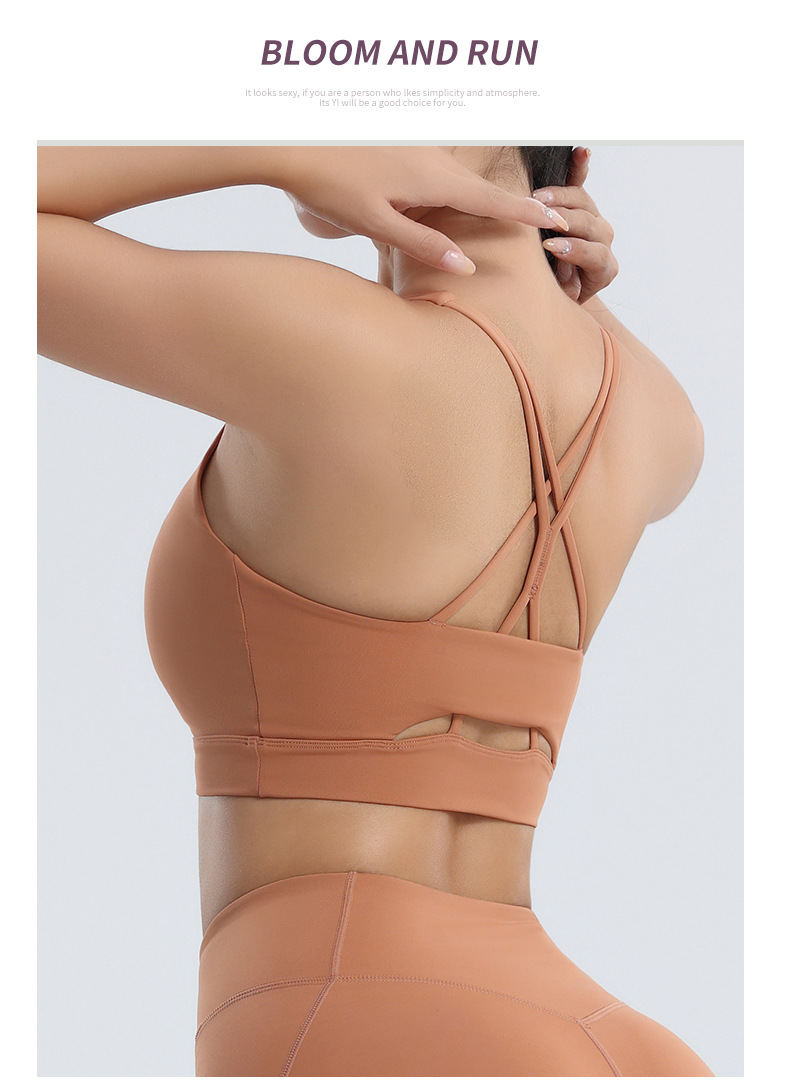가슴 패드가 있는 여성용 스포츠 브라, 피트니스 런닝 충격방지 속옷 조끼, 무봉제 통기성 고탄력 지지 요가복