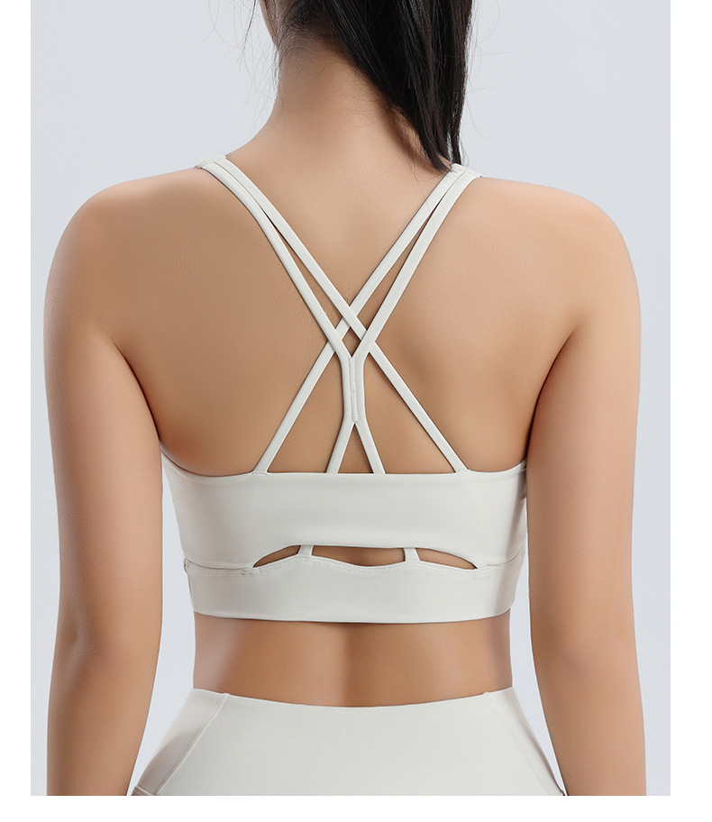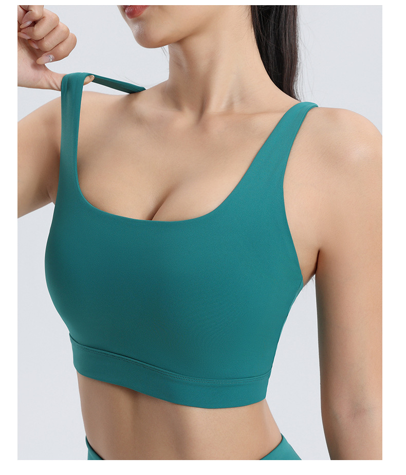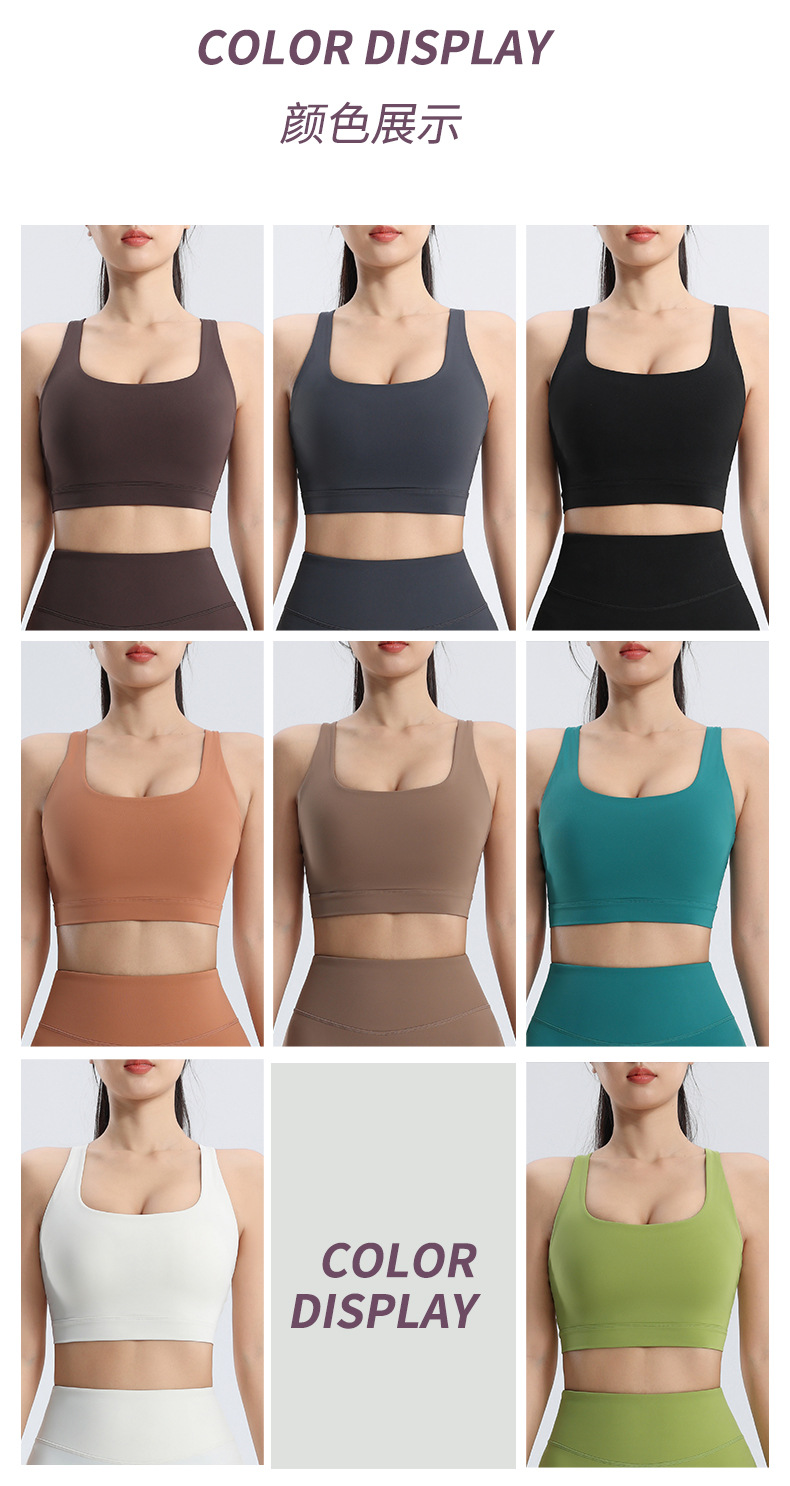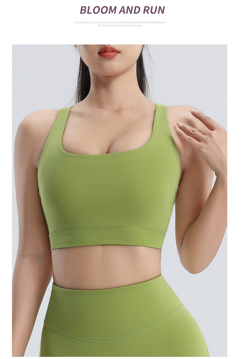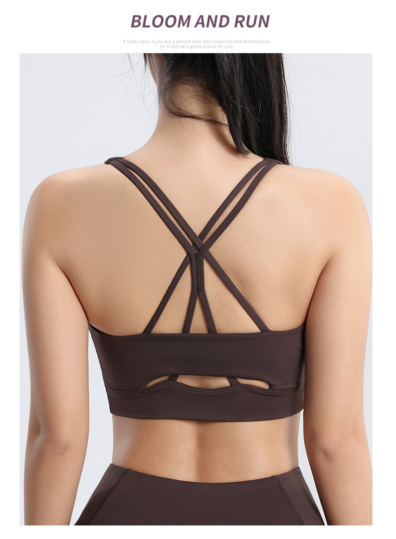 가슴 패드가 있는 여성용 스포츠 브라, 피트니스 런닝 충격방지 속옷 조끼, 무봉제 통기성 고탄력 지지 요가복