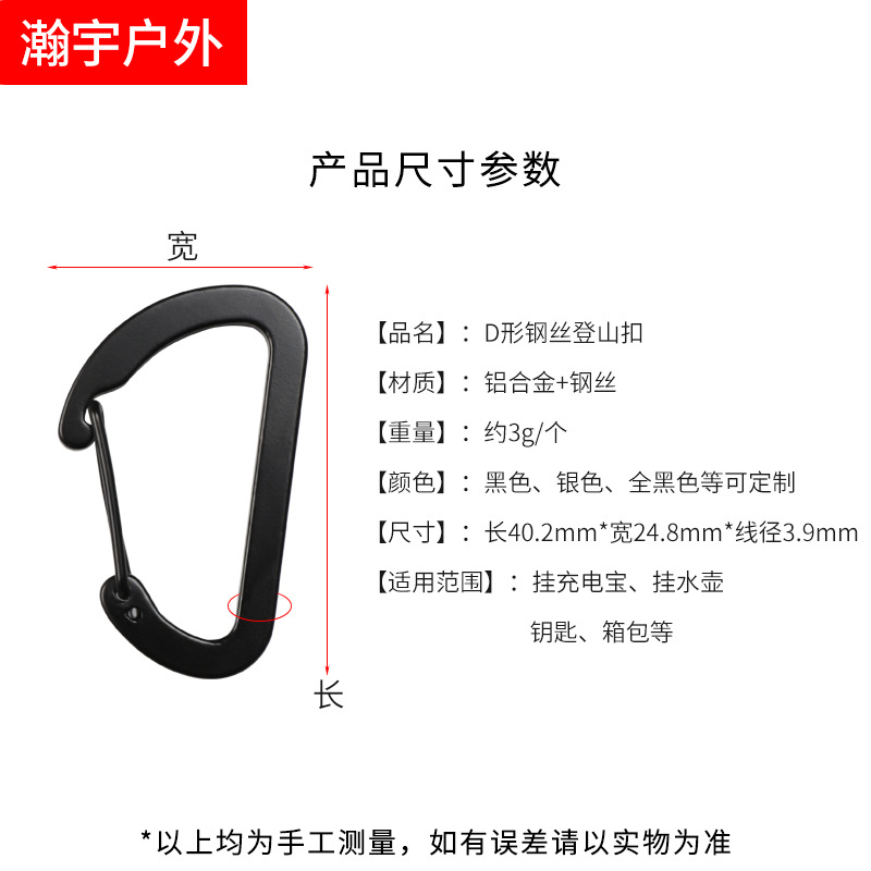 재고 도매 4호 D형 압축 스틸 와이어 클립 알루미늄 합금 등산용 버클 아웃도어 백팩 등산용 버클 키 퀵 행커