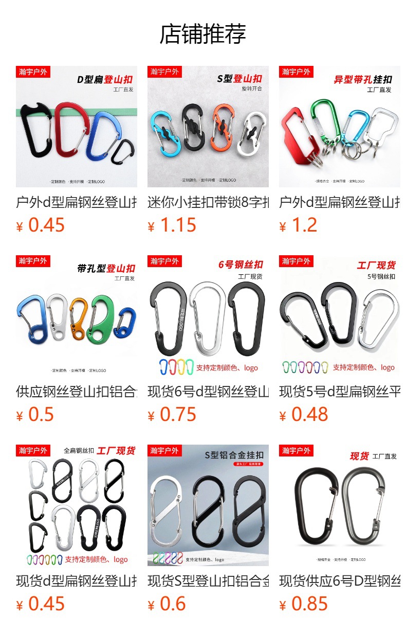 재고 도매 4호 D형 압축 스틸 와이어 클립 알루미늄 합금 등산용 버클 아웃도어 백팩 등산용 버클 키 퀵 행커스토어 가기