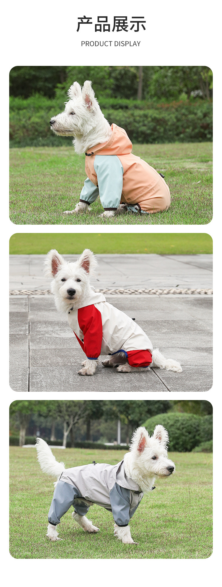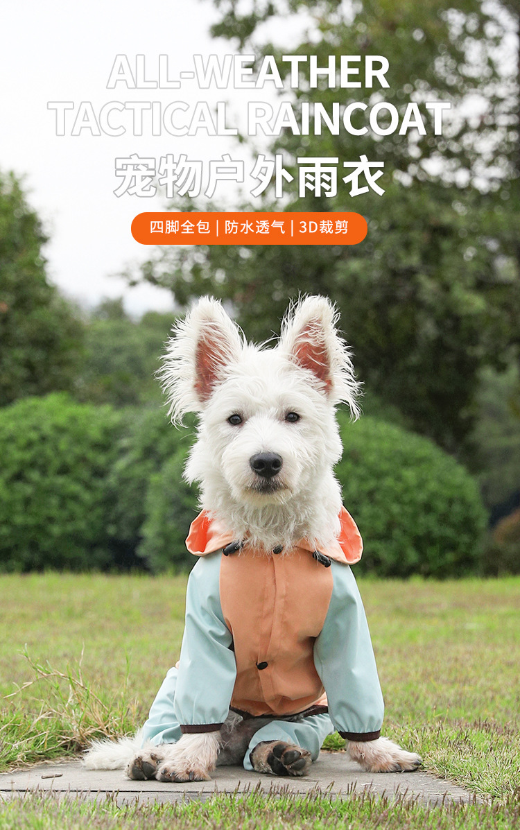 비극적 인 개 네 다리 비옷 방수 모든 것을 포함하는 작은 개 Bichon Teddy 애완 동물 비오는 날 옷스토어 가기