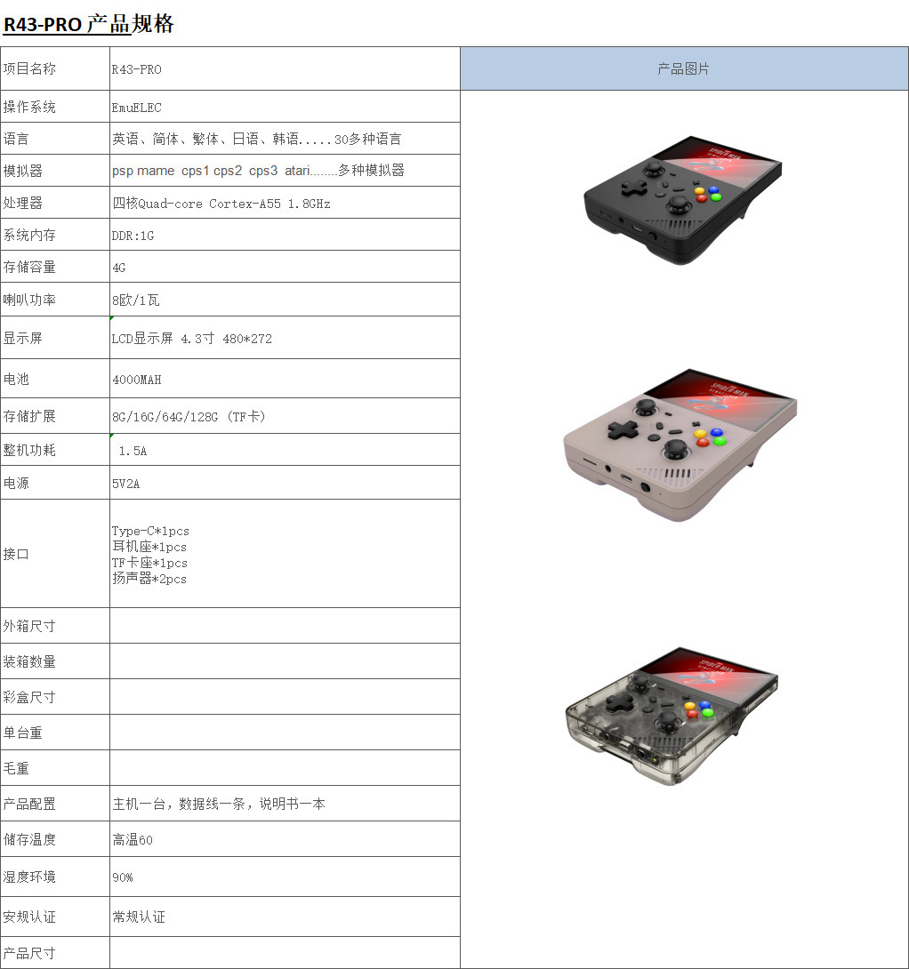 M18 안드로이드 휴대용 게임기 R43PRO 휴대용 레트로 4K 고화질 대형 PS 해외 무역스토어 가기